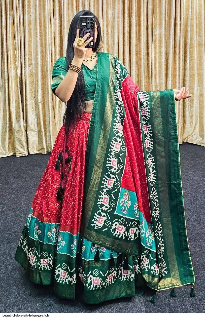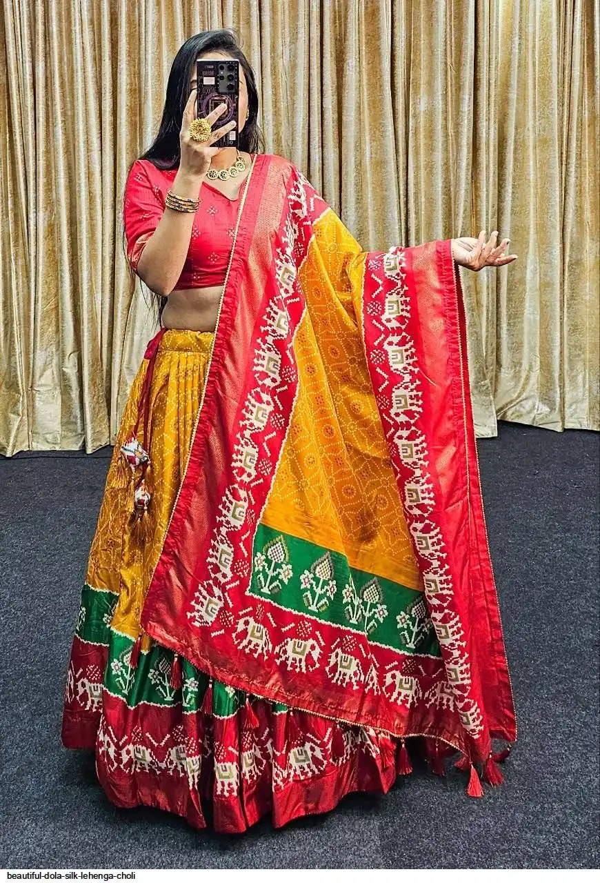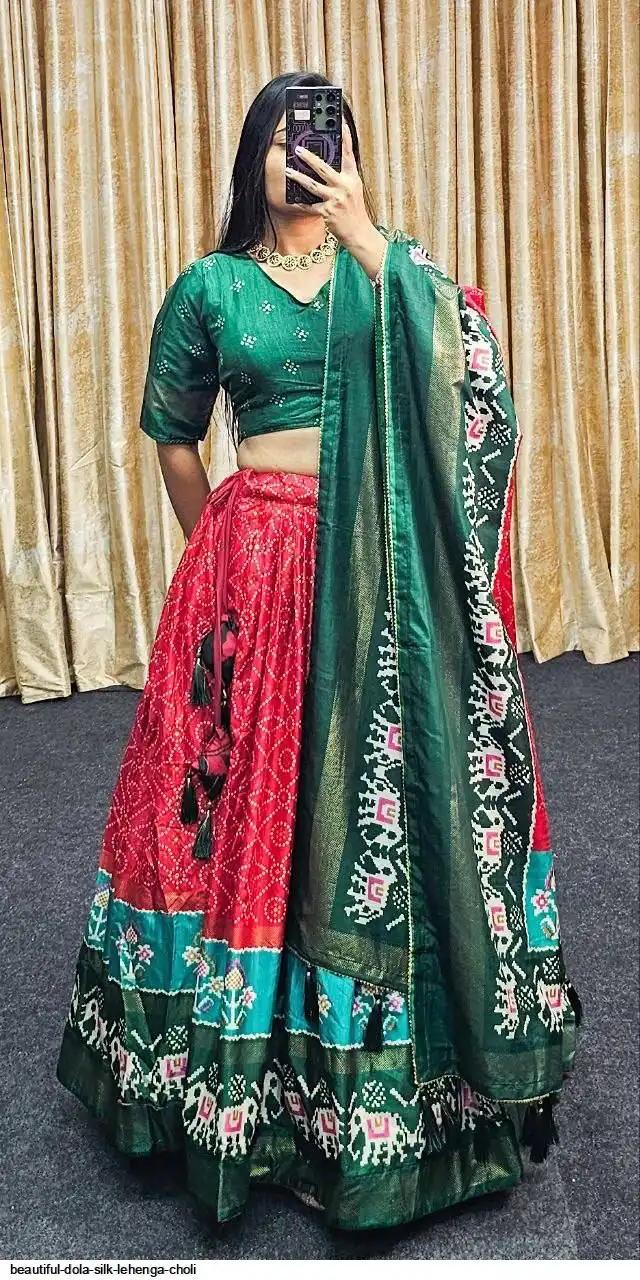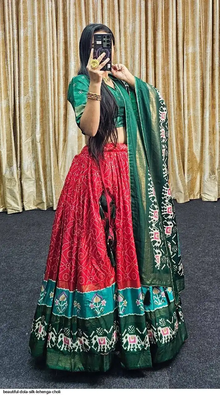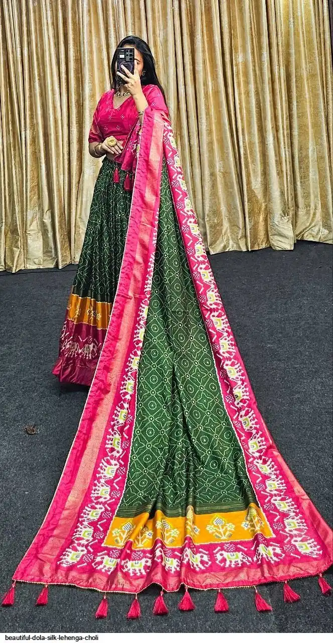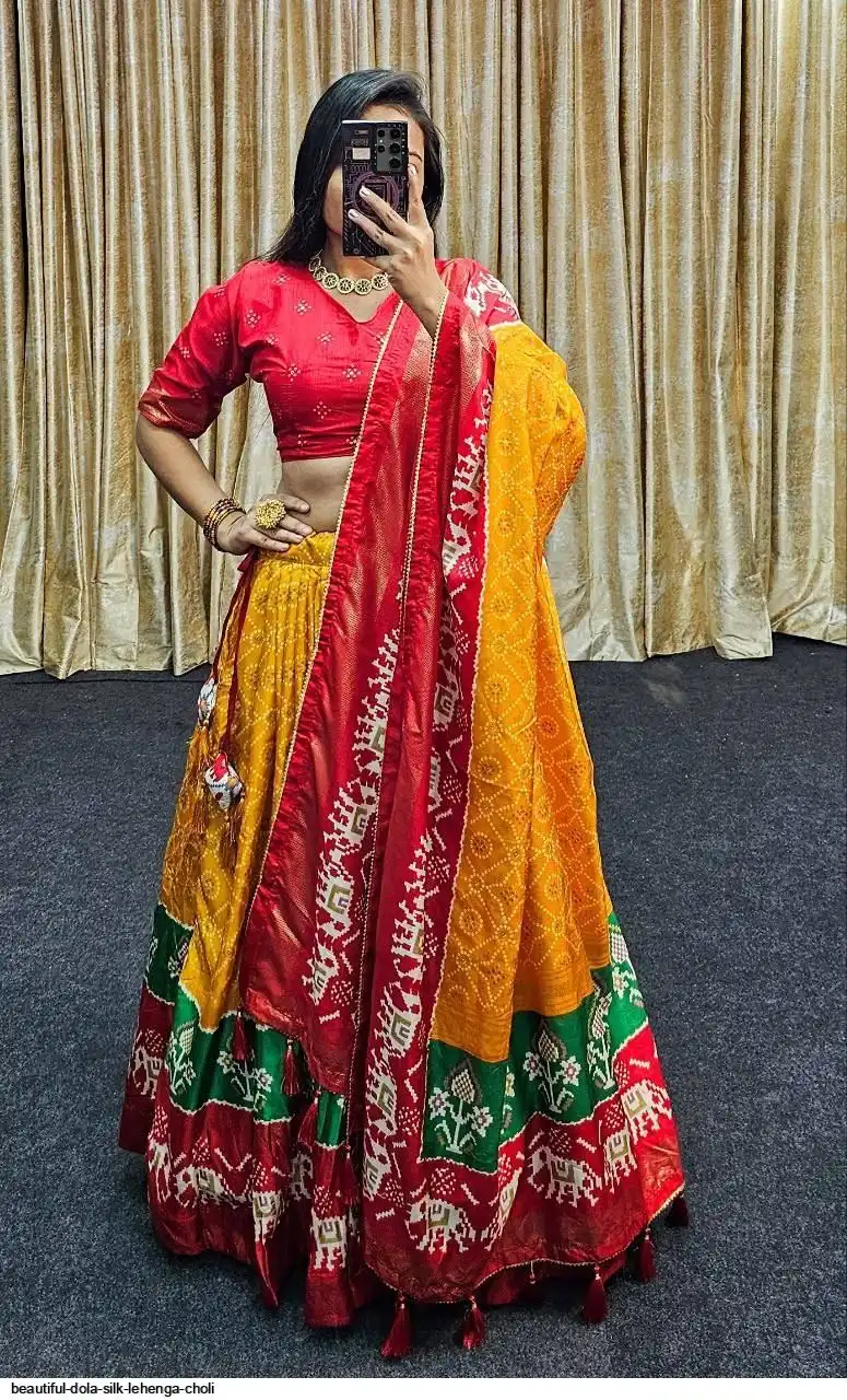 Embrace the elegance of Dola Silk, where tradition meets contemporary style in every printed lehenga choli