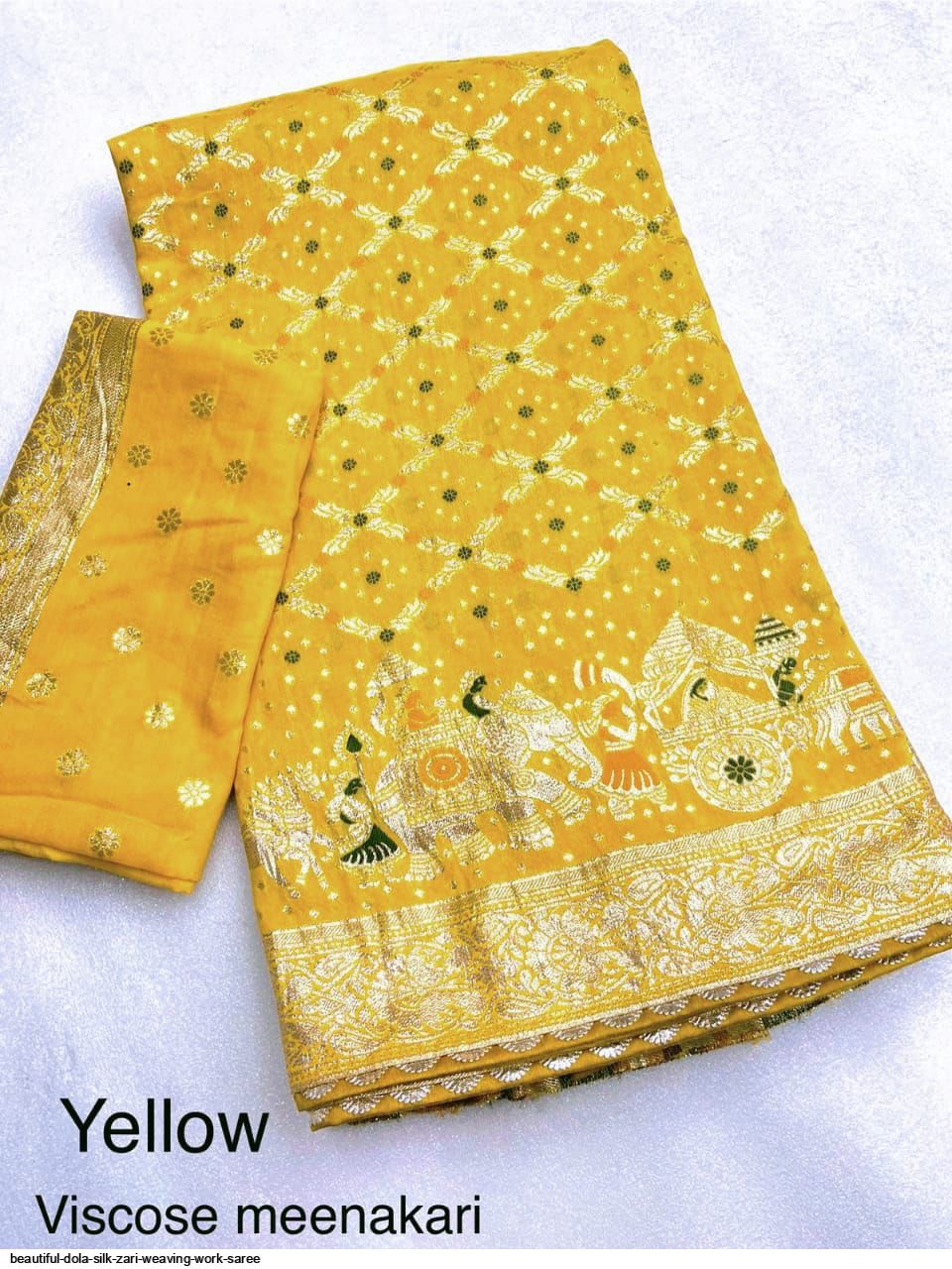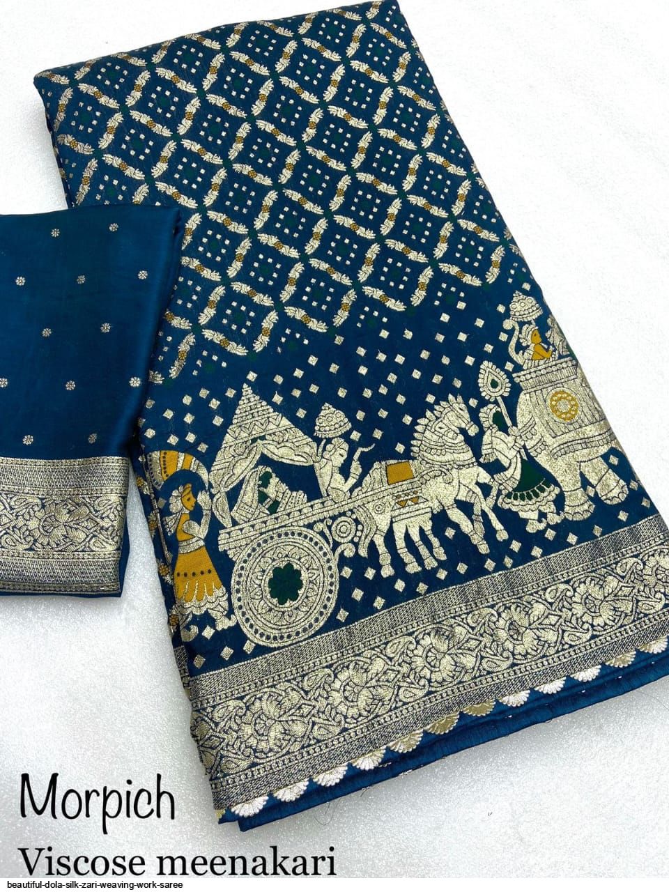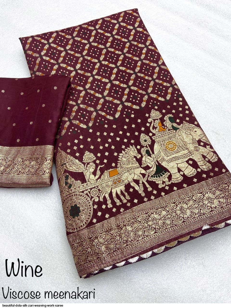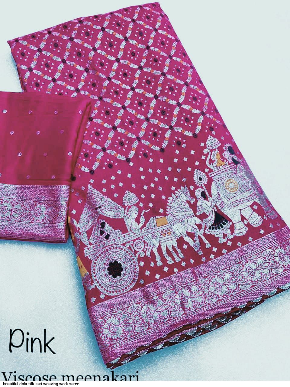 Fabric : Soft Dolla Silk Fabric With Beautiful Zari Weaving on Whole Saree Best Fabric Guarantee With Simple Sober Mina JACQUARD Colour Looking with latkan Best Fabric With Zari weaving work Blouse