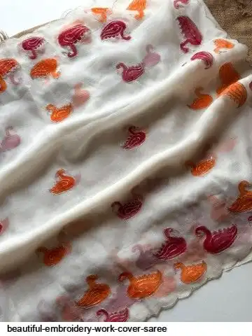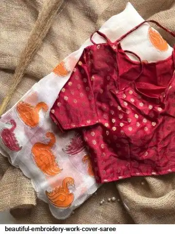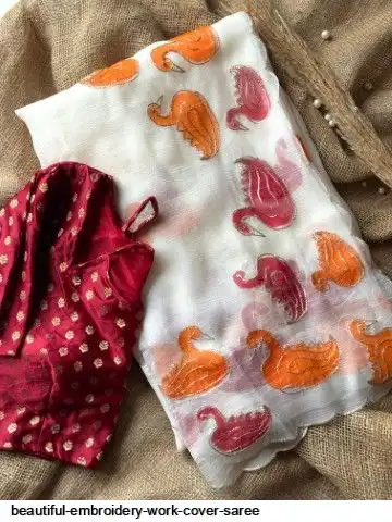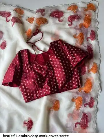 Beautiful embroidery work cover with handpainted in georgete crush soft saree and unstitch handloom weaving silk blouse