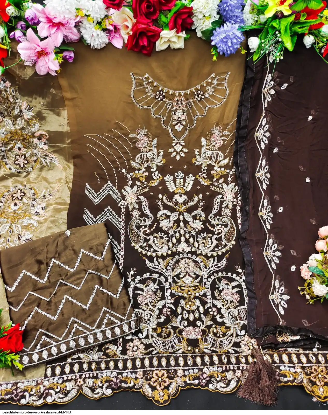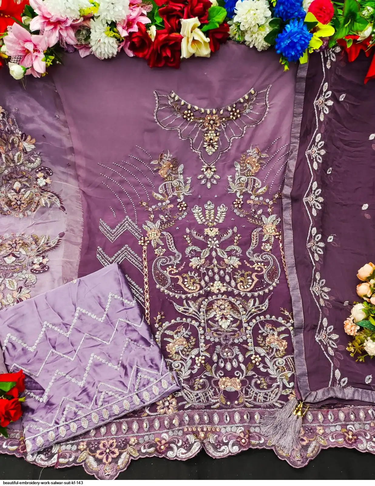 Nazneen With Embroidery Work And Four Side Lace With Latakan