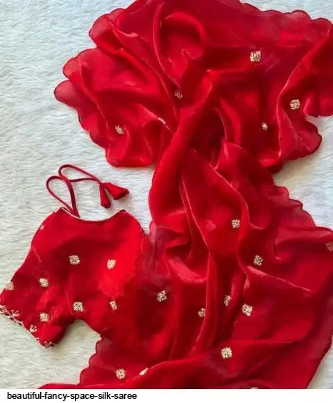 Fancy Space Silk Saree With Fancy Bid’s (Cutdana) & Sequins Butta Work All Over Saree (Handwork)