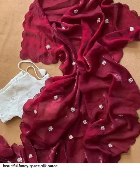 Fancy Space Silk Saree With Fancy Bid’s (Cutdana) & Sequins Butta Work All Over Saree (Handwork)