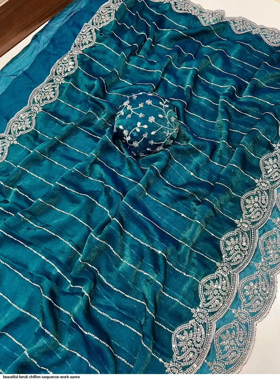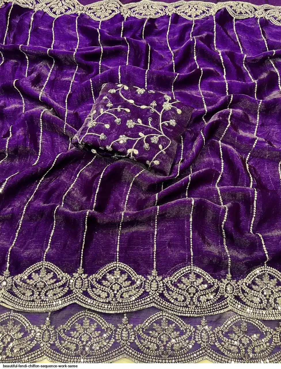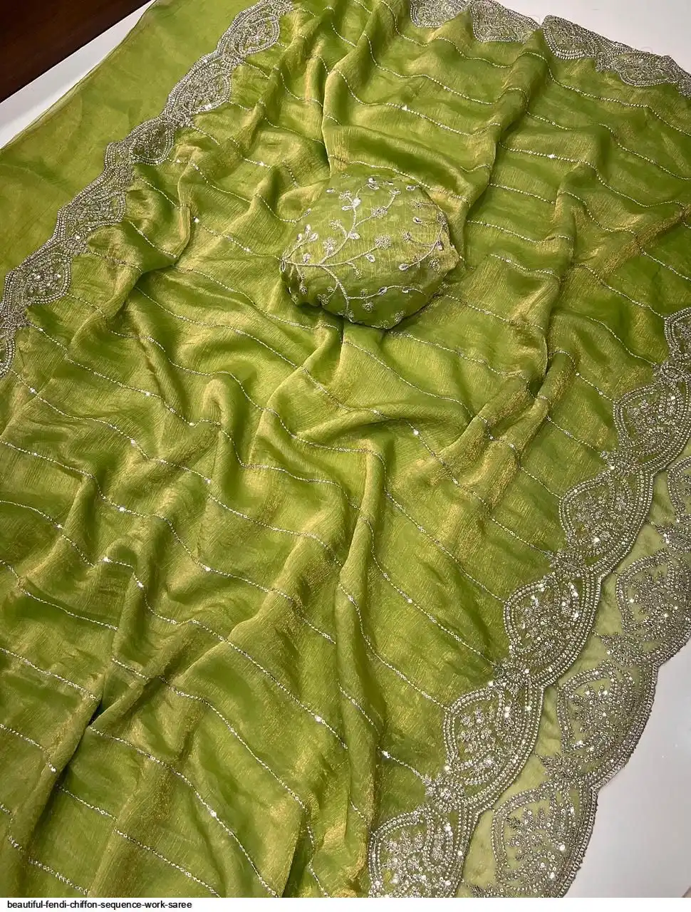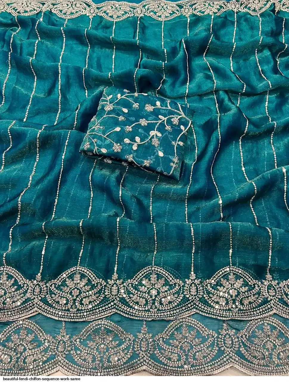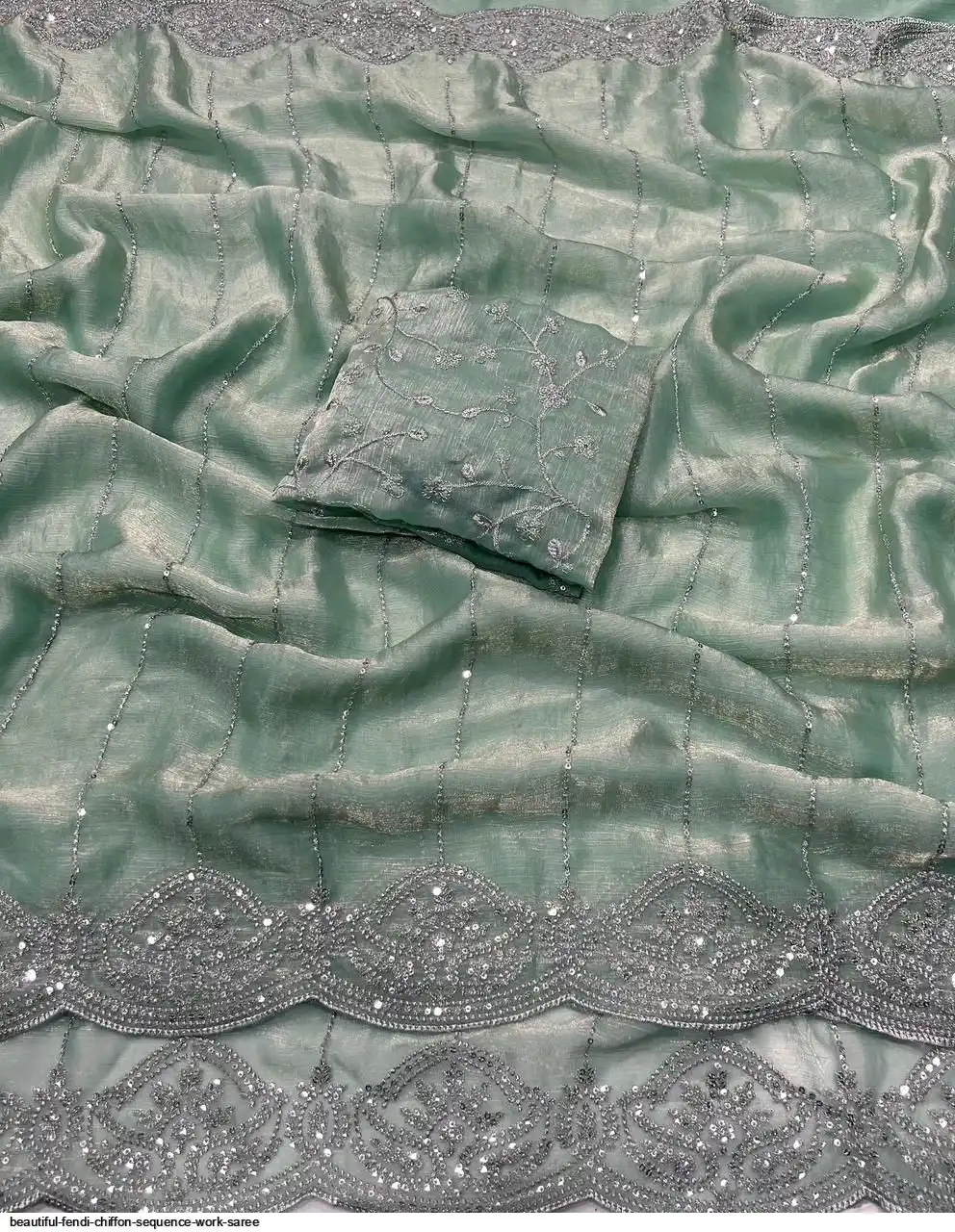Fendy Chiffon Multi Sequence Emrodairy Work With Running Work Blouse