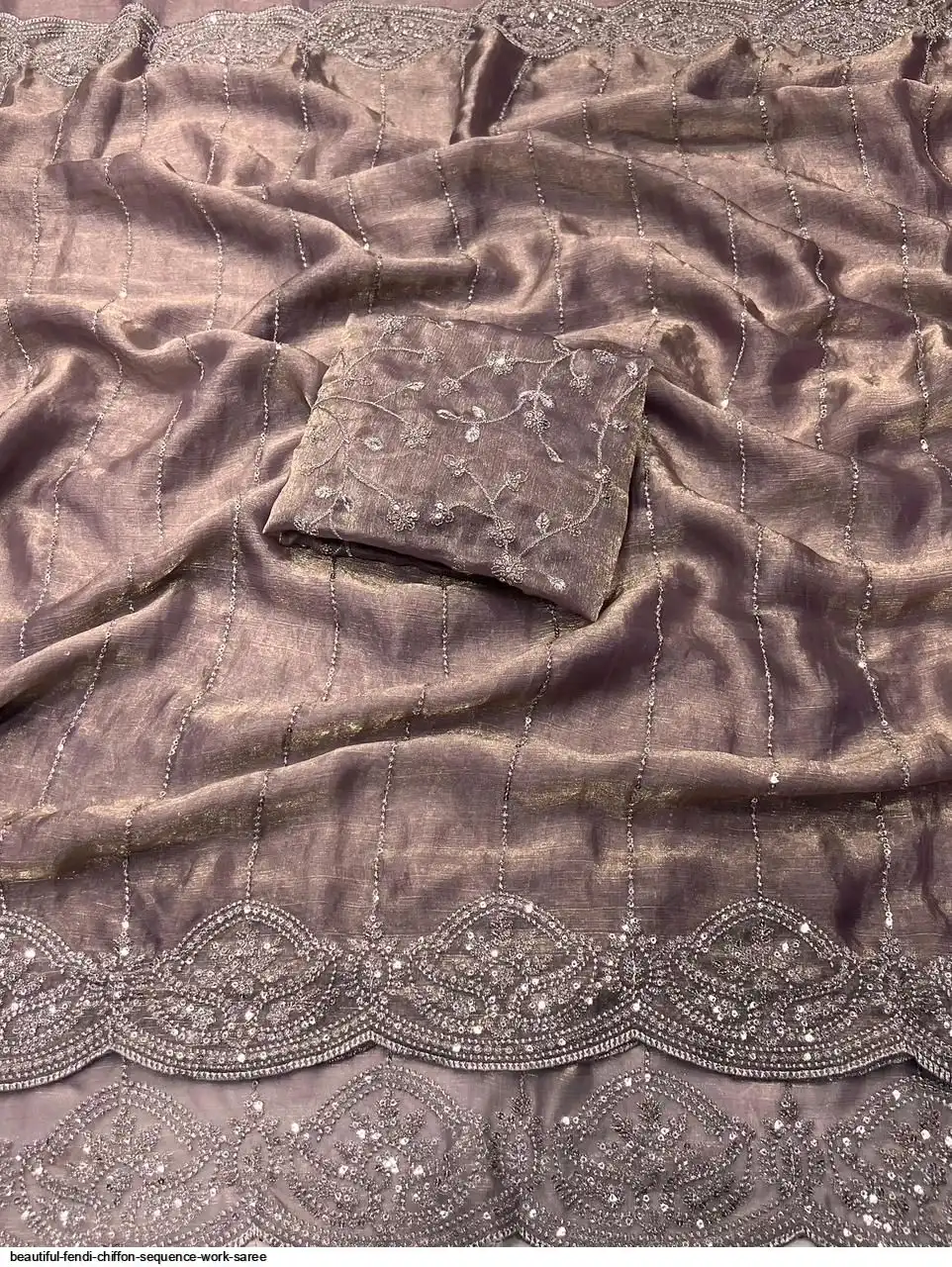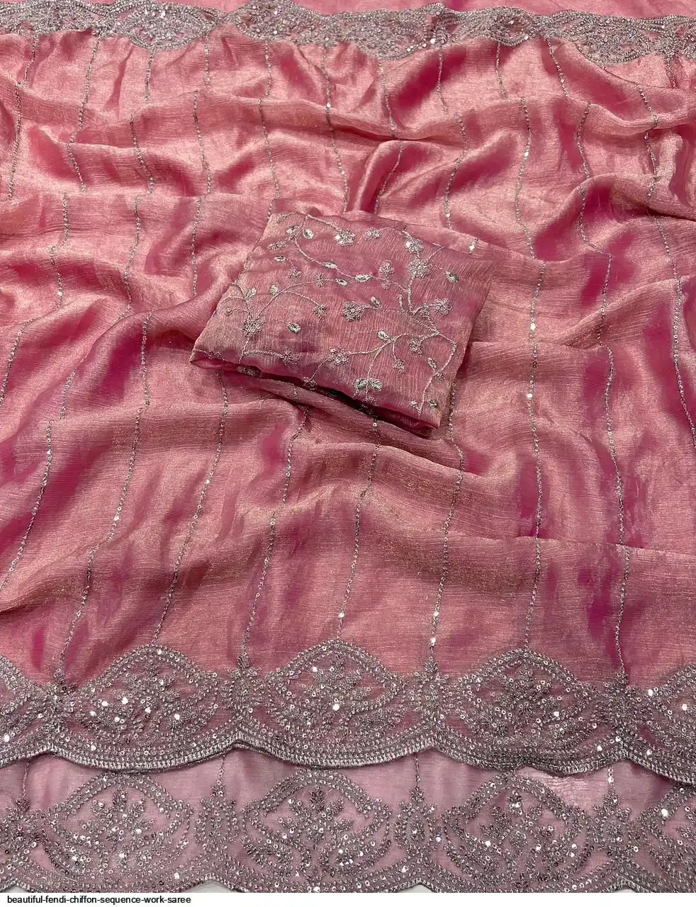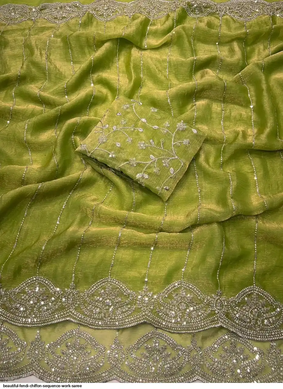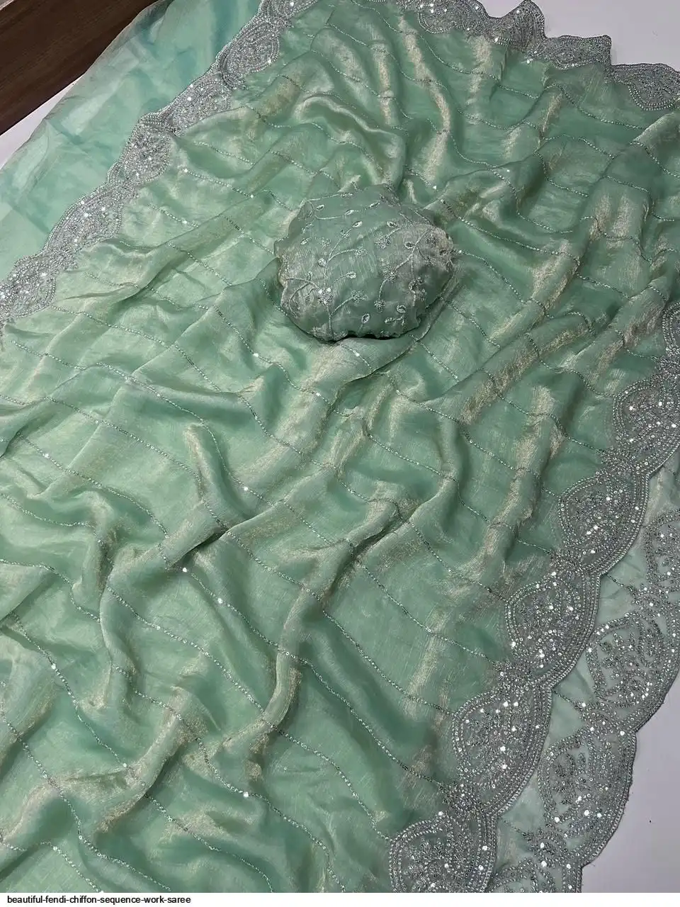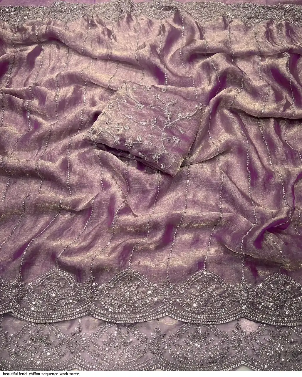 Fendy Chiffon Multi Sequence Emrodairy Work With Running Work Blouse