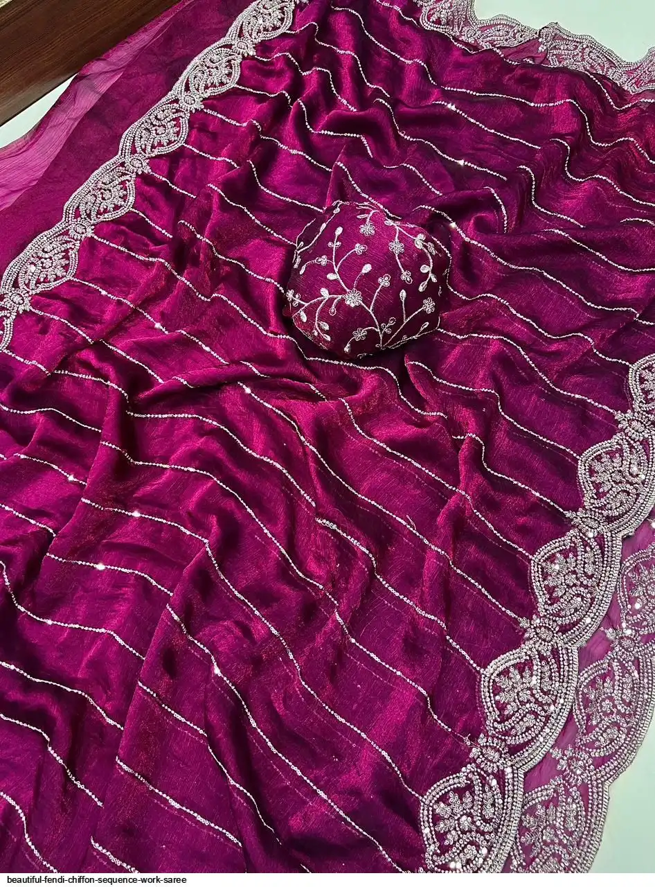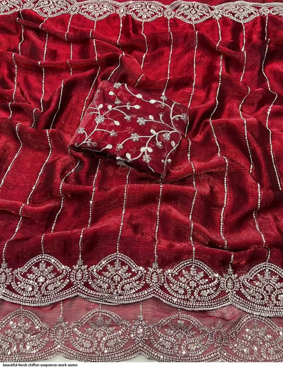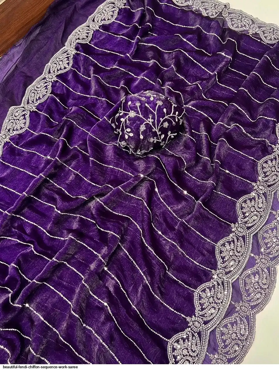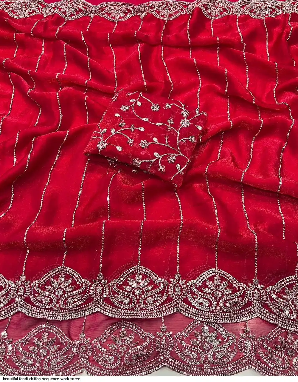 Fendy Chiffon Multi Sequence Emrodairy Work With Running Work Blouse
