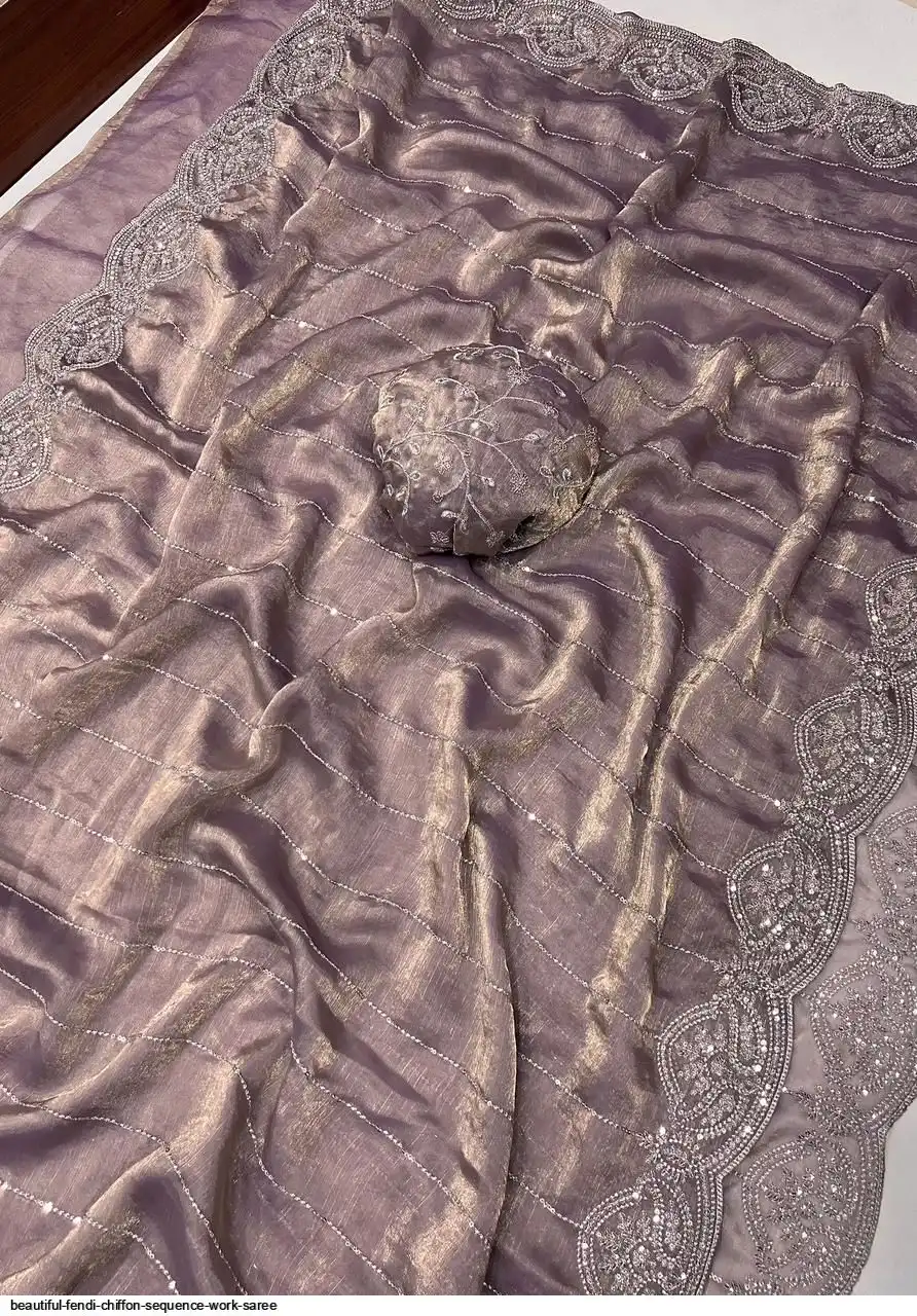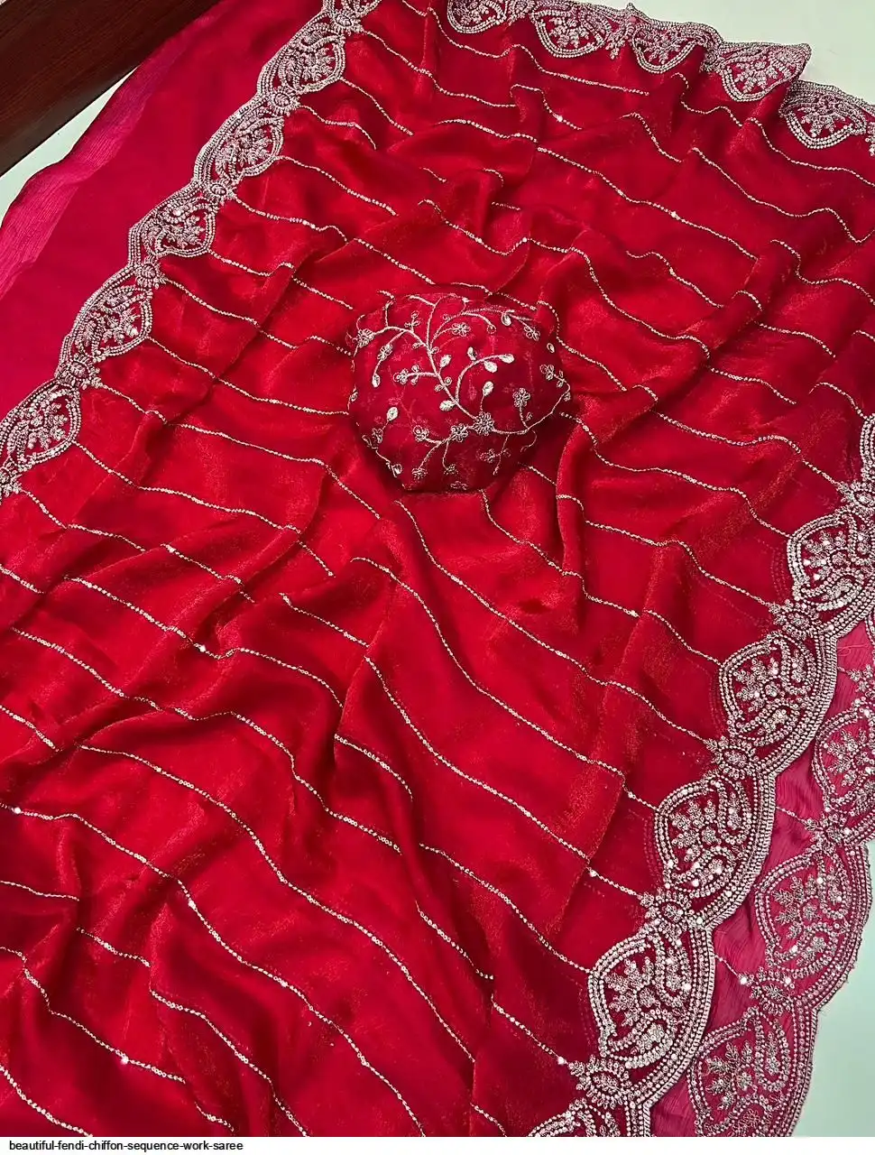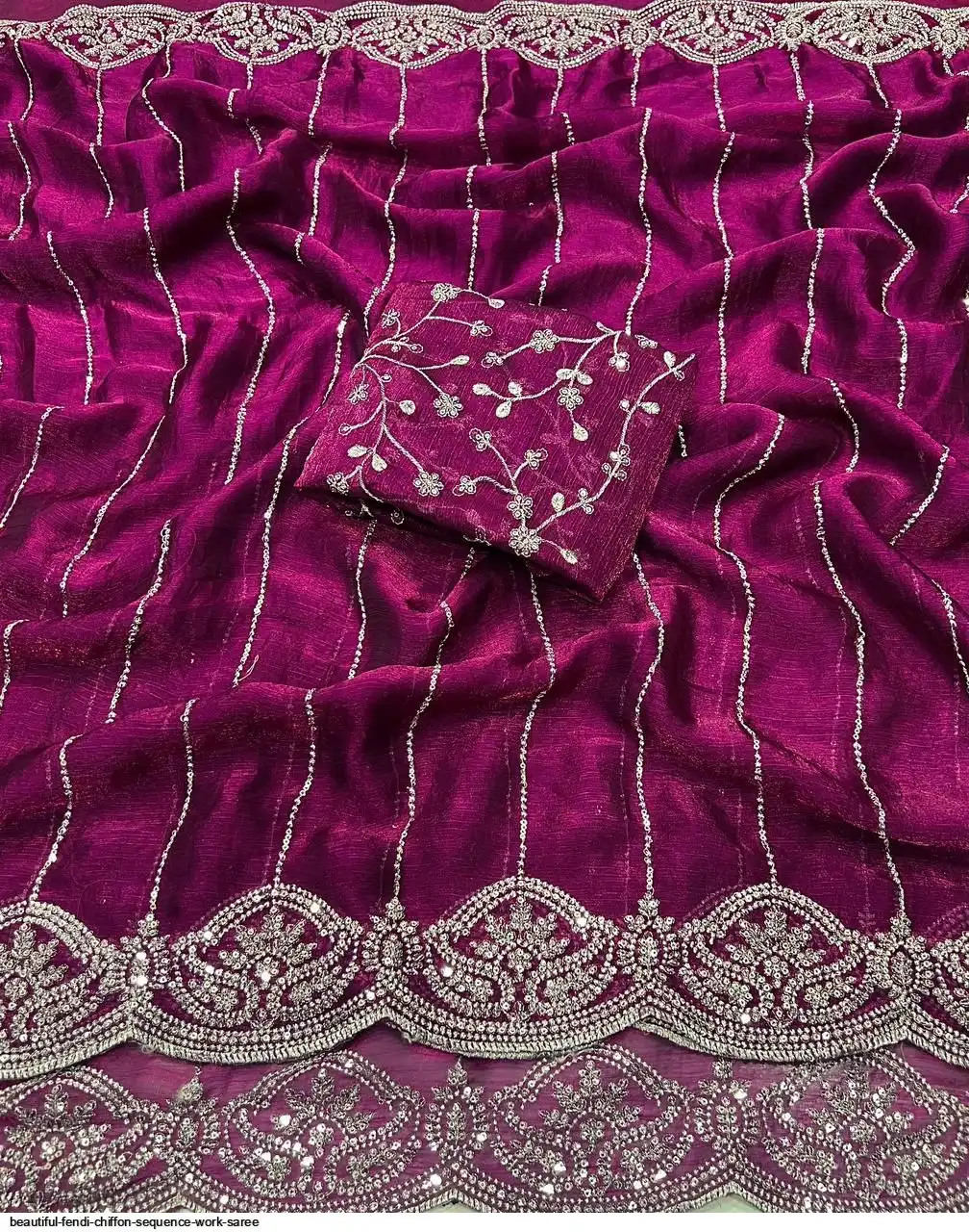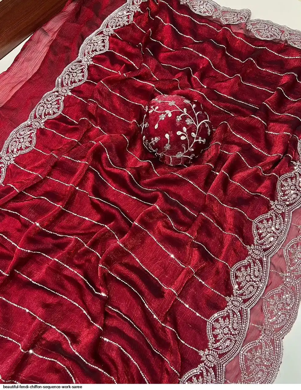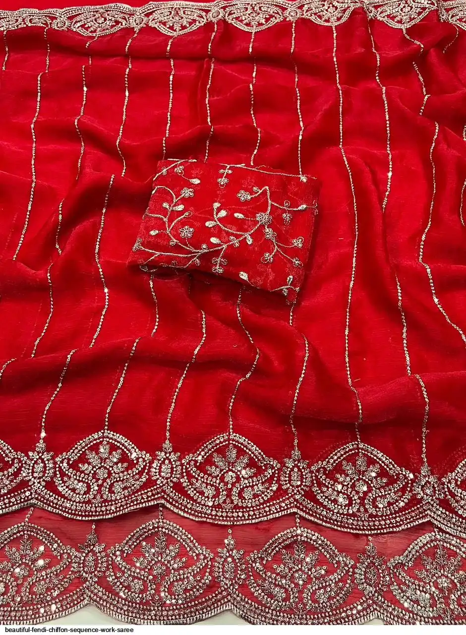 Fendy Chiffon Multi Sequence Emrodairy Work With Running Work Blouse