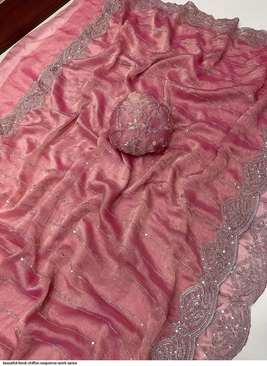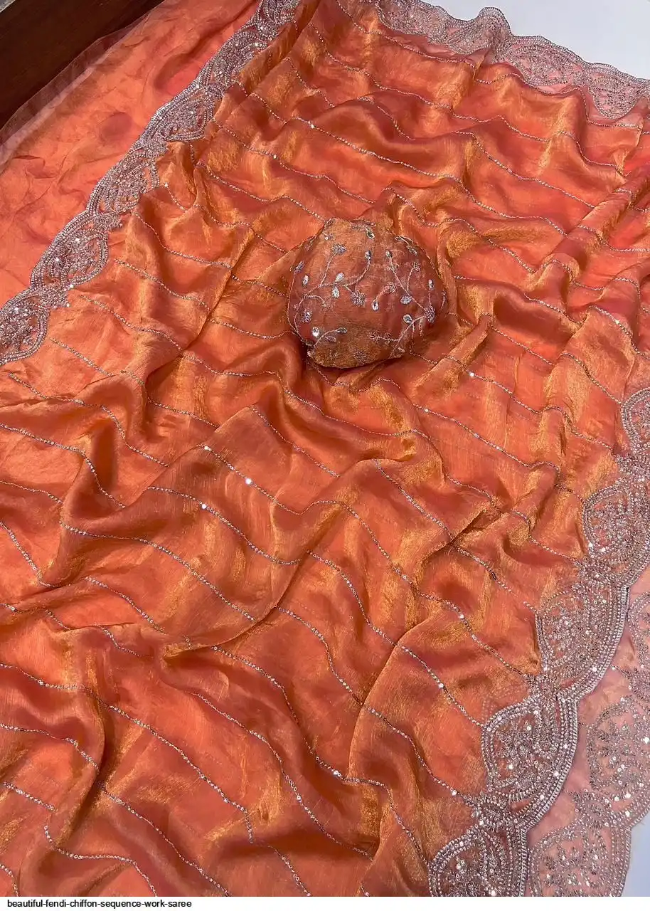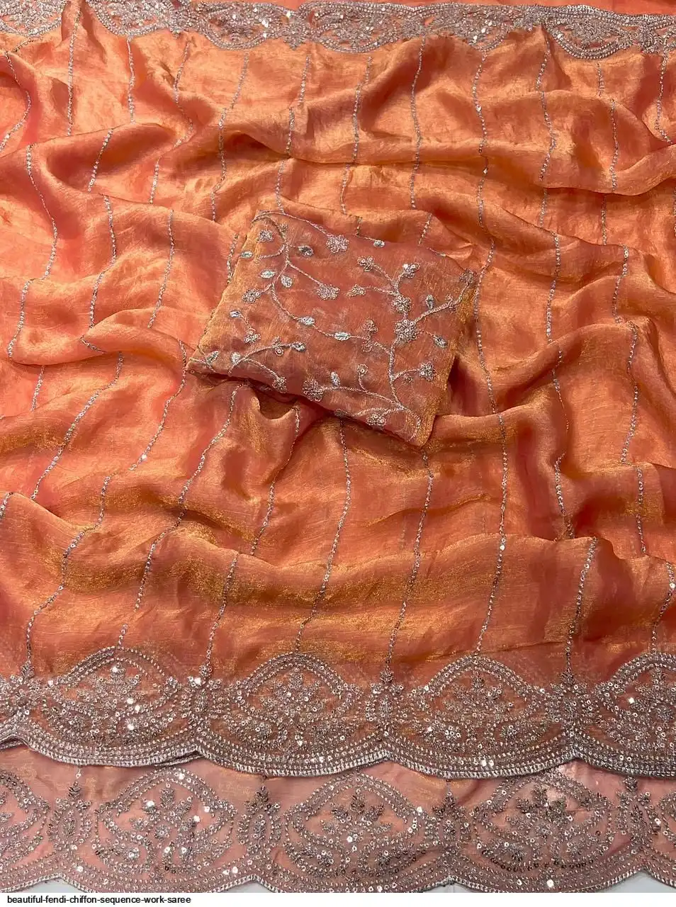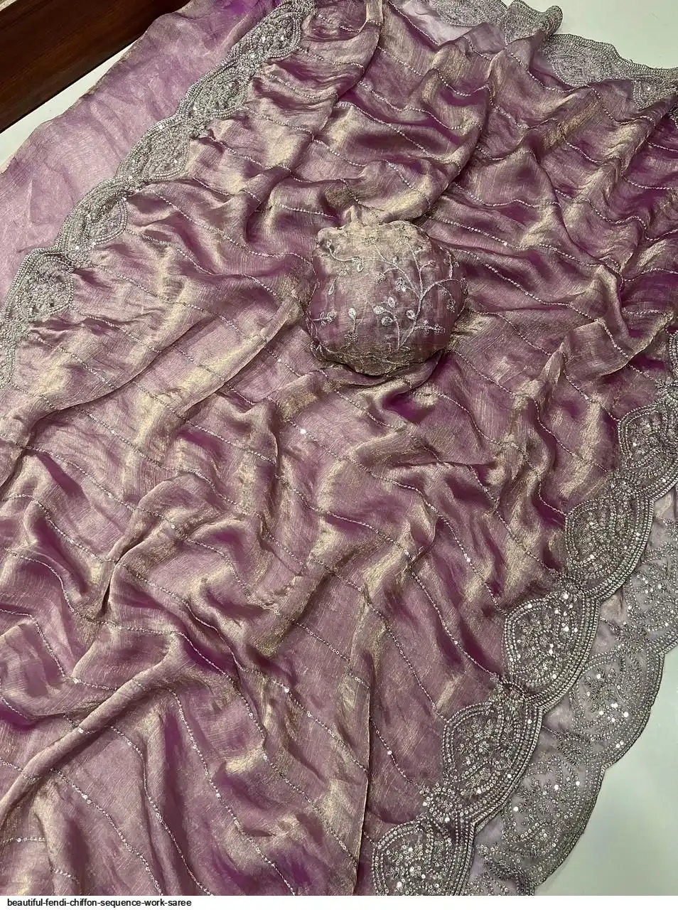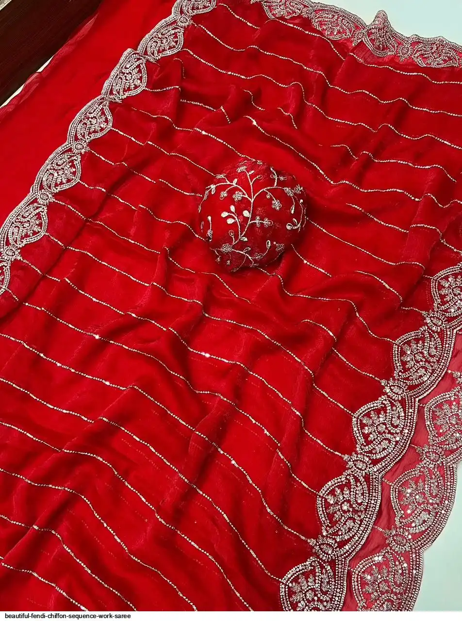 Fendy Chiffon Multi Sequence Emrodairy Work With Running Work Blouse