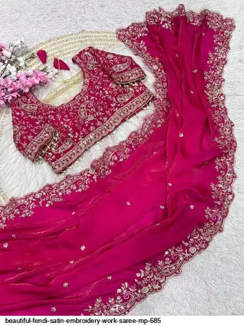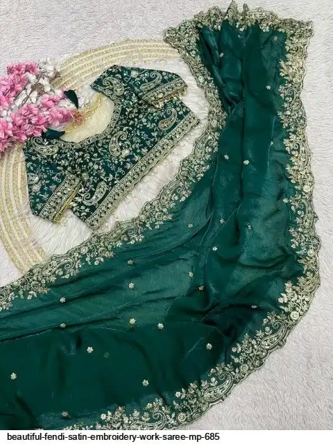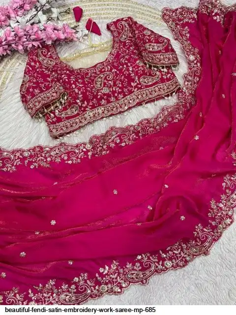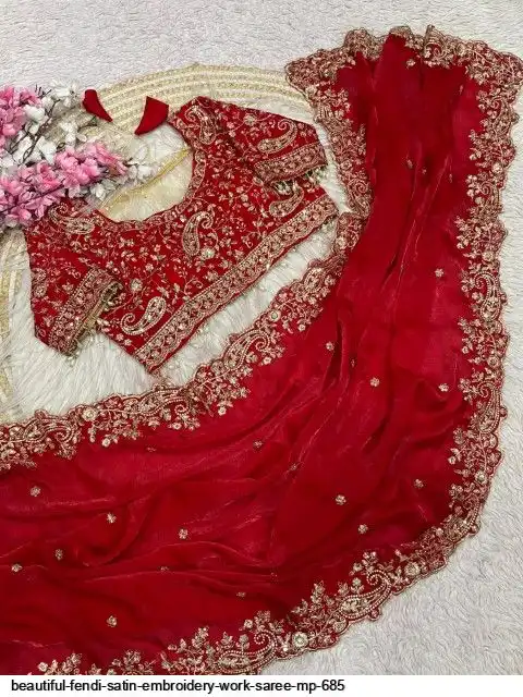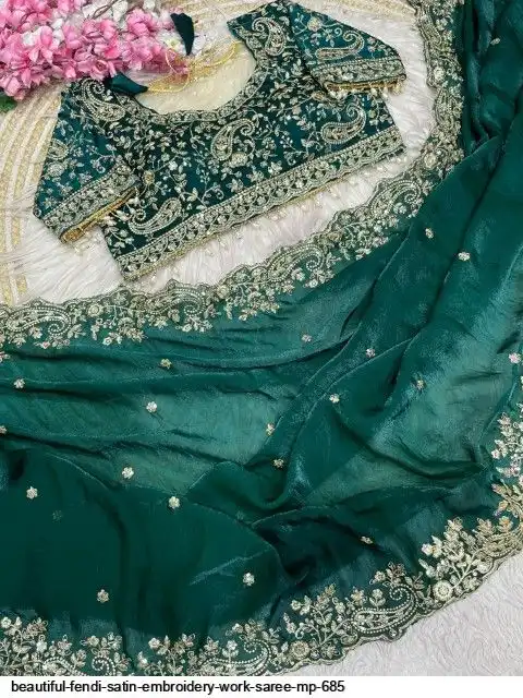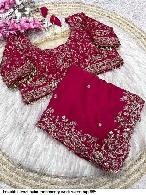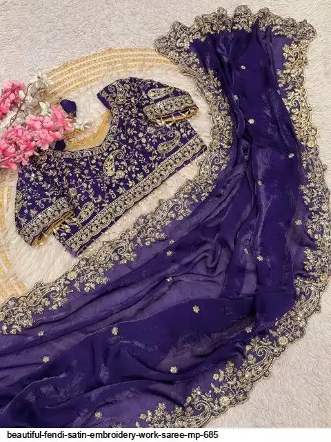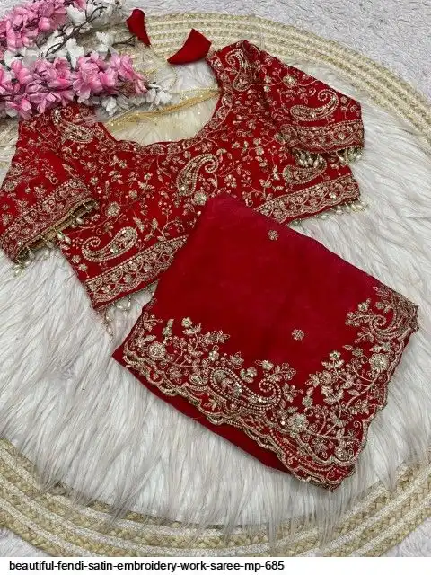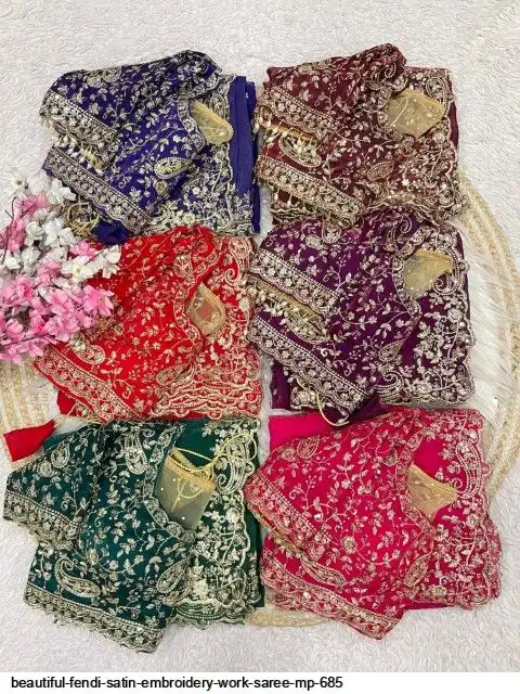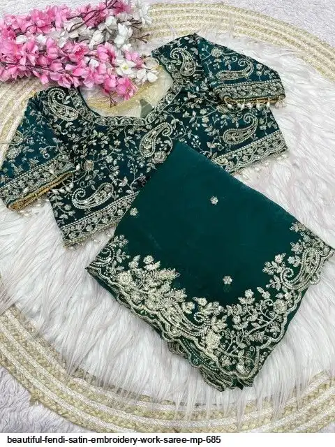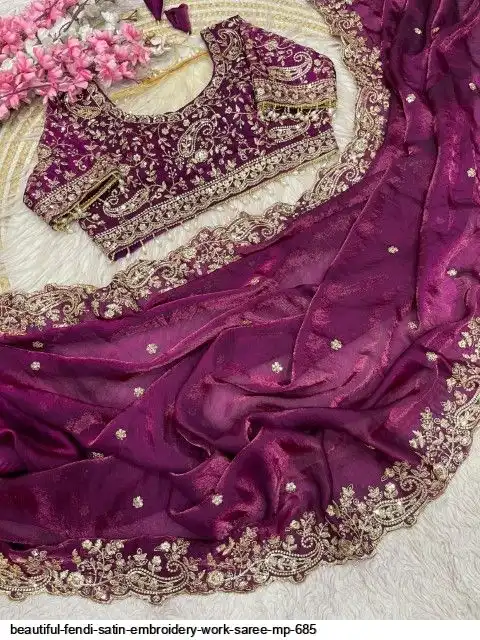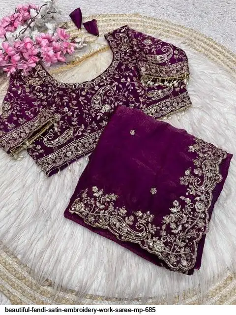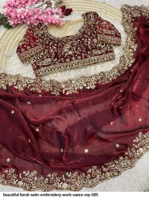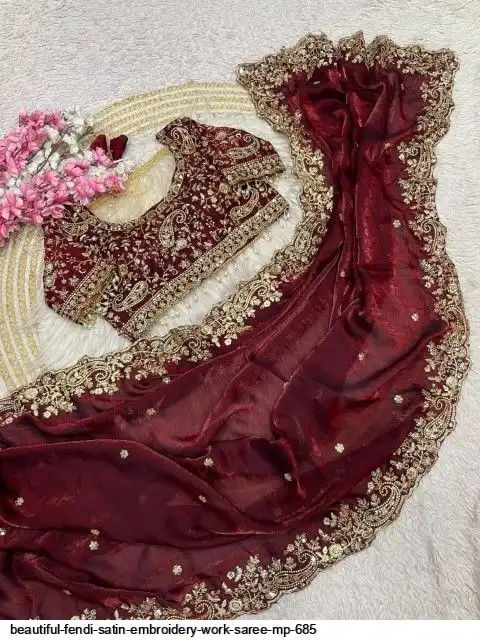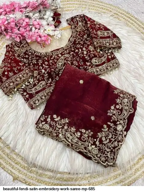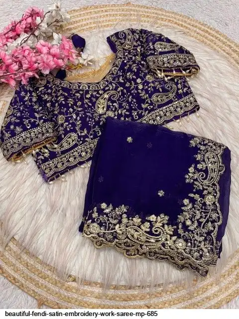 Fabric : Fendy Sattin fully stitched Multi sequence embroidery work blouse with beautiful moit lace touch up (38upto42)