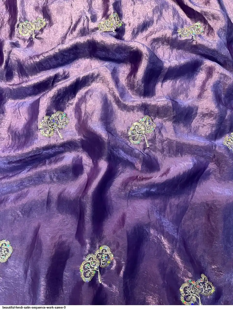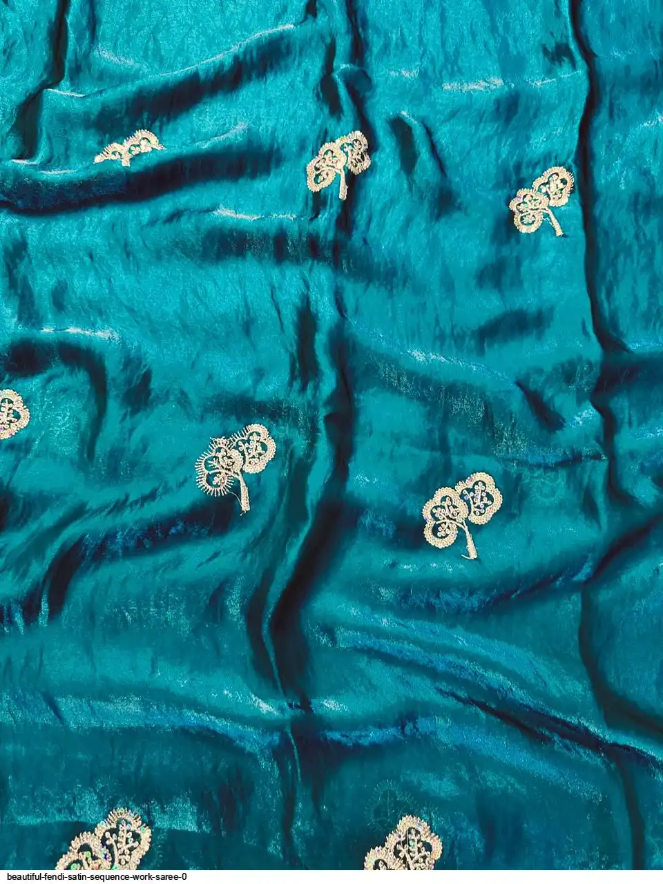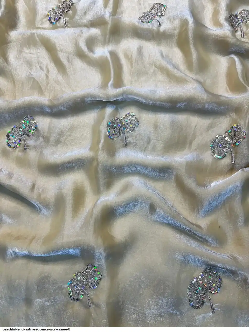 Fendy Sattin Dual Shaded With Beautiful Zari With Sequence Work Flower Butti All In Saree & running Blouse Work !!