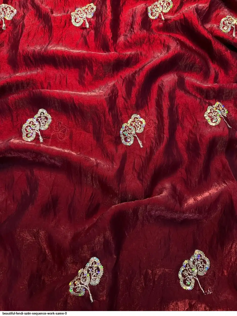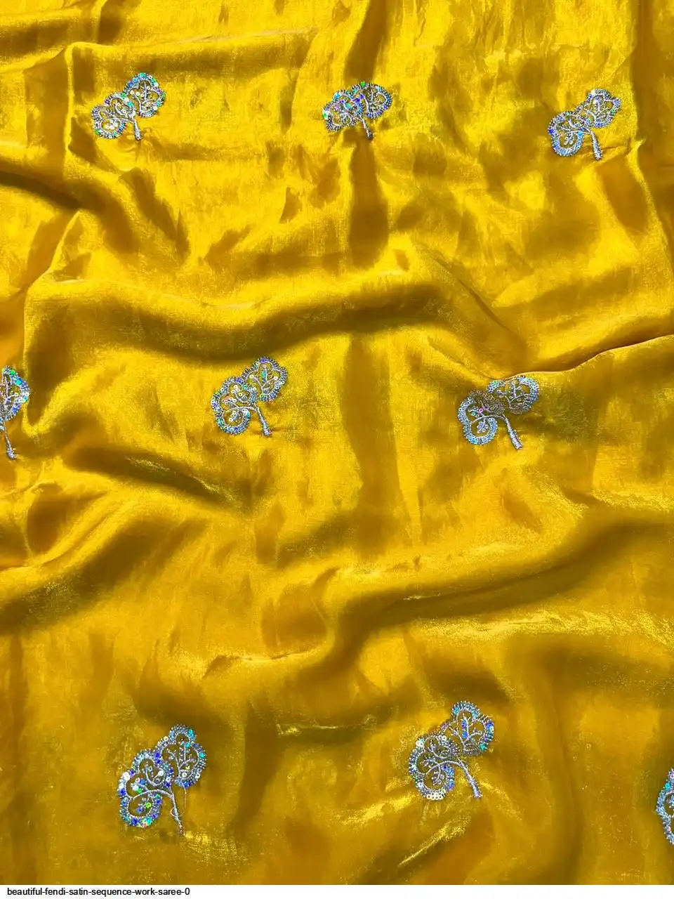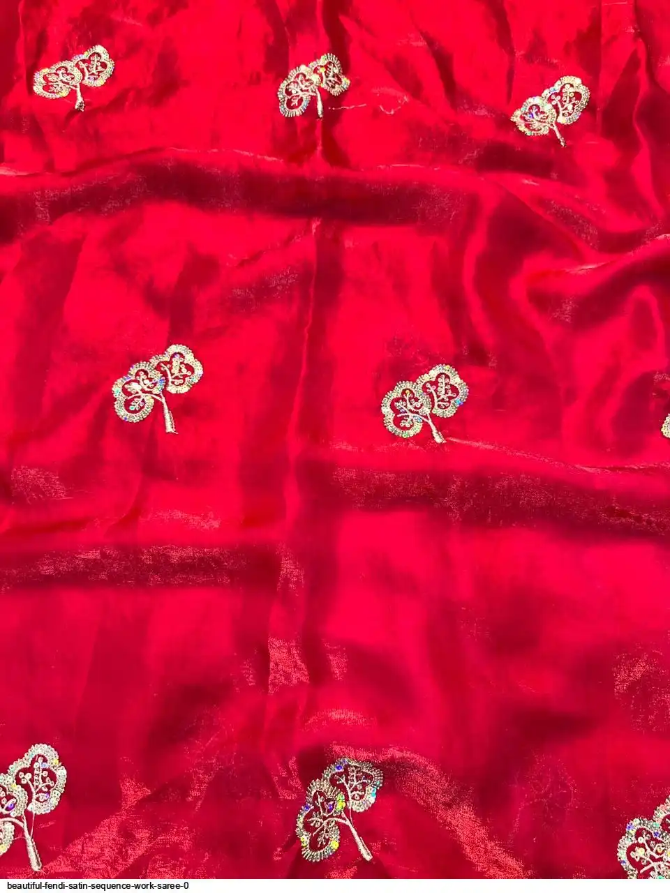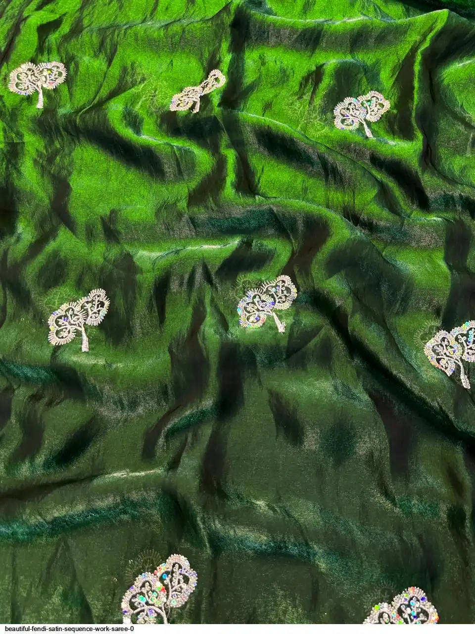 Fendy Sattin Dual Shaded With Beautiful Zari With Sequence Work Flower Butti All In Saree & running Blouse Work !!