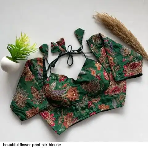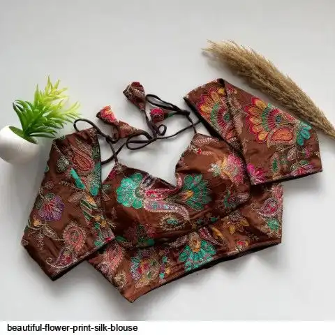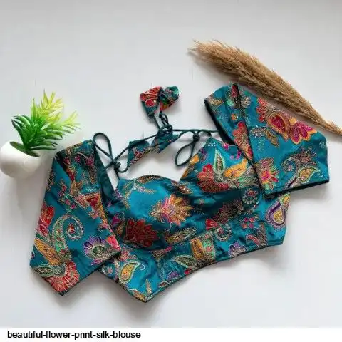 Beautiful flower print print all over blouse with embroidery work all over