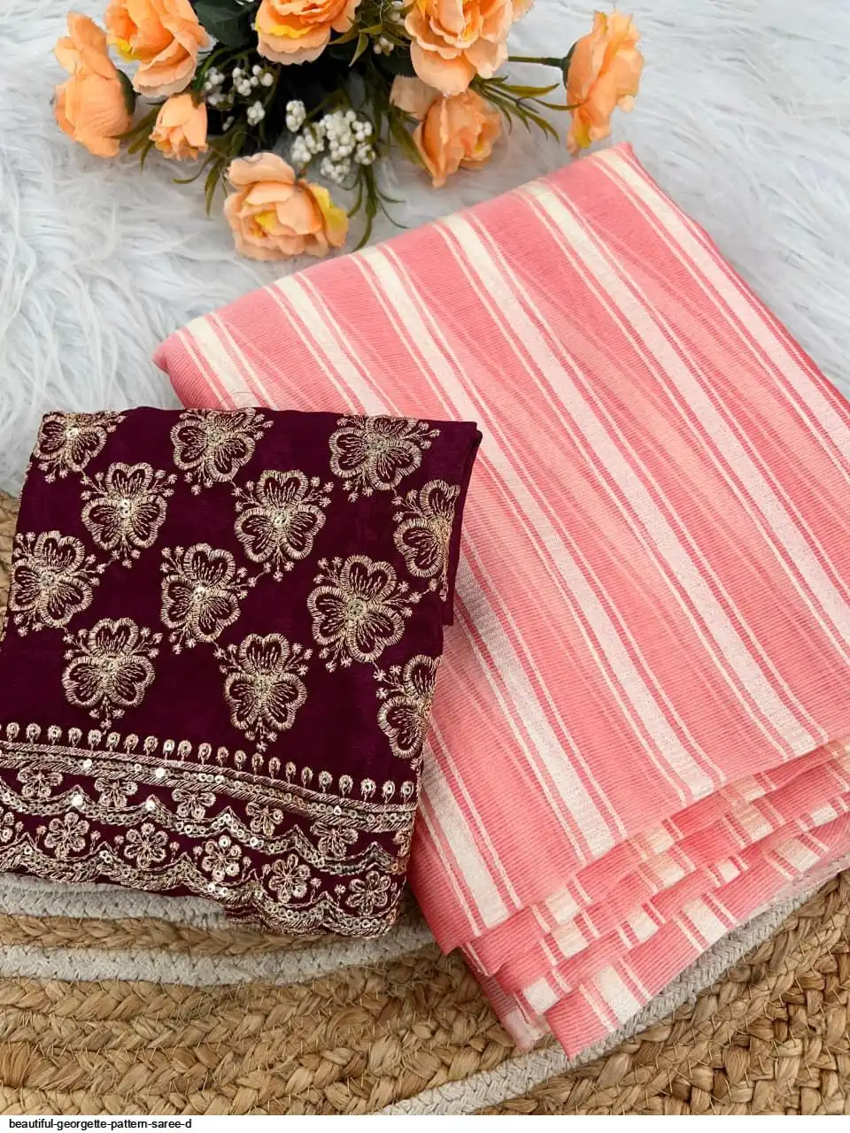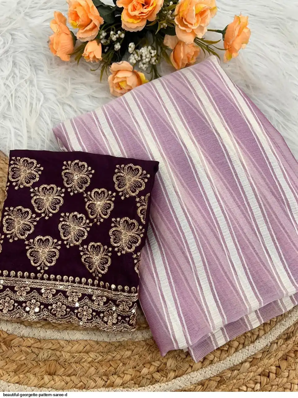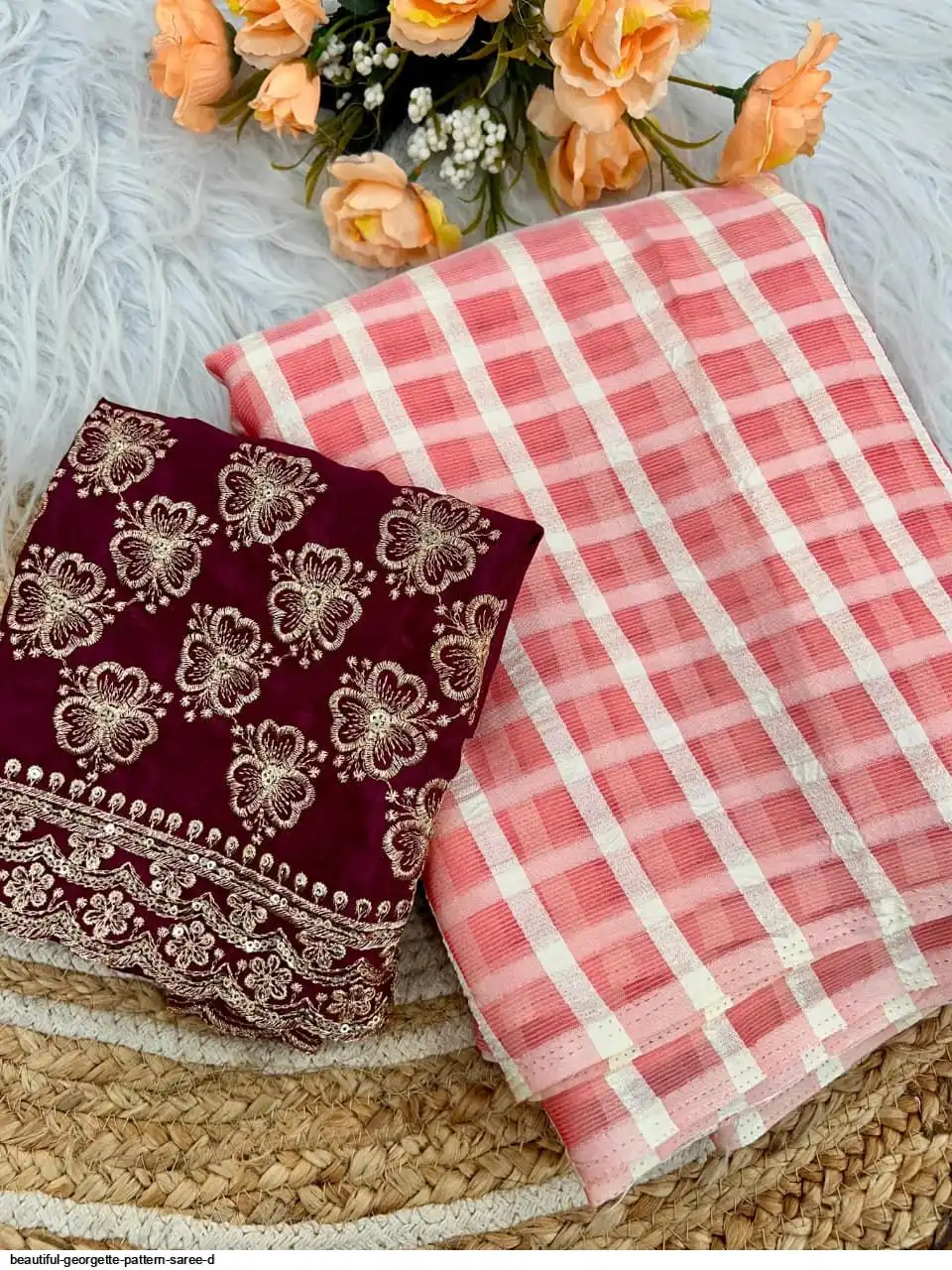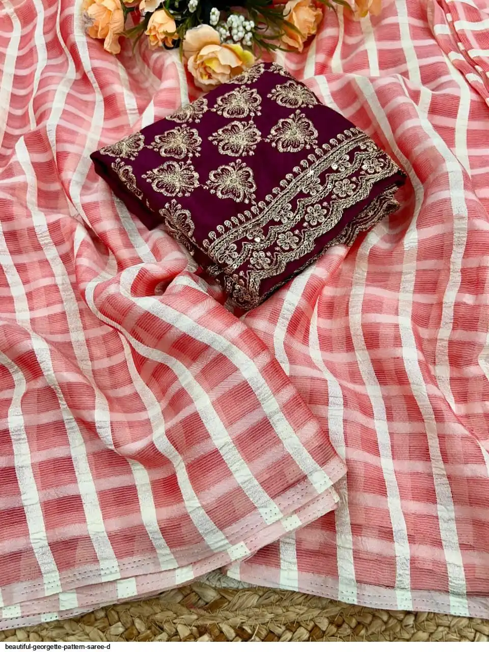 Georgette Pattern Saree With work Blouse