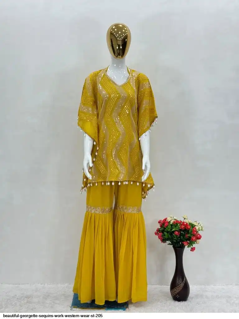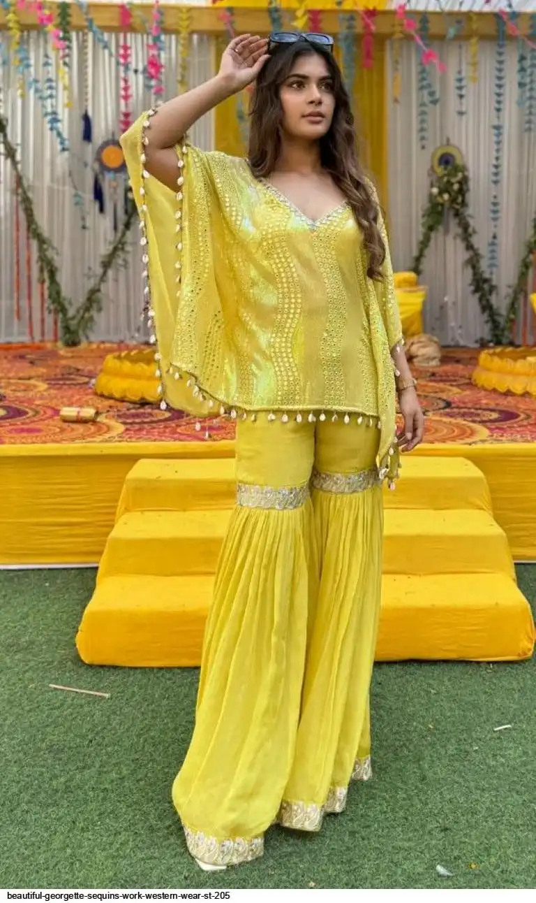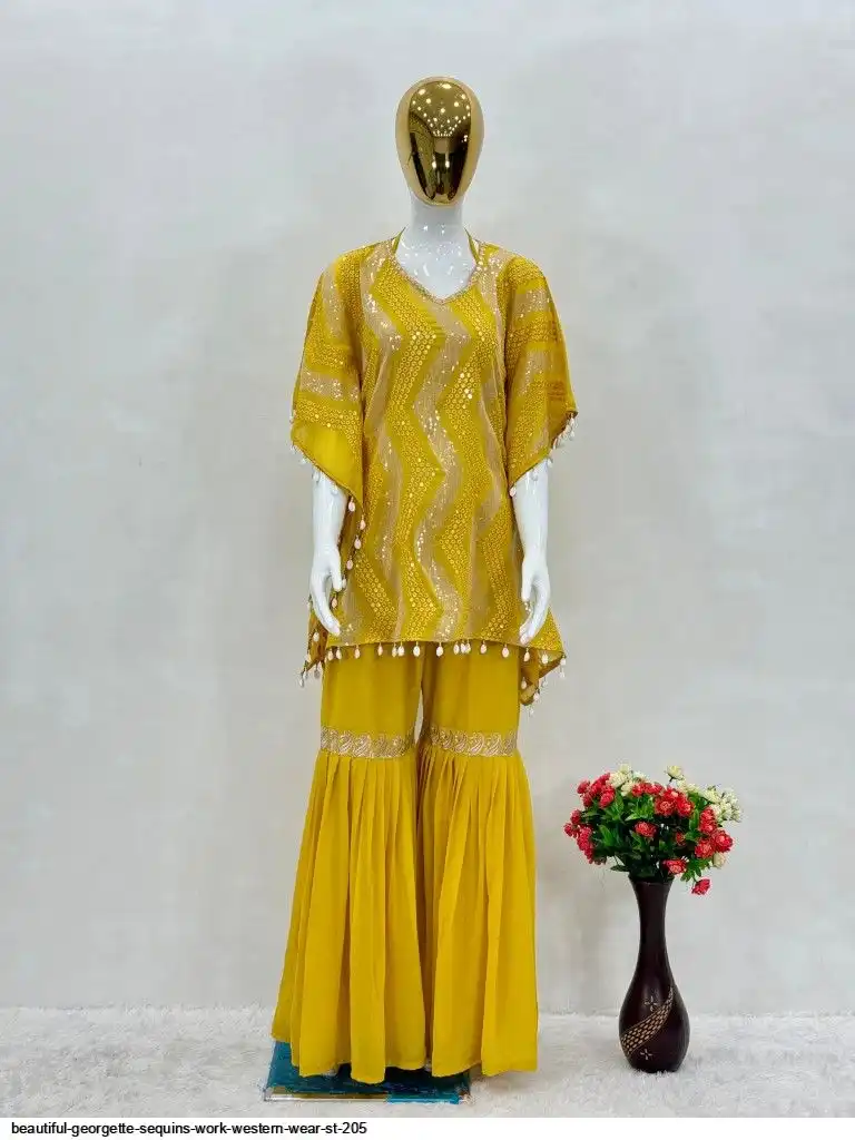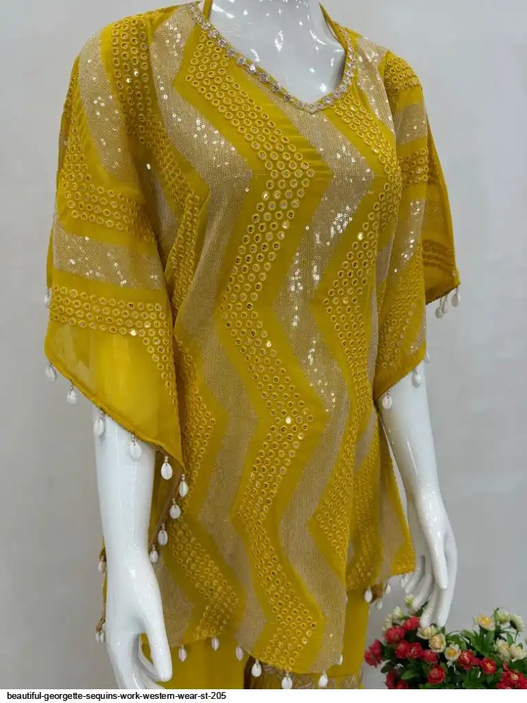 KAFTAN WORK : HEAVY EMBROIDERED 3 MM SEQUINS WORK WITH KODI LESS