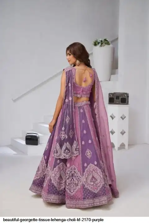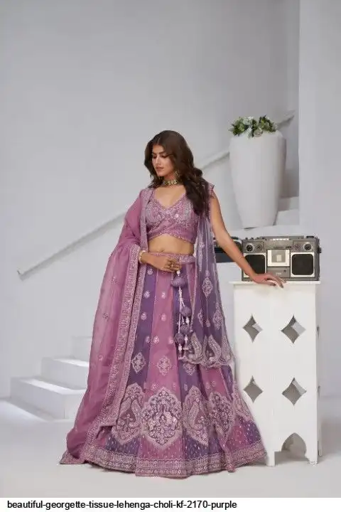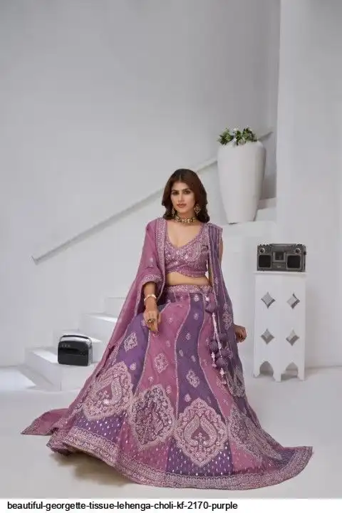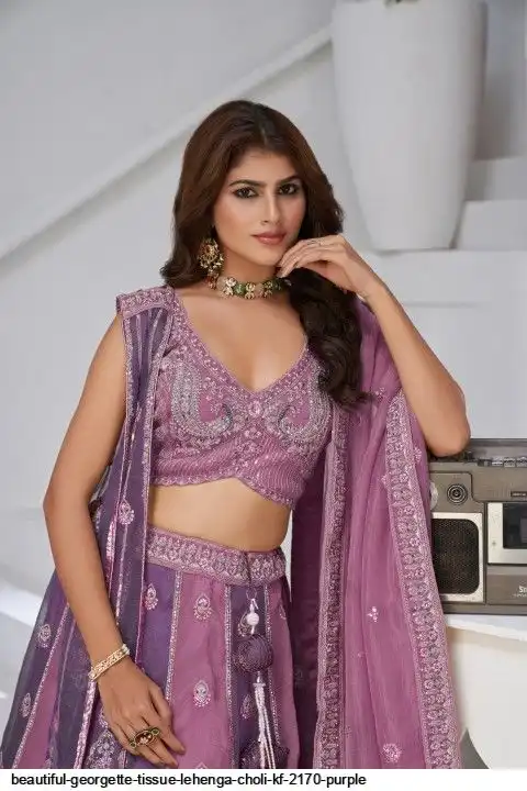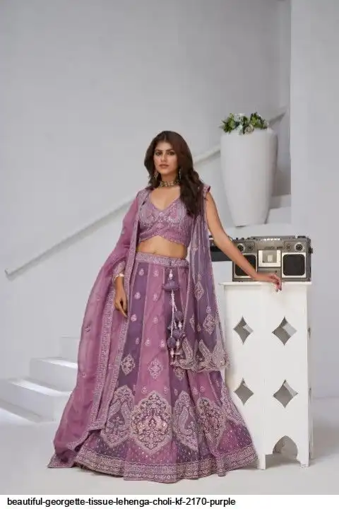 BEAUTIFUL GEORGETTE TISSUE LEHENGA CHOLI KF 2170 PURPLE