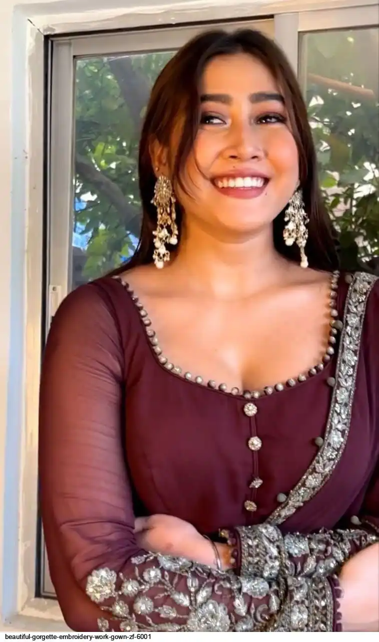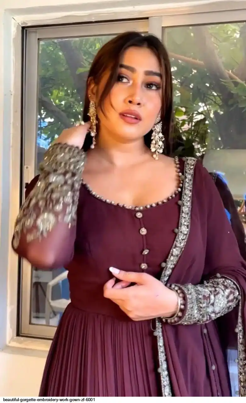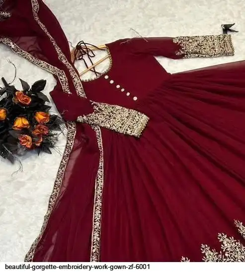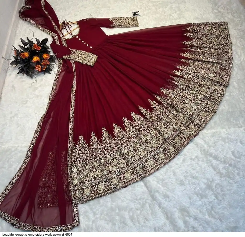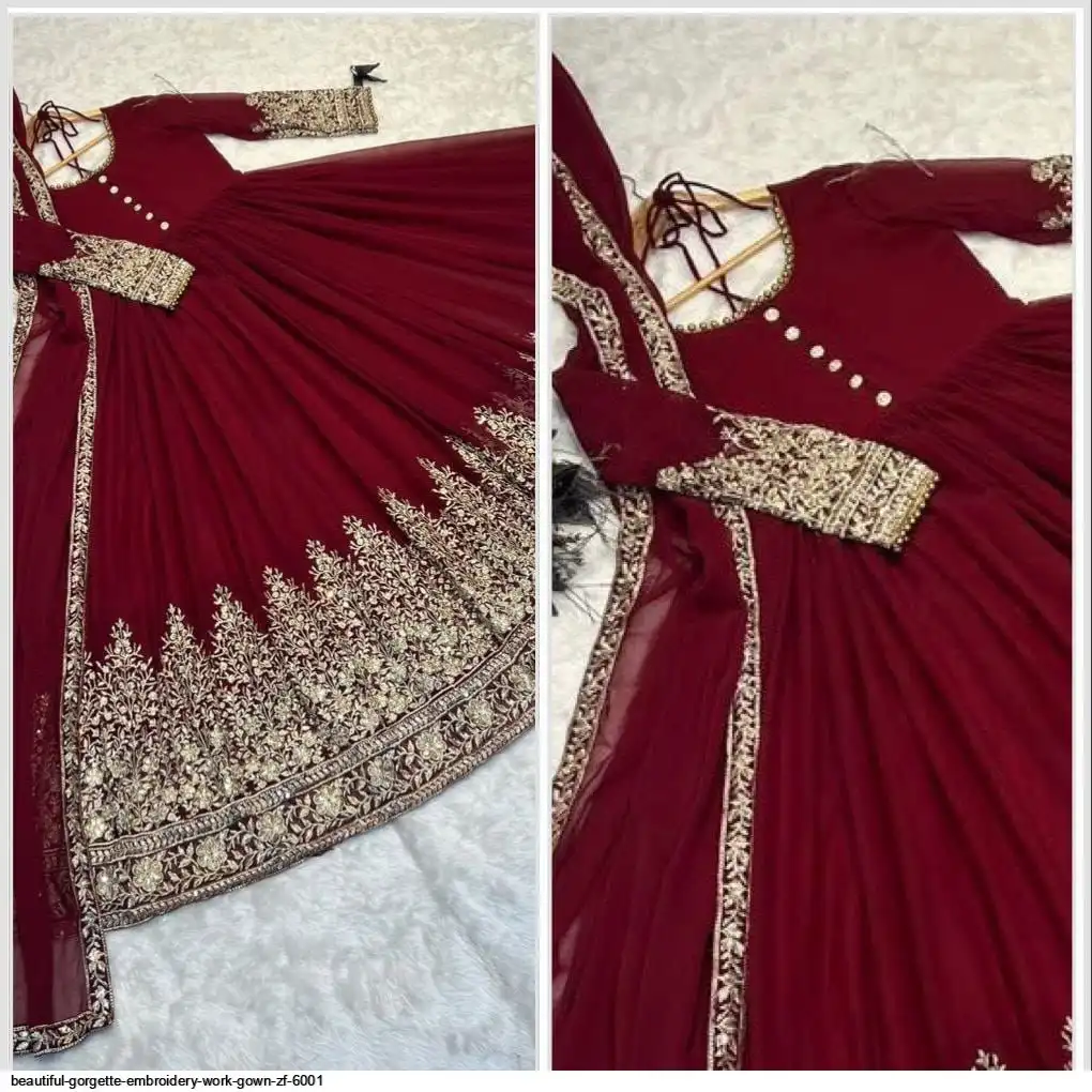 #GOWN FABRICS : FOX GORGETTE WITH SIQUNCE EMBROIDERY WORK AND MOTI LESS WORK FULL STITCHED