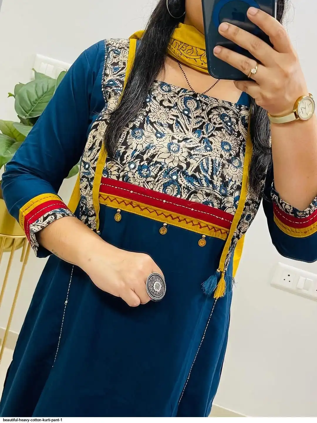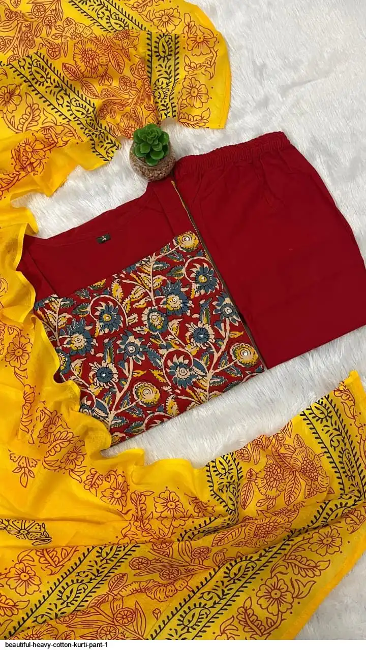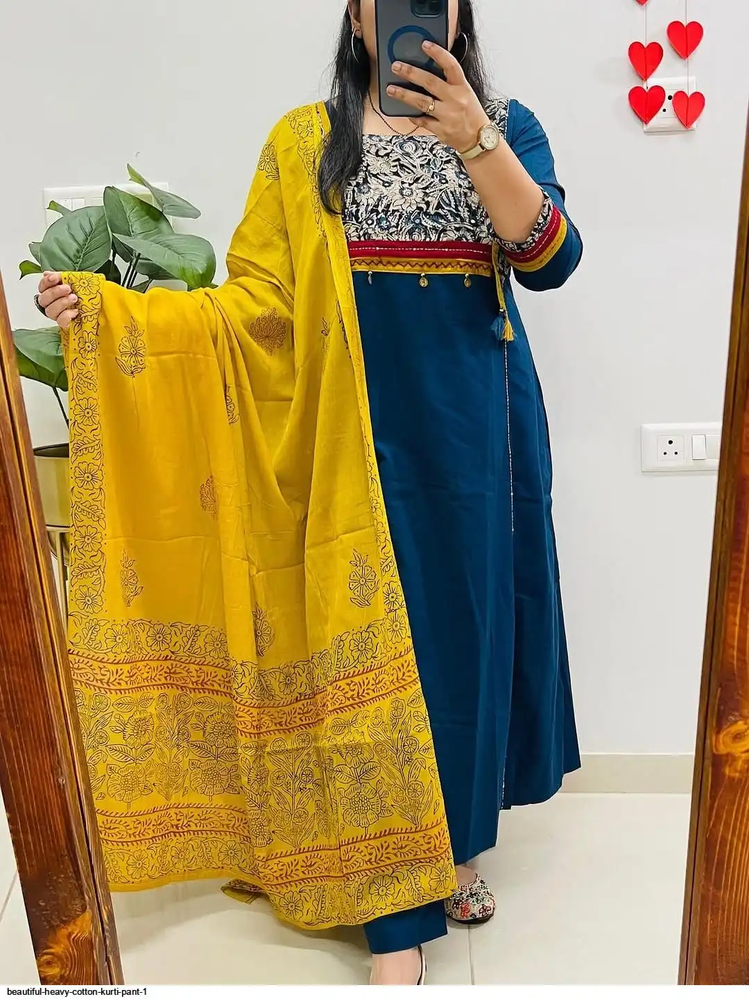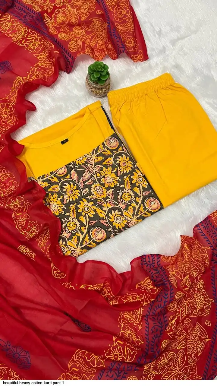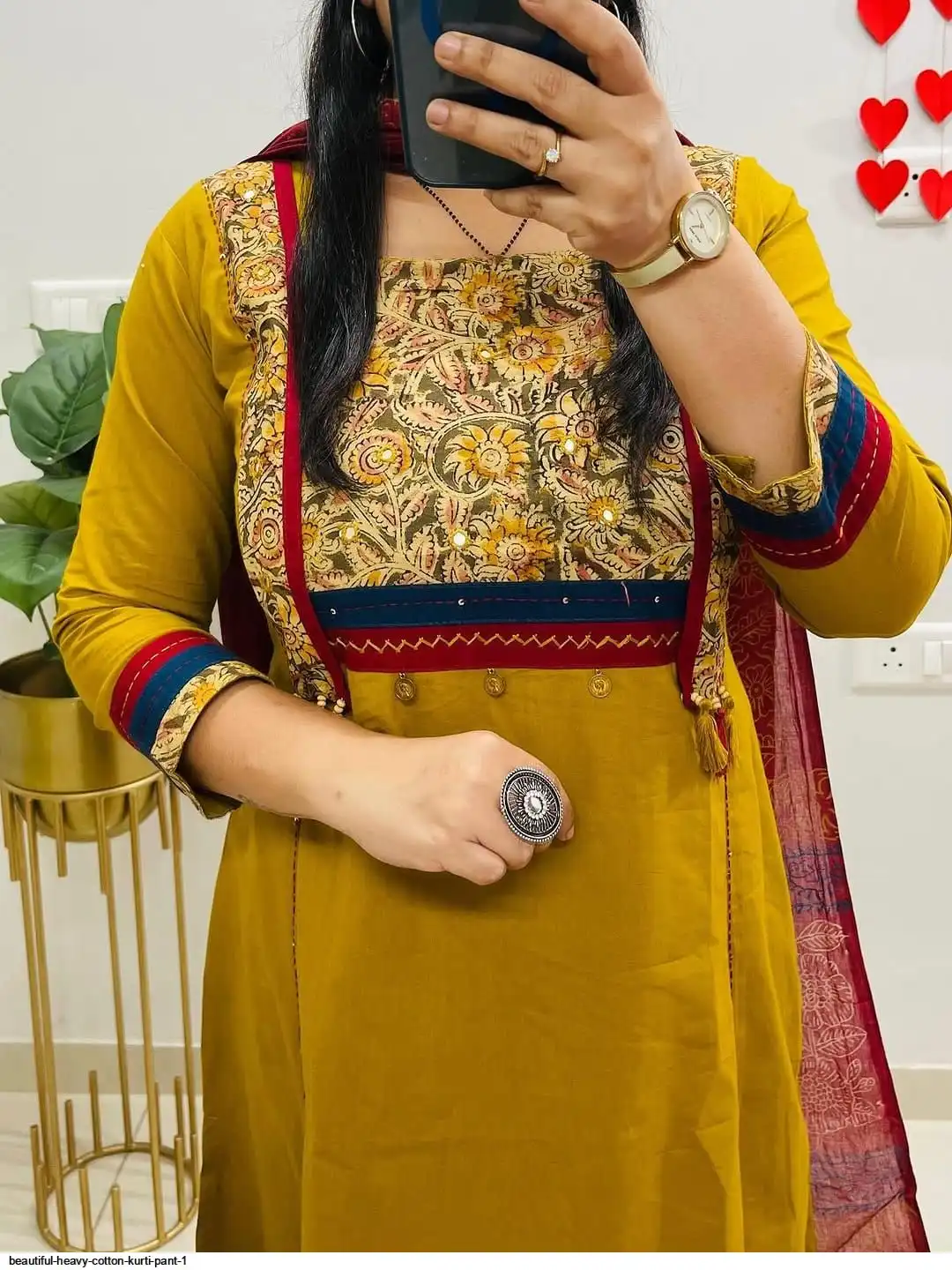 Pure fine Cotton fabric 🪡🧶 heavy yog work and sika work Kurti with Pant with cotton 100-100 Dupatta