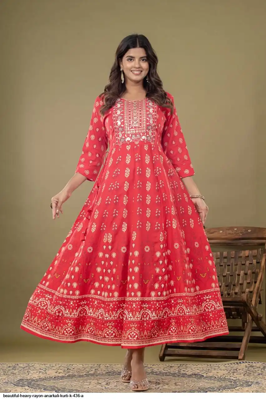 BEAUTIFUL HEAVY RAYON ANARKALI KURTI K 436 A