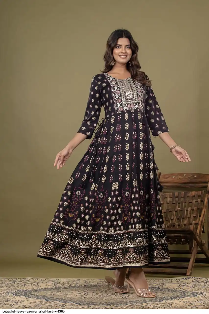 BEAUTIFUL HEAVY RAYON ANARKALI KURTI K 436B