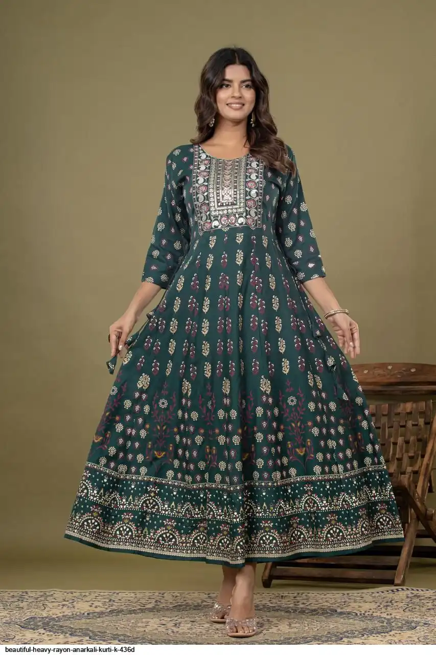 BEAUTIFUL HEAVY RAYON ANARKALI KURTI K 436D