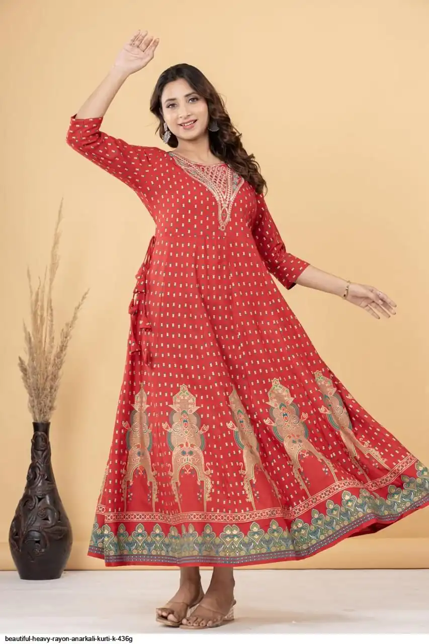 BEAUTIFUL HEAVY RAYON ANARKALI KURTI K 436G