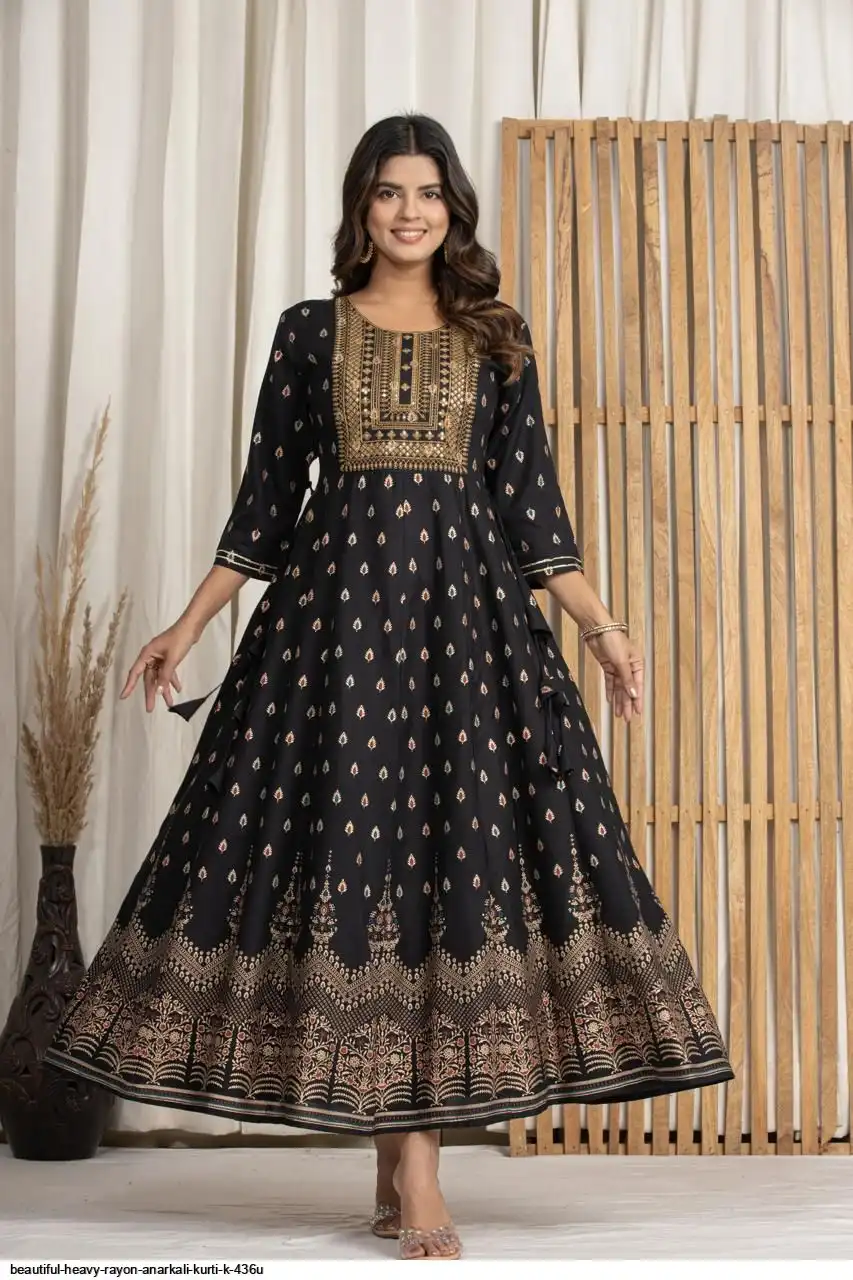 BEAUTIFUL HEAVY RAYON ANARKALI KURTI K 436U