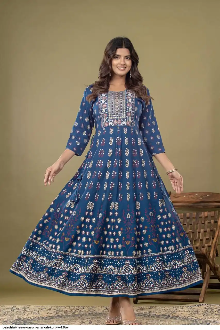 BEAUTIFUL HEAVY RAYON ANARKALI KURTI K 436W