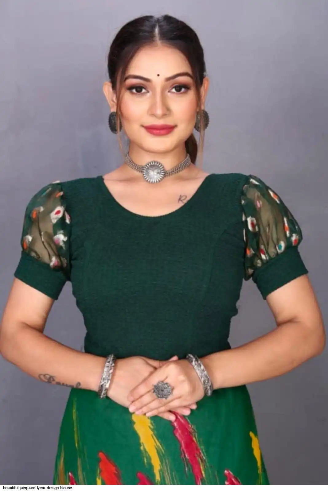 Elegant Round Neck Design: Enhances the traditional saree look with a modern touch