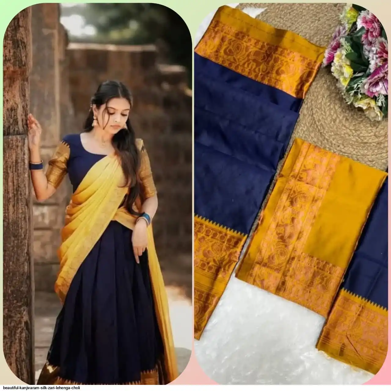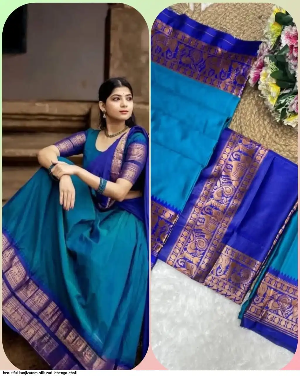 Kanjivaram Silk Zari Lehenga With Blouse Along With Banarasi Dupatta!!