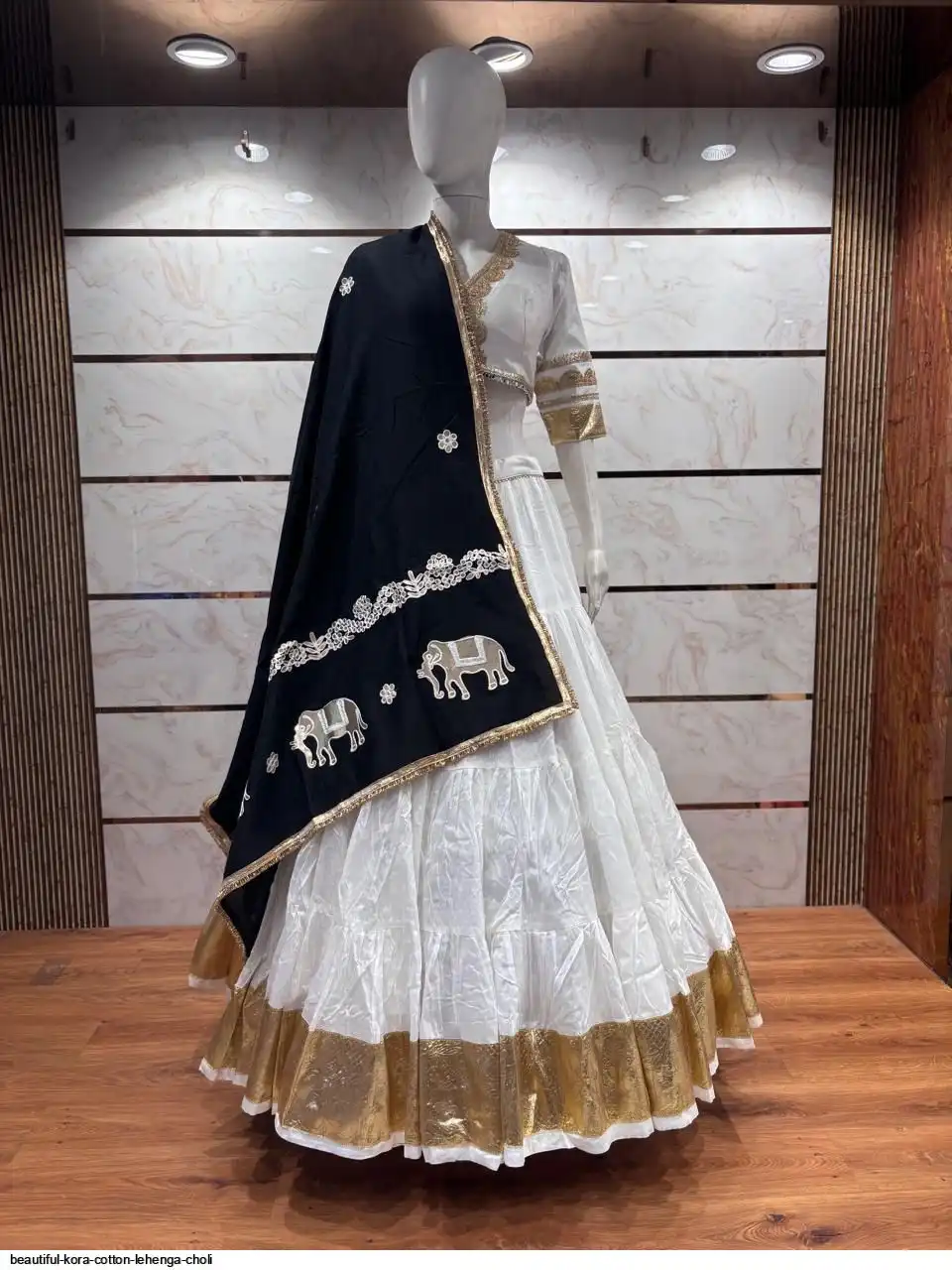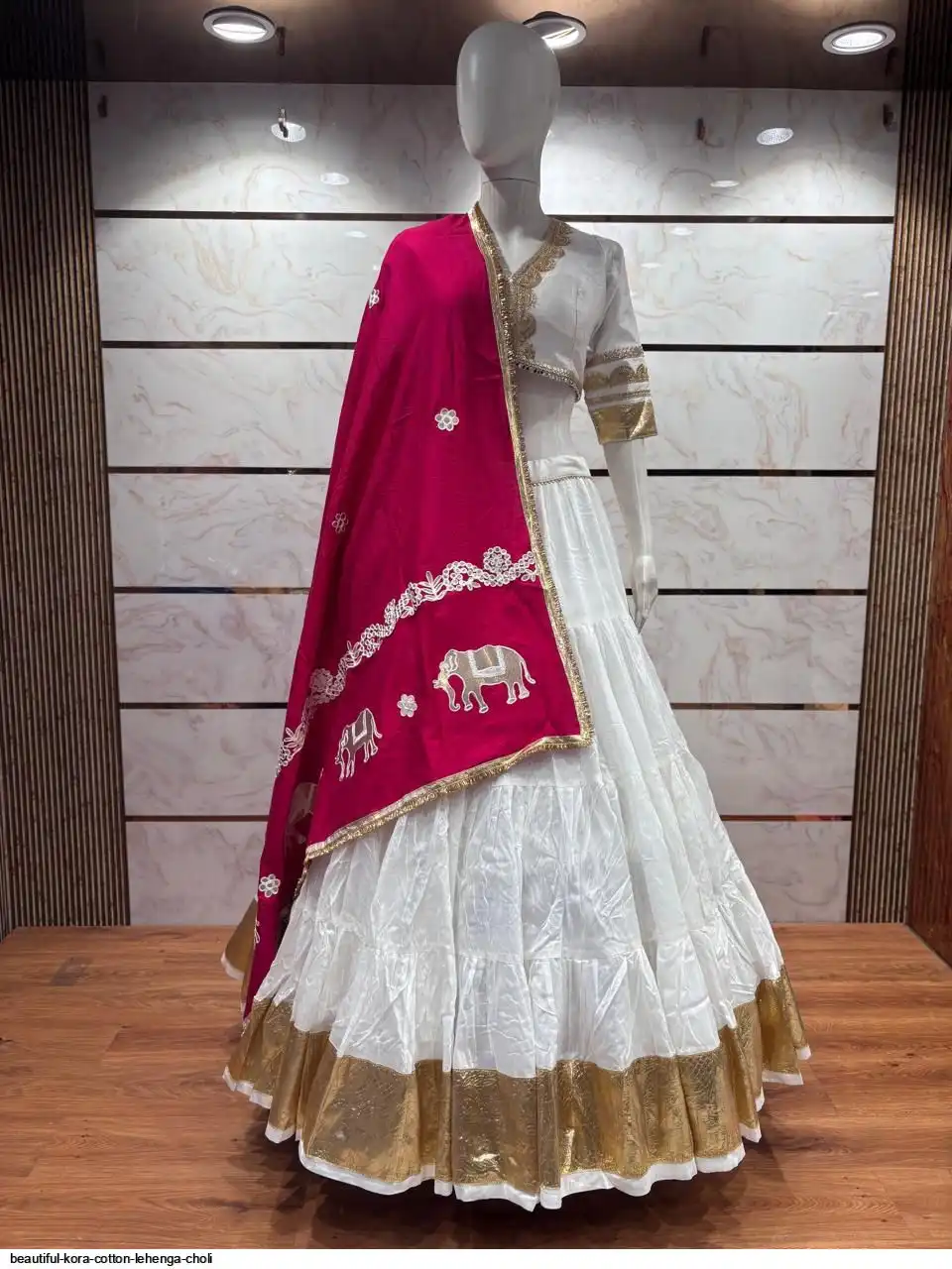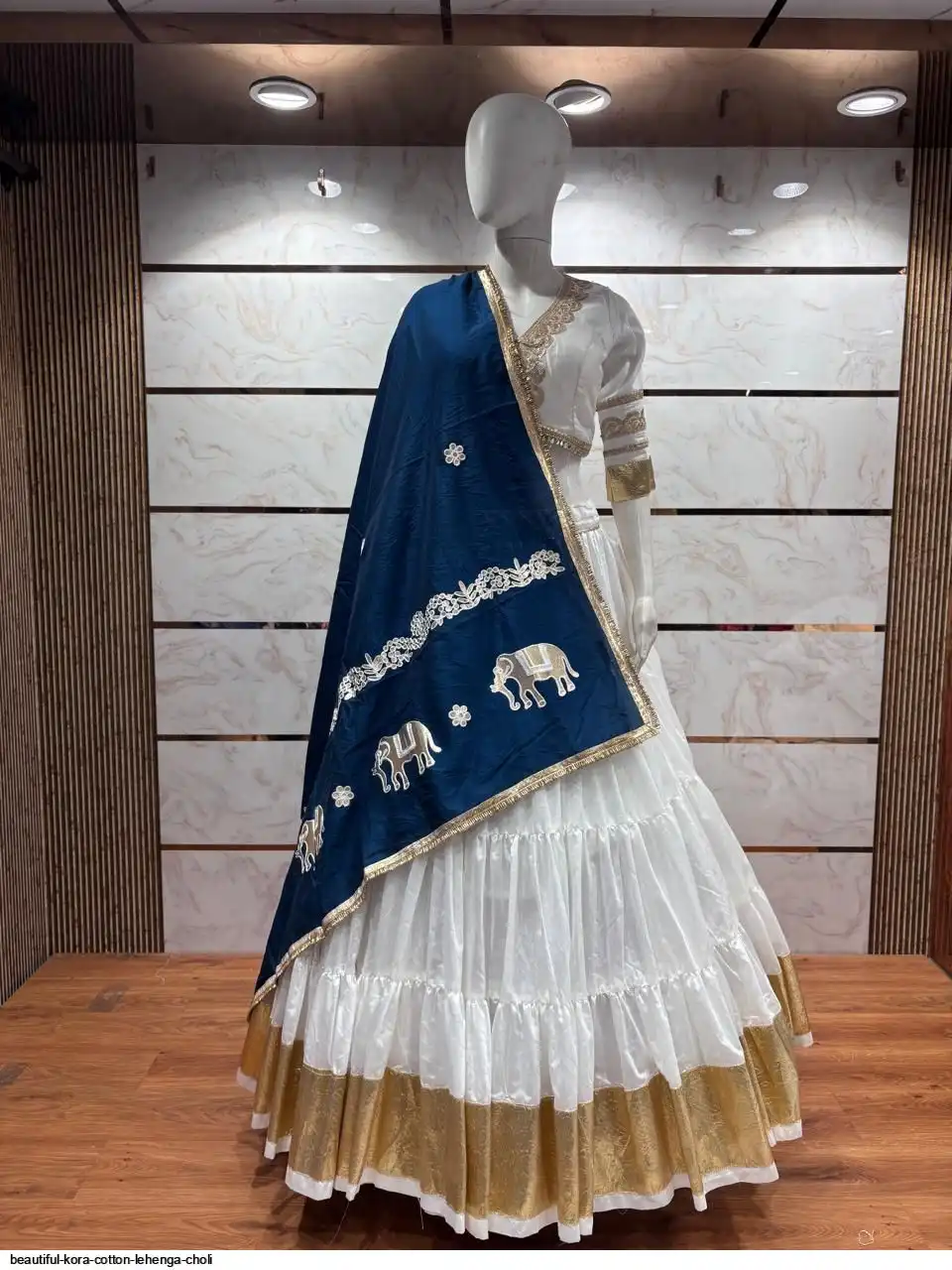 Eplic work Gotapatti ari work dupatta with 15 mtr Lappa border ready to wear Chaniyacholi with kora cotton base
