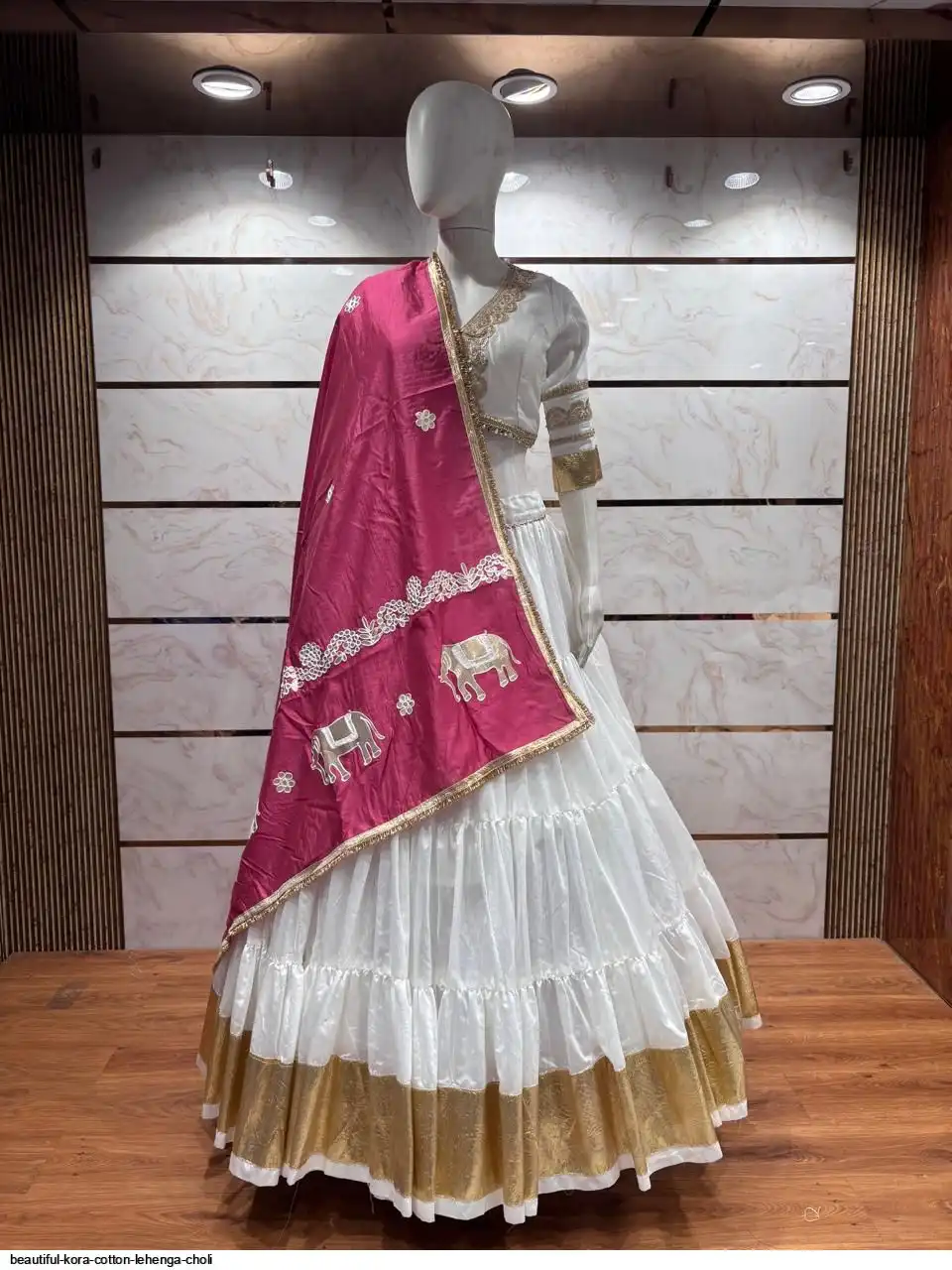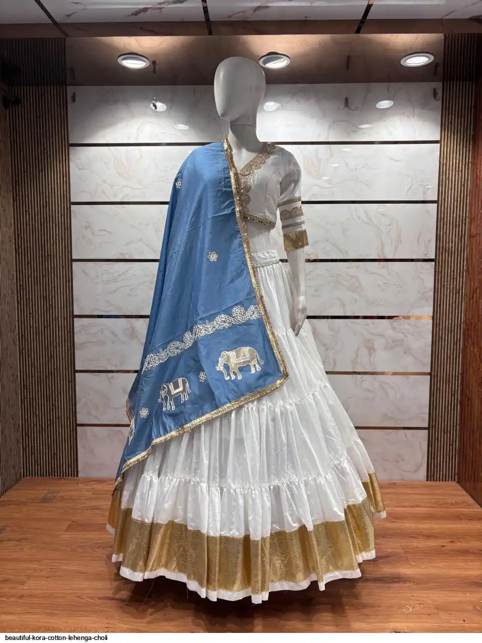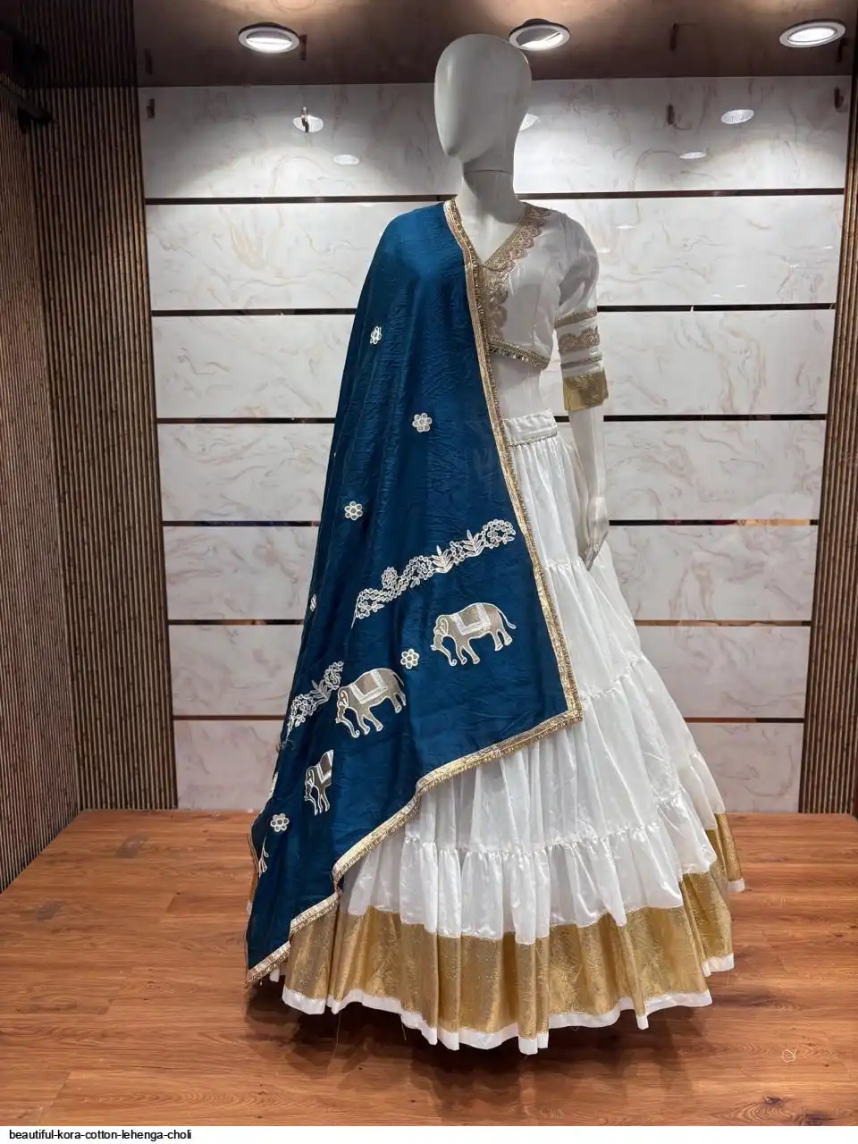 Eplic work Gotapatti ari work dupatta with 15 mtr Lappa border ready to wear Chaniyacholi with kora cotton base