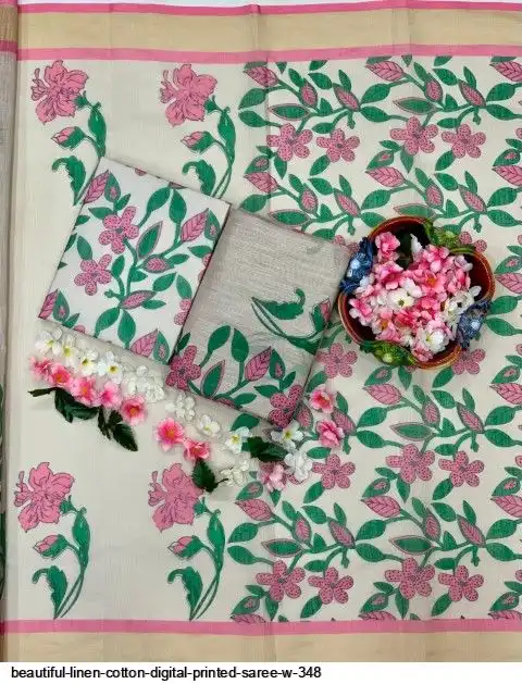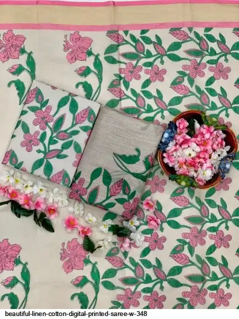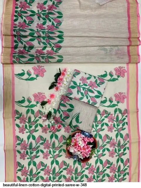 Fabric :- Linen Cotton With Beautiful Digital Printed Saree(5.5 Cut)