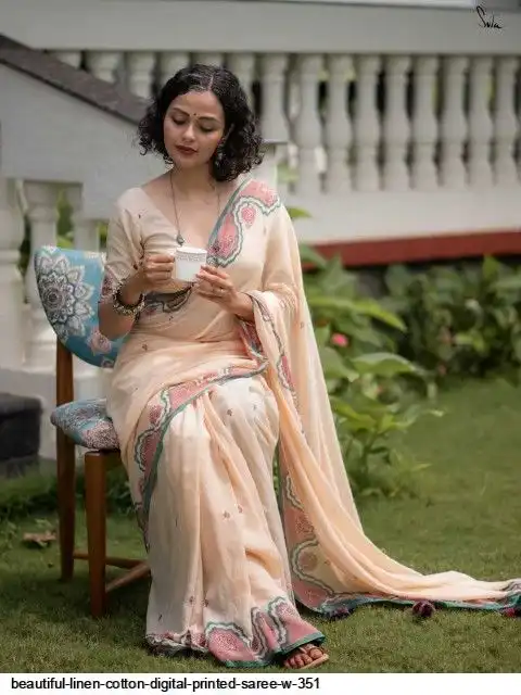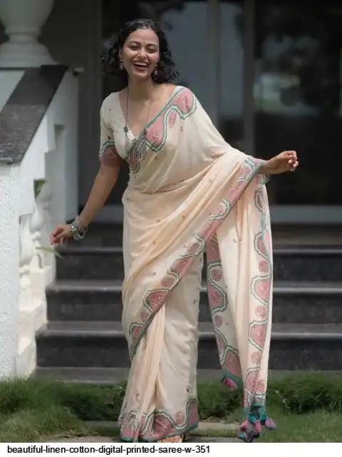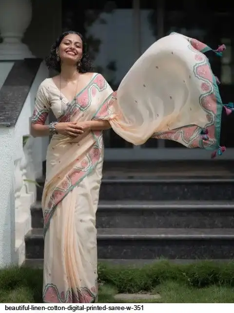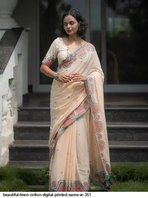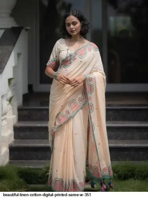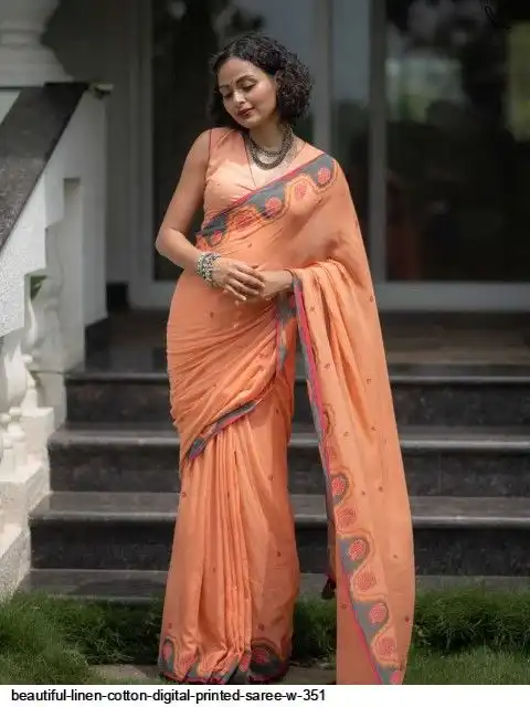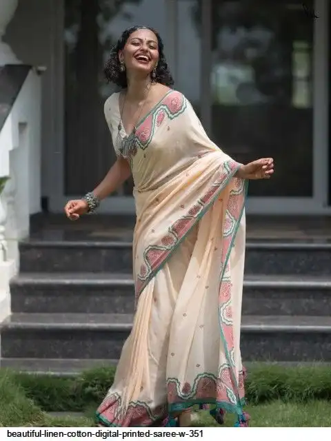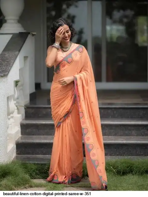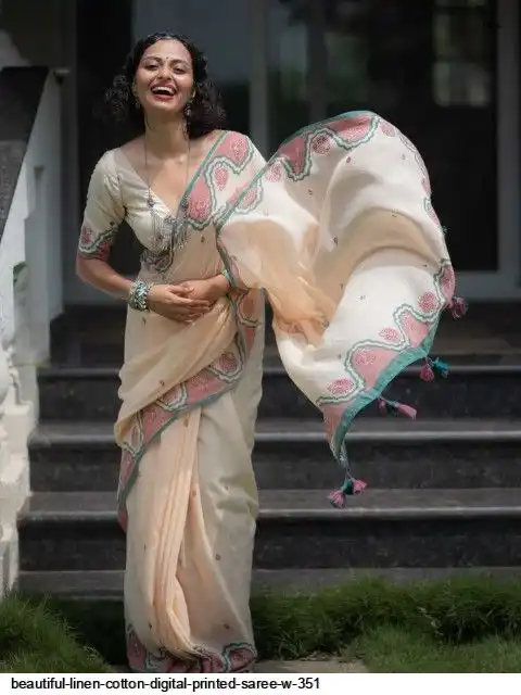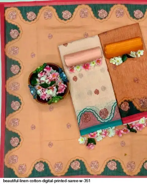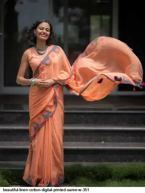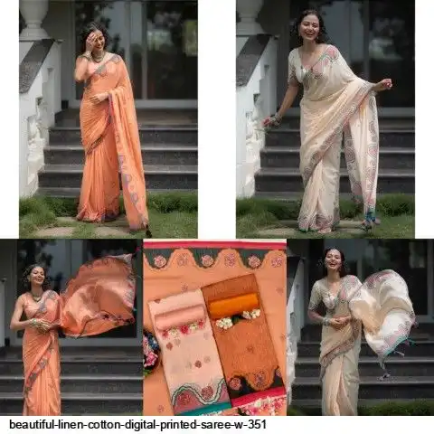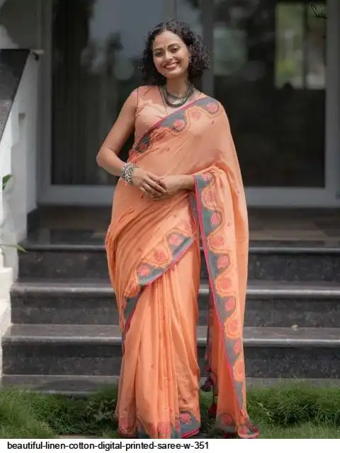Fabric :- Linen Cotton With Beautiful Digital Printed Saree(5.5 Cut)