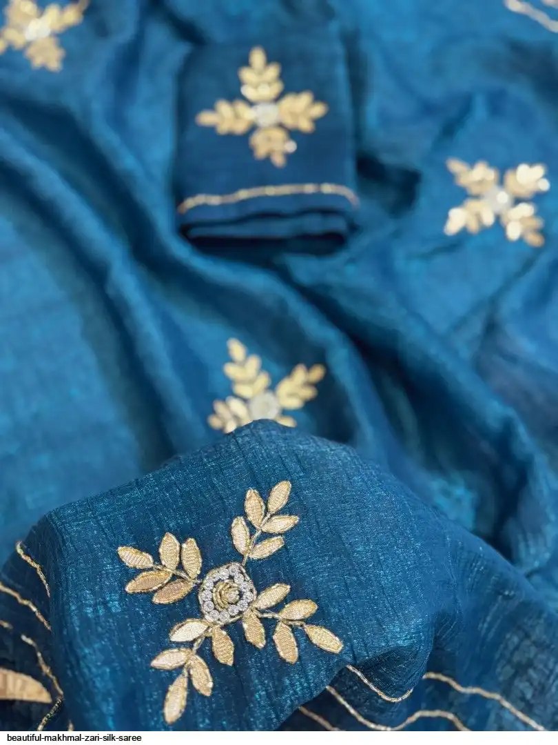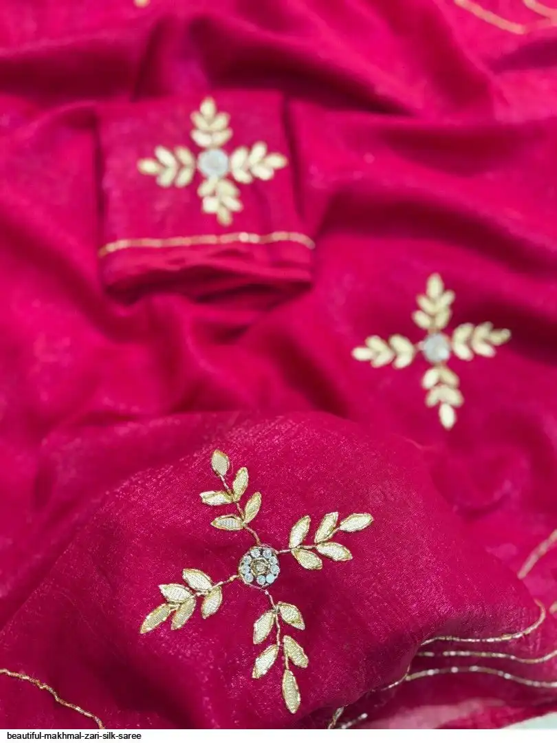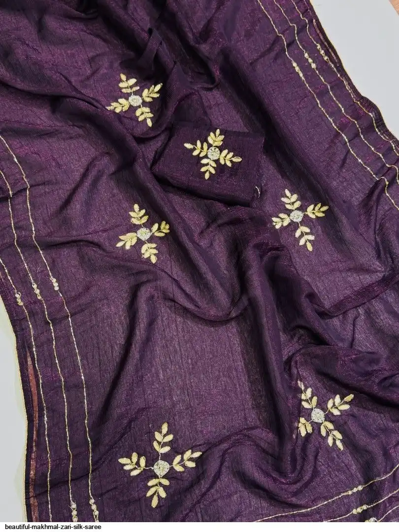 Makhmal jari silk saree with beautiful handwork all over with jari lace and running blouse with handwork