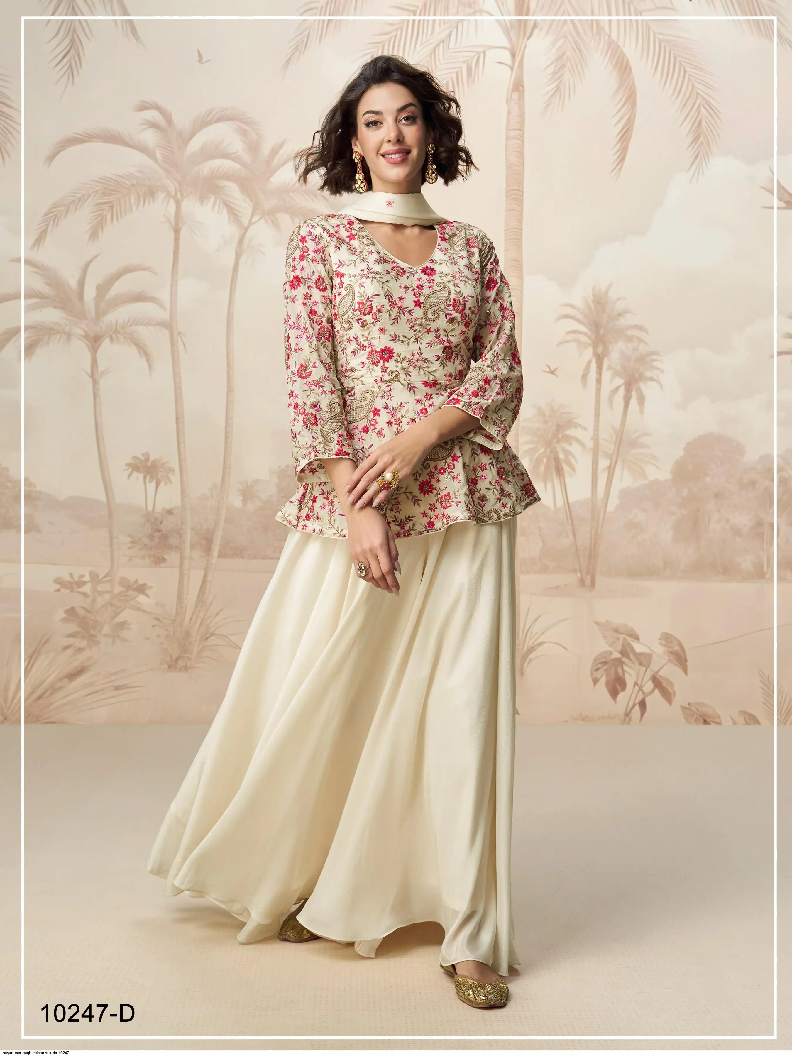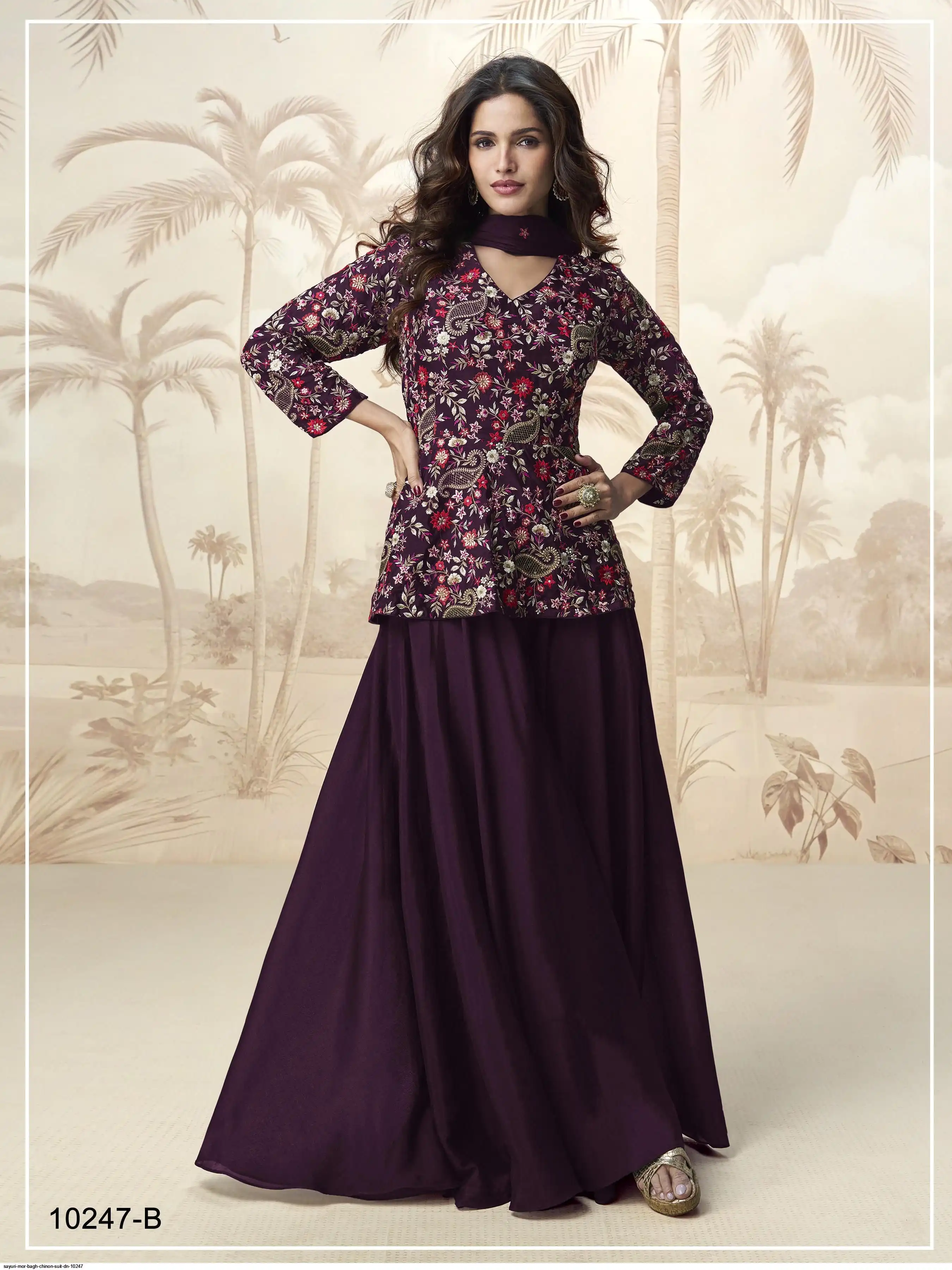TOP + SLEEVES :- Heavy Chinon with Embroidery Multi & 3mm Mat Squence work