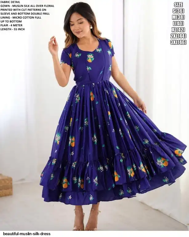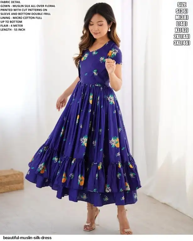 GOWN: MUSLIN SILK ALL OVER FLORAL PRINTED