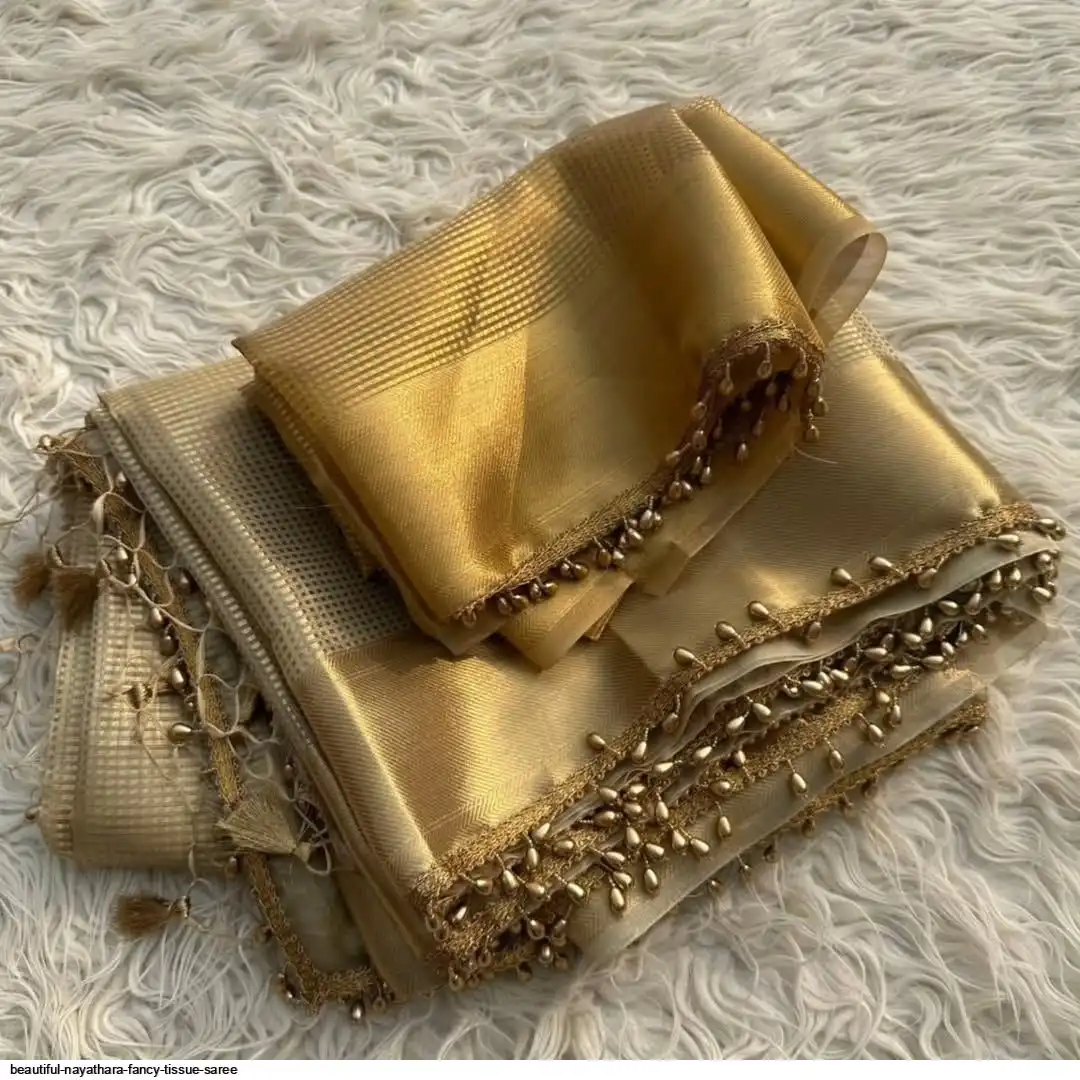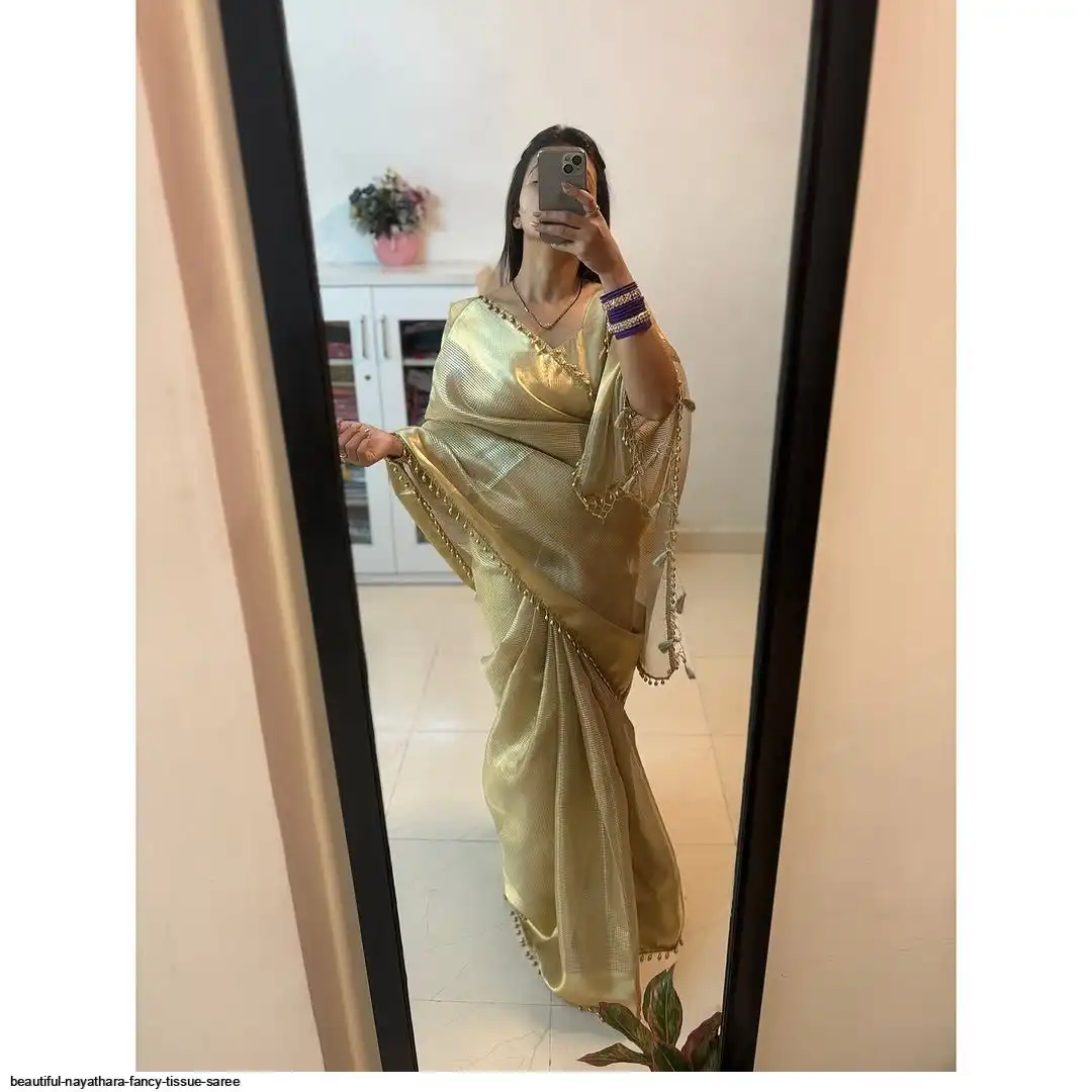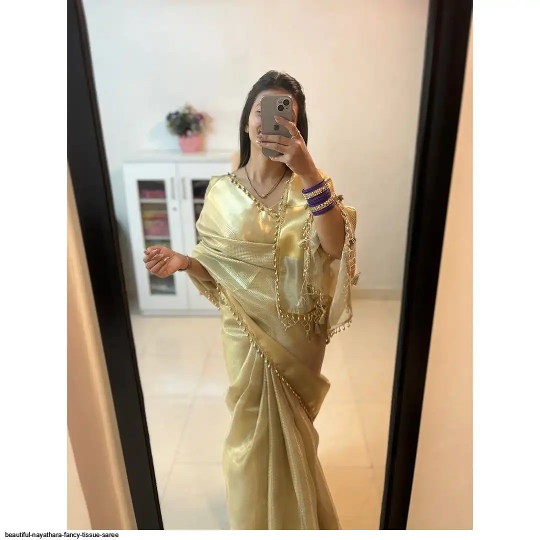 NAYAN THARA SUPER HIT TISSUE SAREE ALONG WITH MOTI LACE