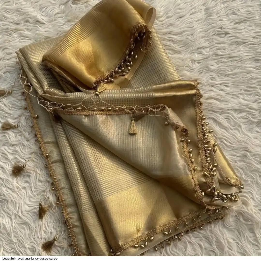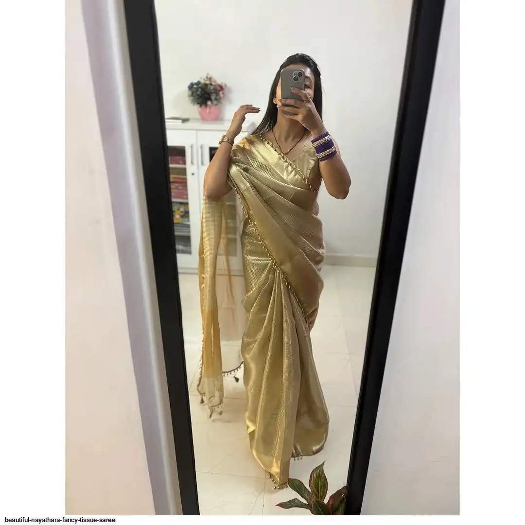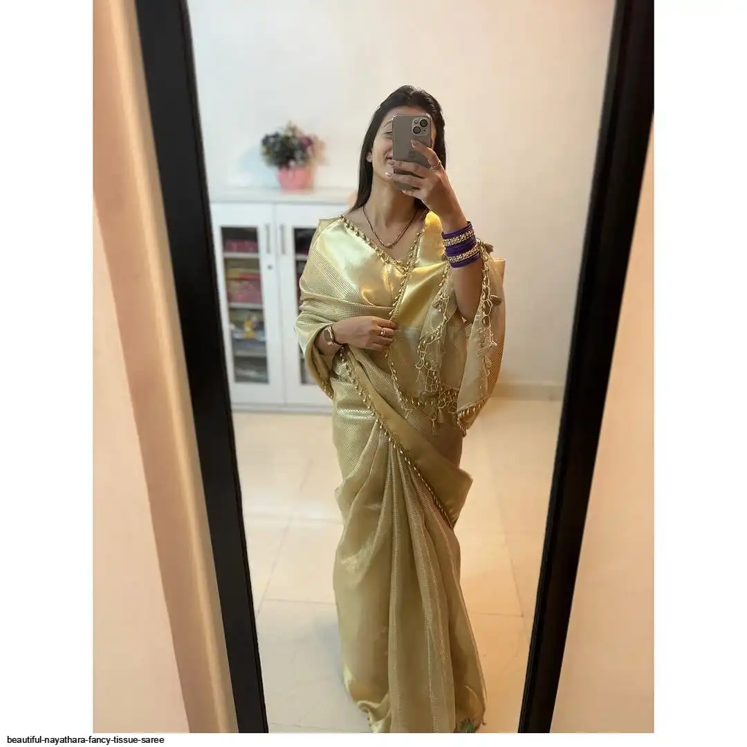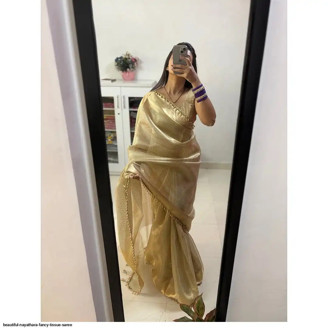 NAYAN THARA SUPER HIT TISSUE SAREE ALONG WITH MOTI LACE