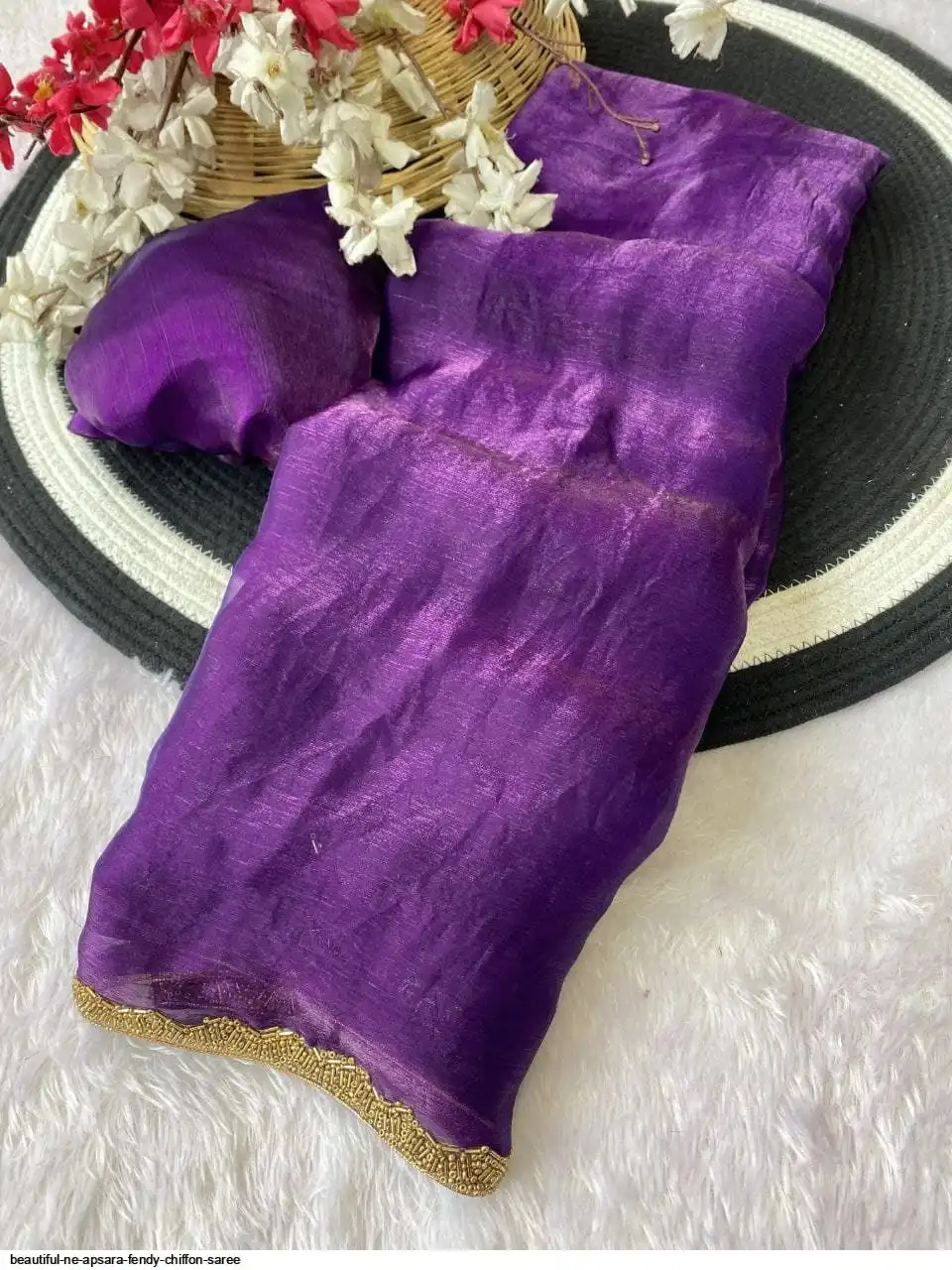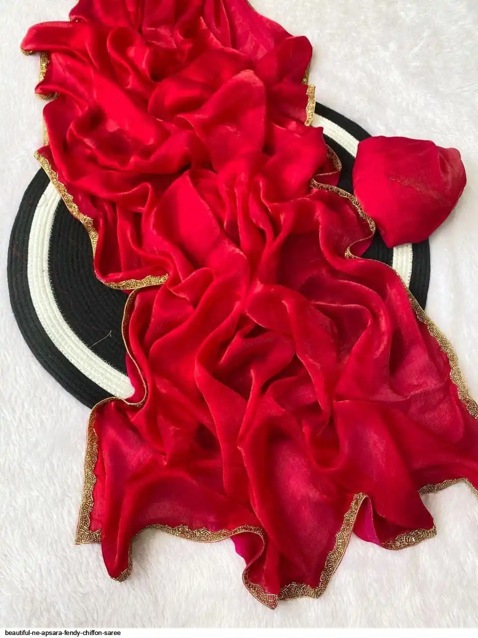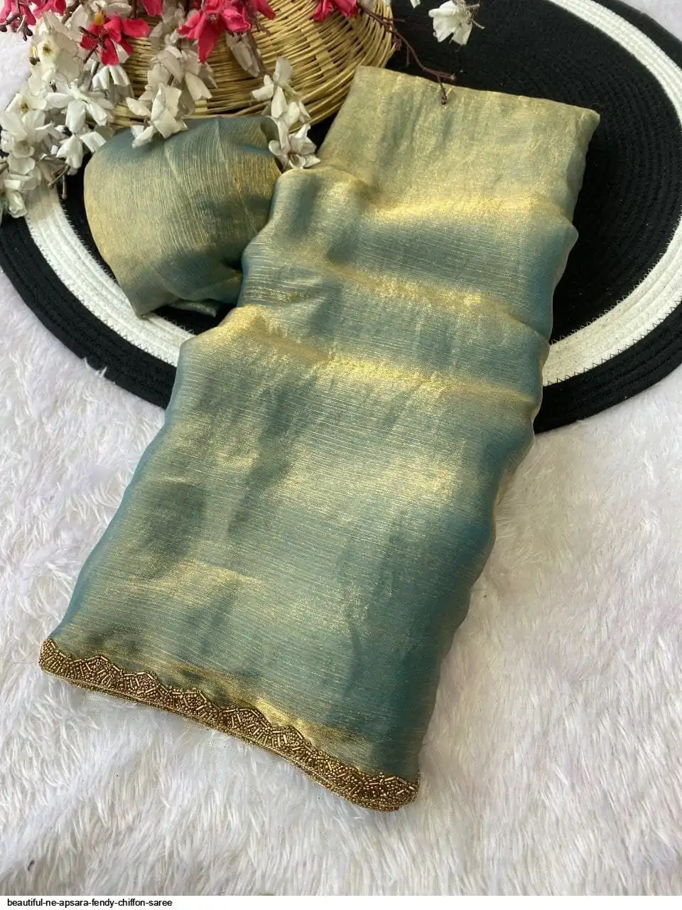 Rich fendy chiffon soft Fabric alpha with beads hand work rich border work