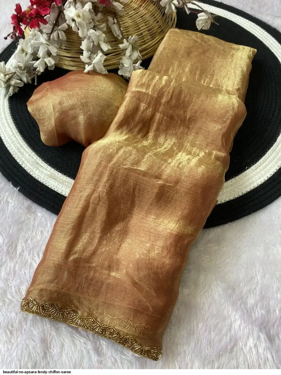 FABRIC : special simmri Golden lovers limited edition saree fendy chiffon two tone saree