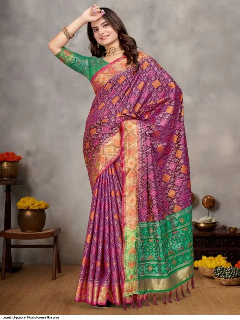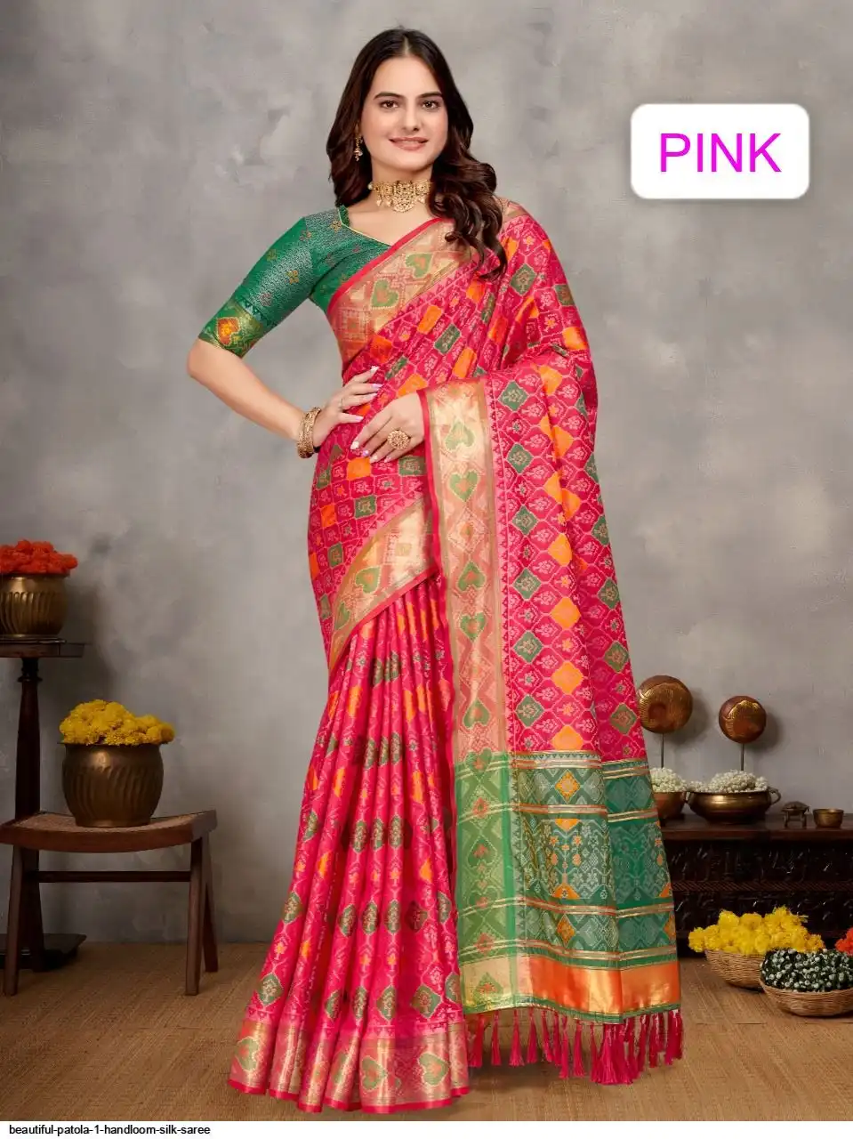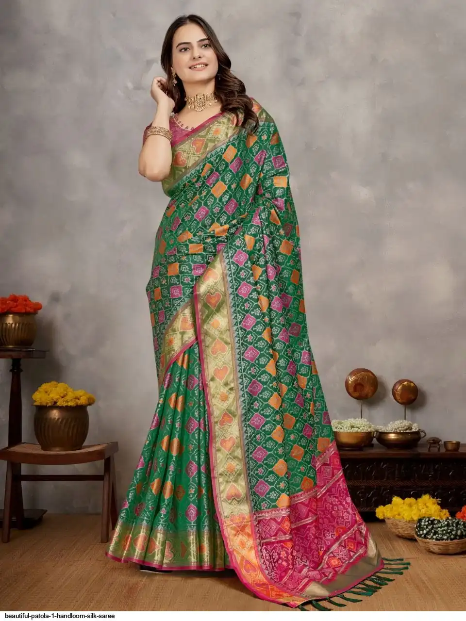 Dazzling Patola Silk Sarees Which Are Very Beautiful With Kanchi Borders And Contrast Zari Weaving Borders