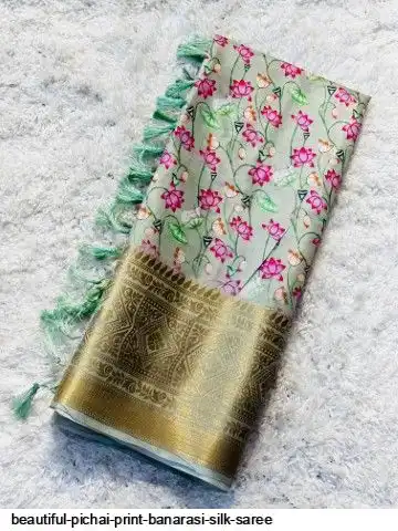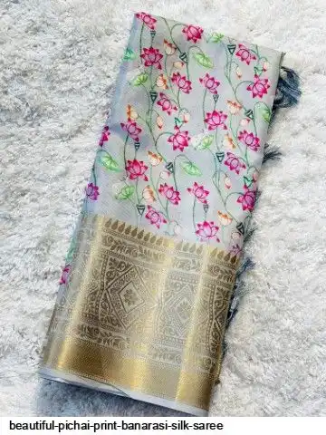 Beautiful pichai print all over banarasi silk saree with hand latkan