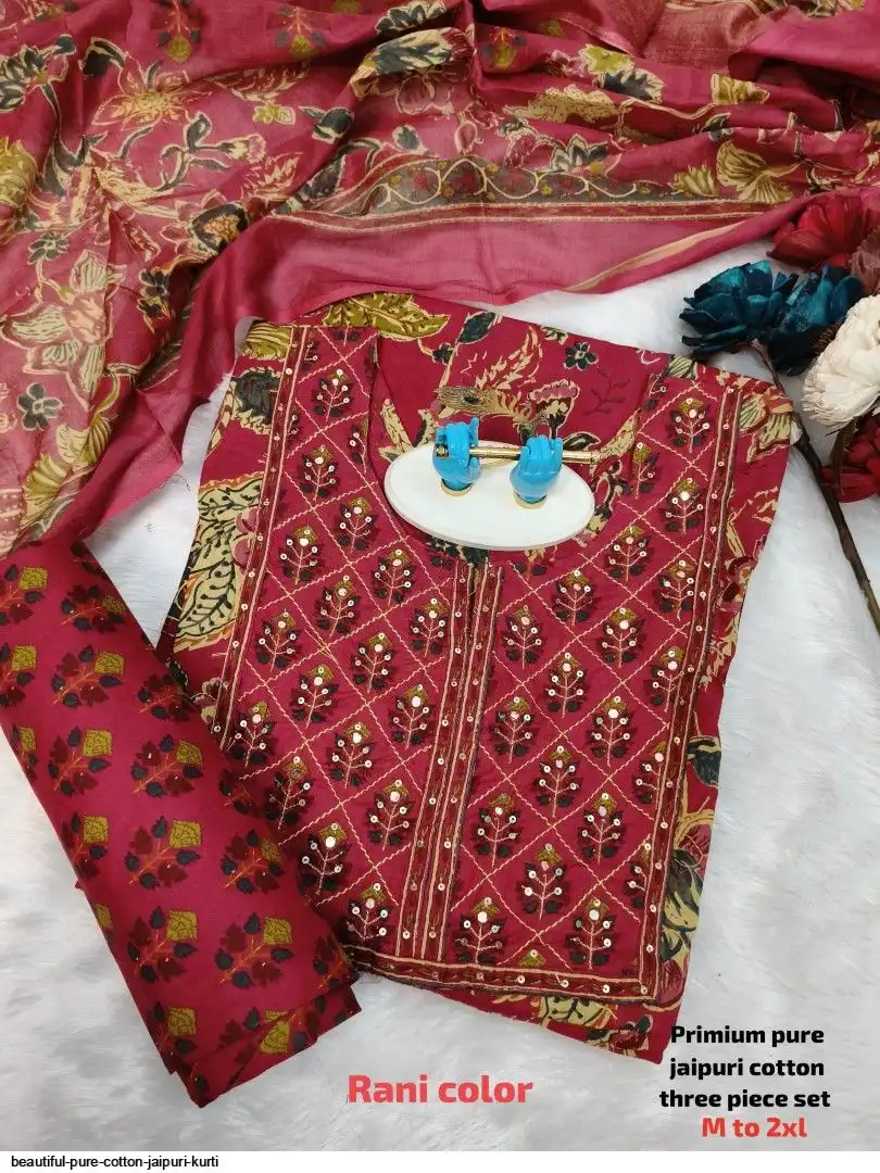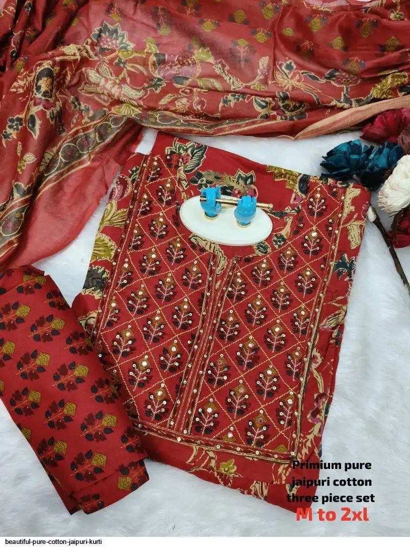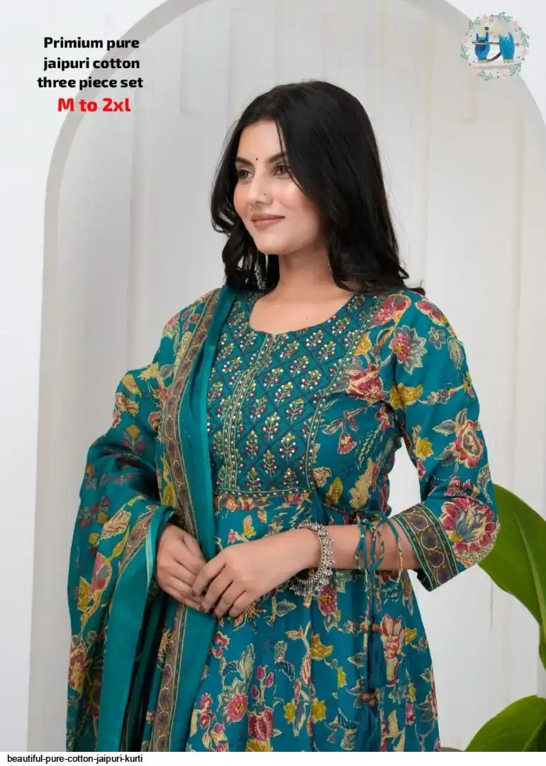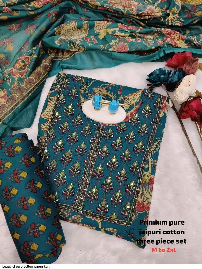 Very comfortable pure cotton jaipuri three piece set