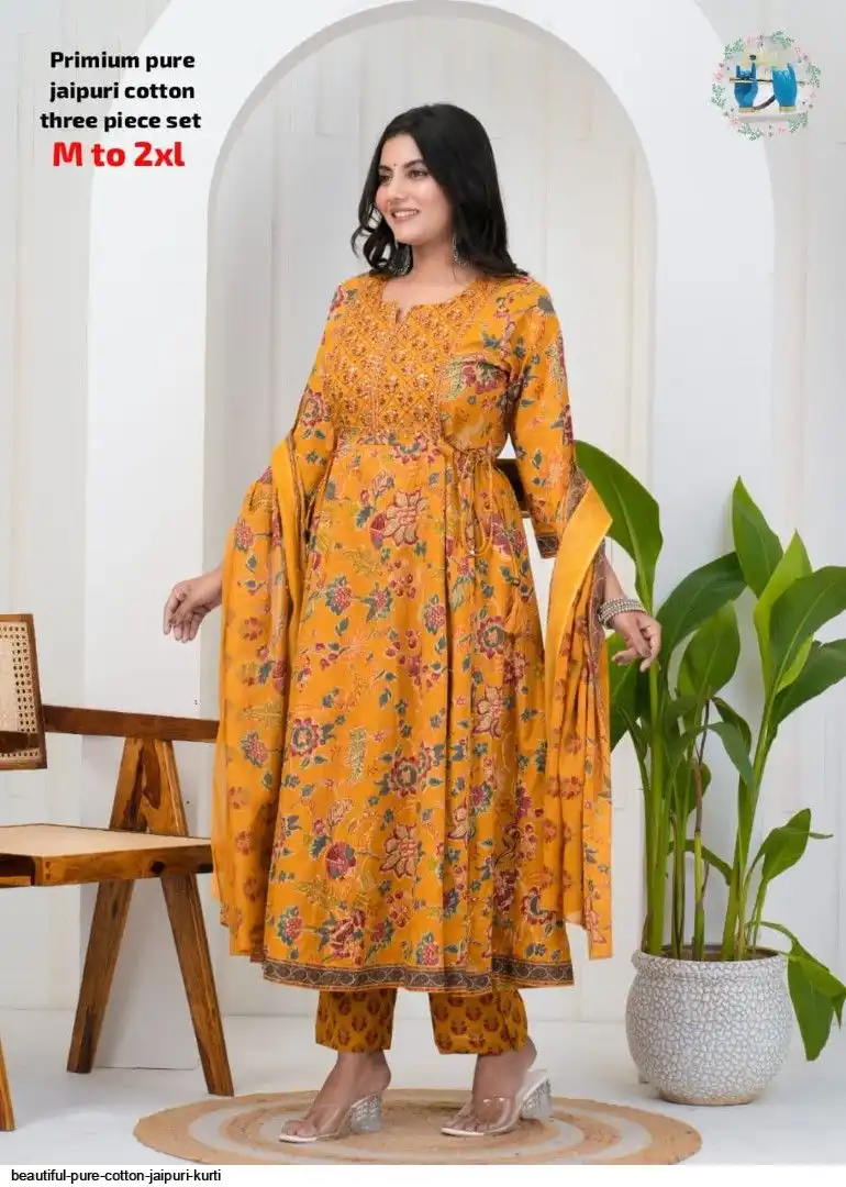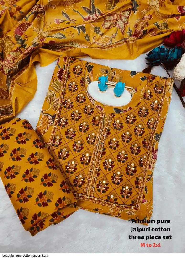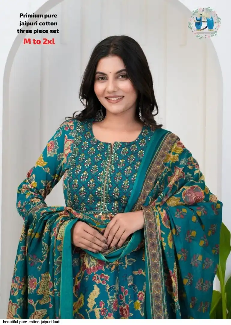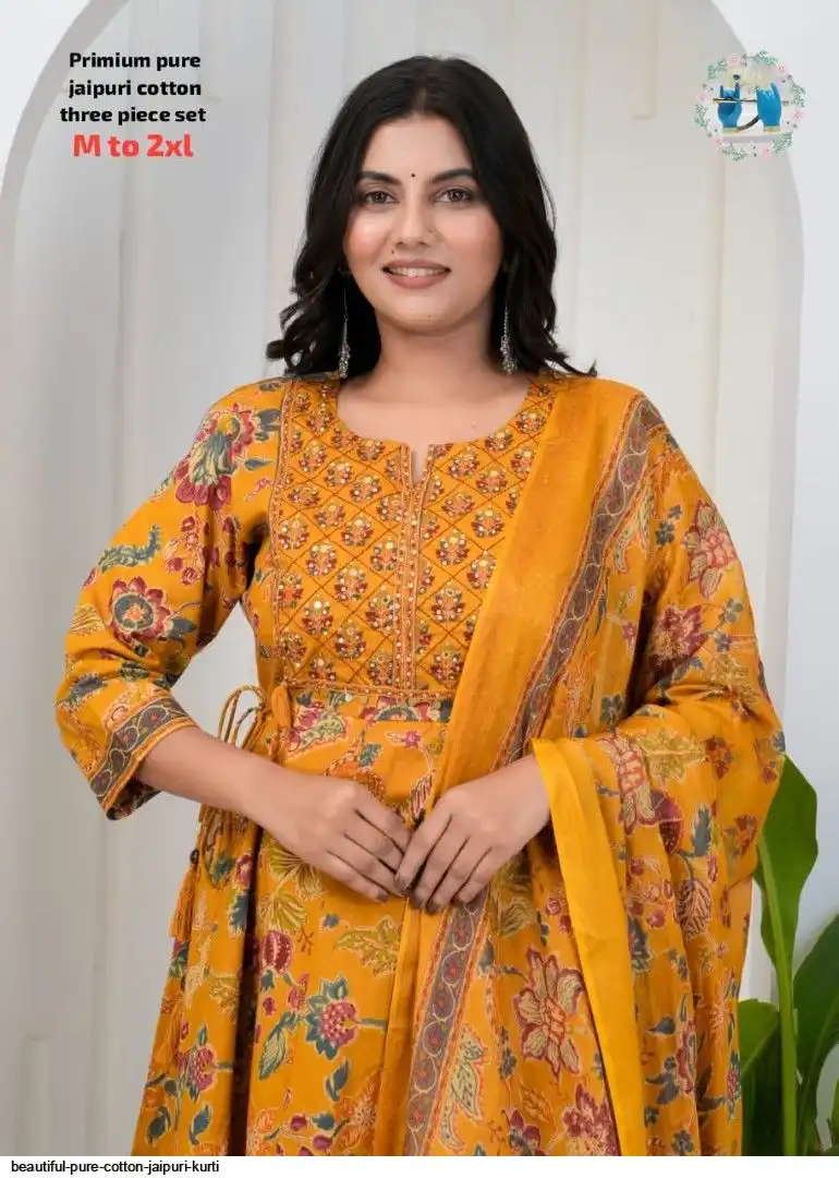 Very comfortable pure cotton jaipuri three piece set