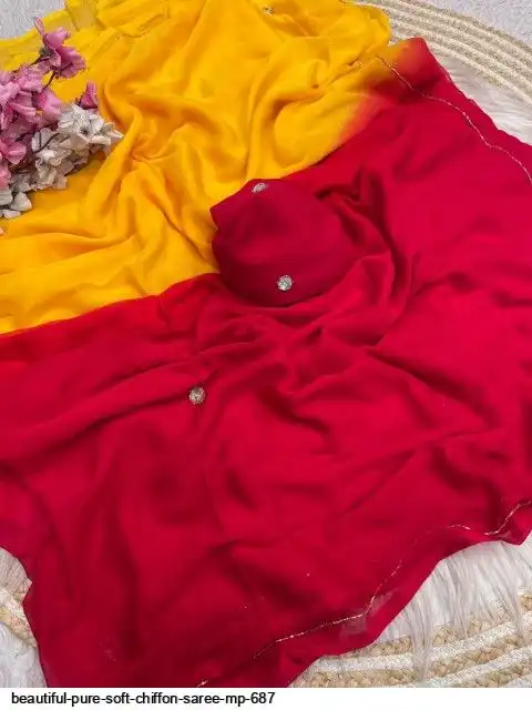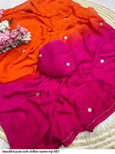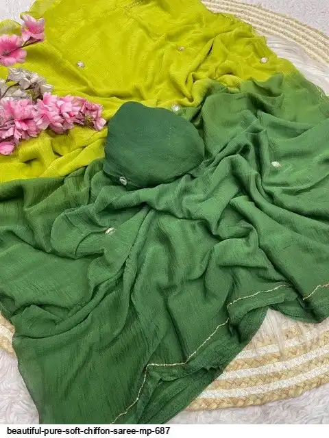 Fabric : Pure soft Nazbin Chiffon with beautiful cut dana work with Running blouse