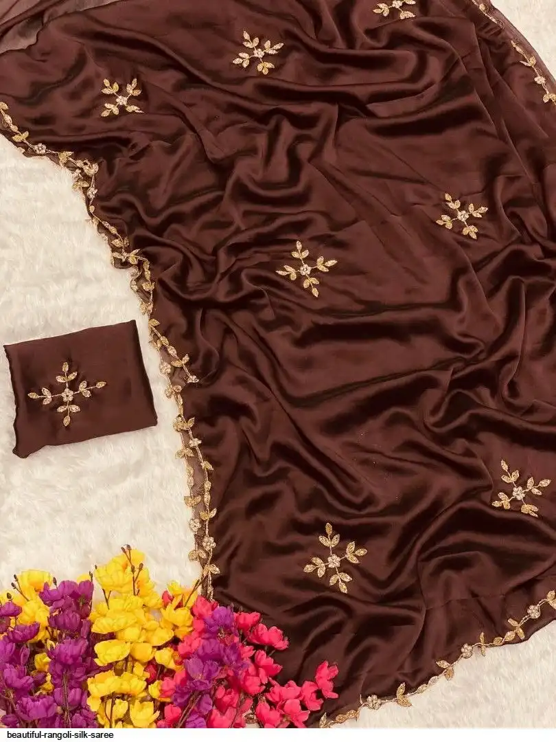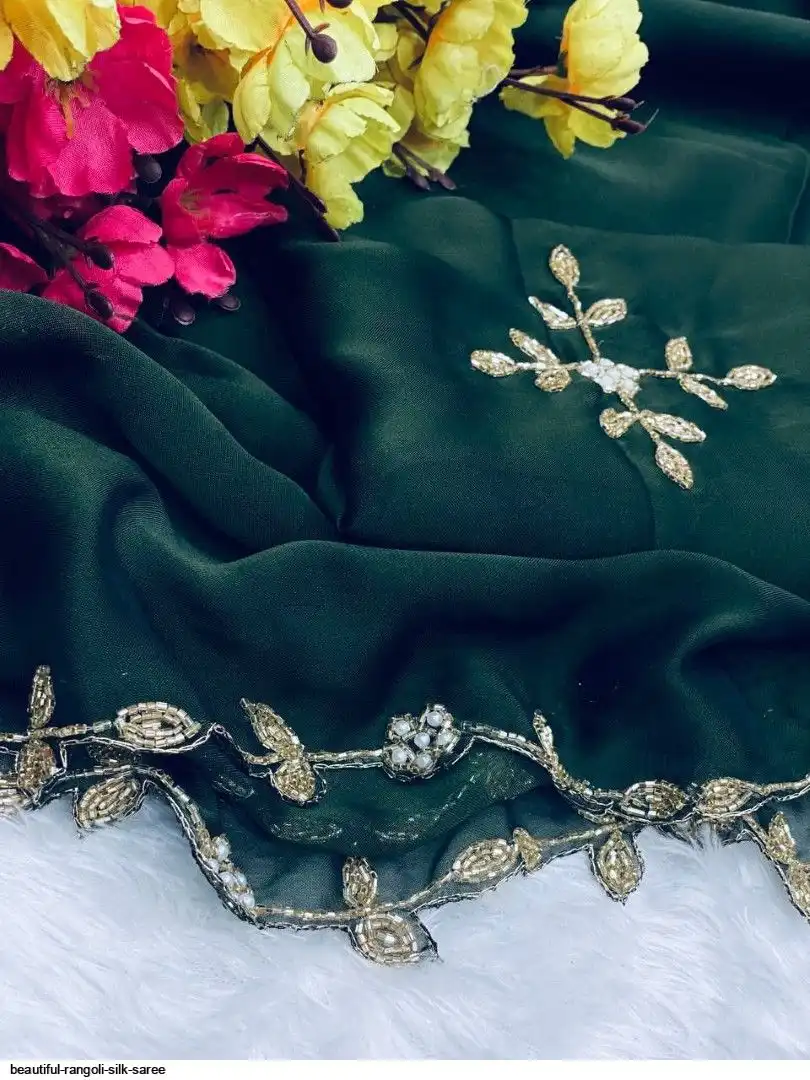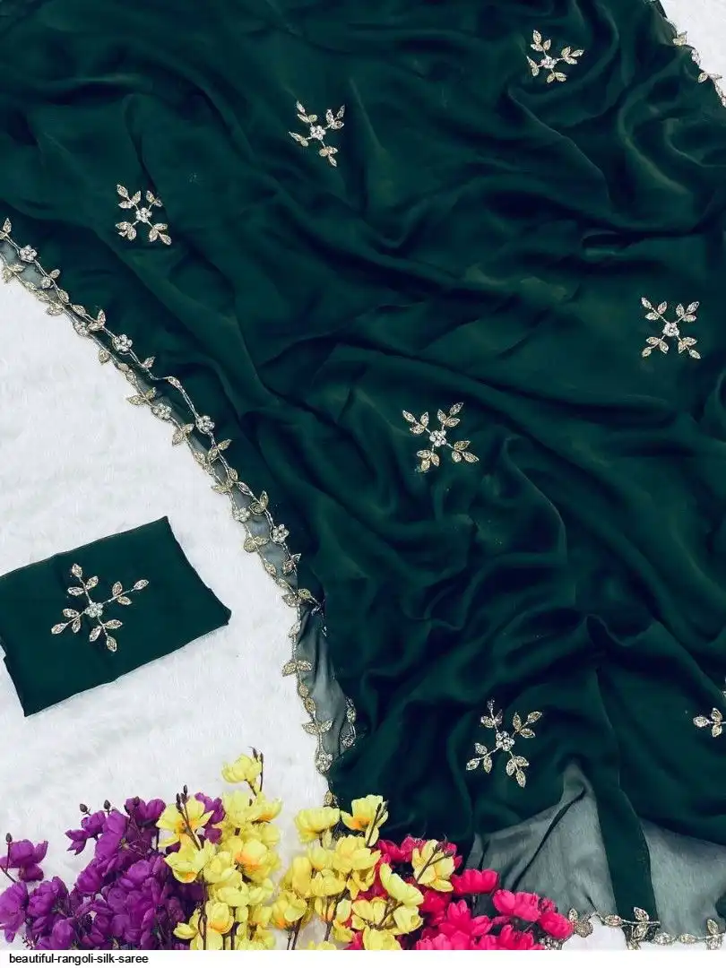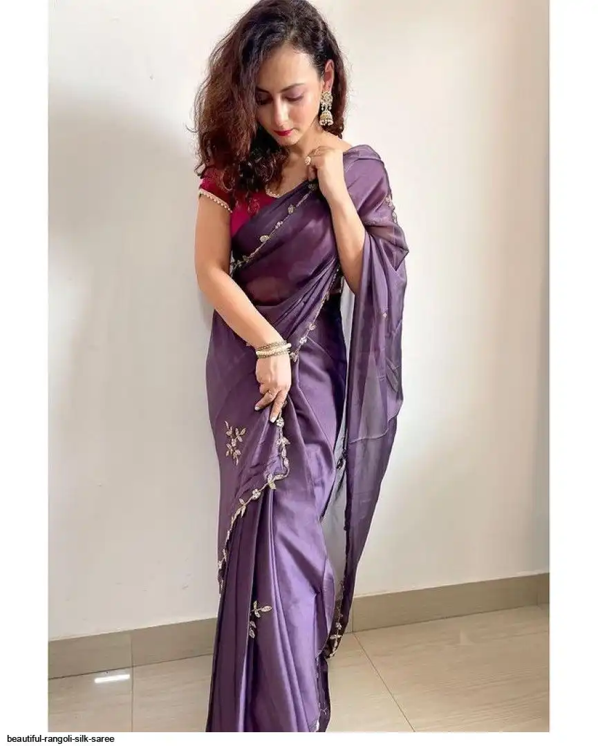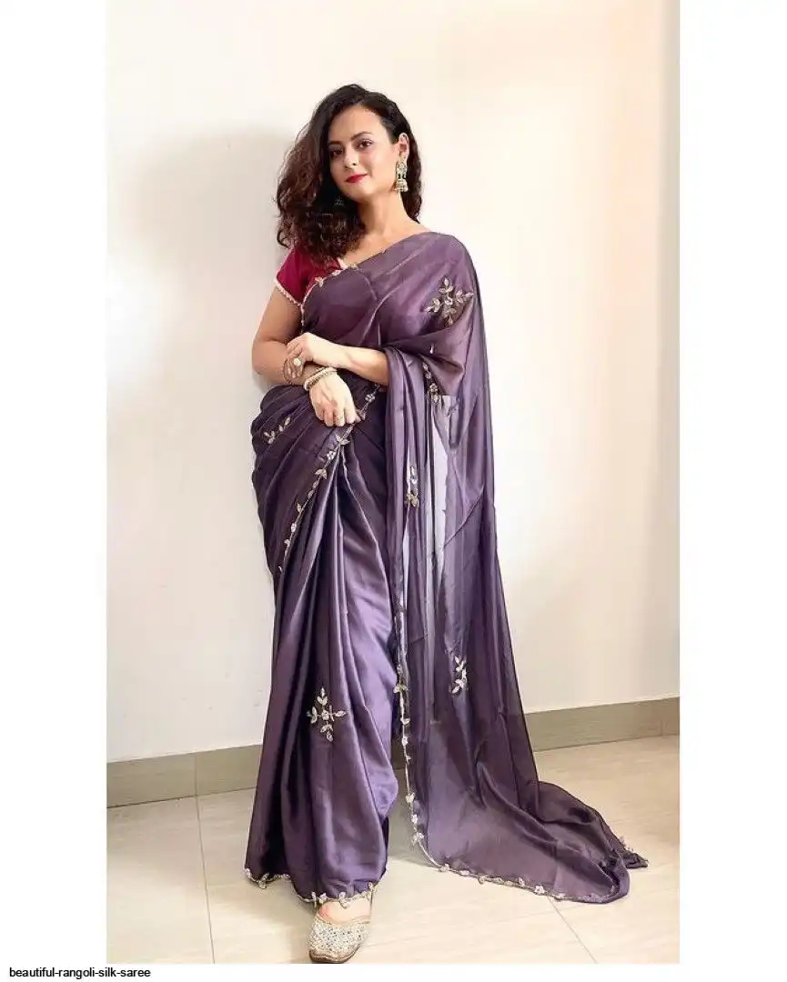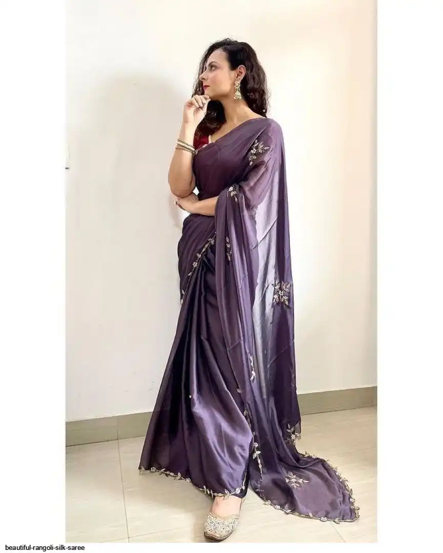 Beautiful handcrafted work butta all over rangoli silk with handcrafted border all over saree and rangoli silk blouse with handwork
