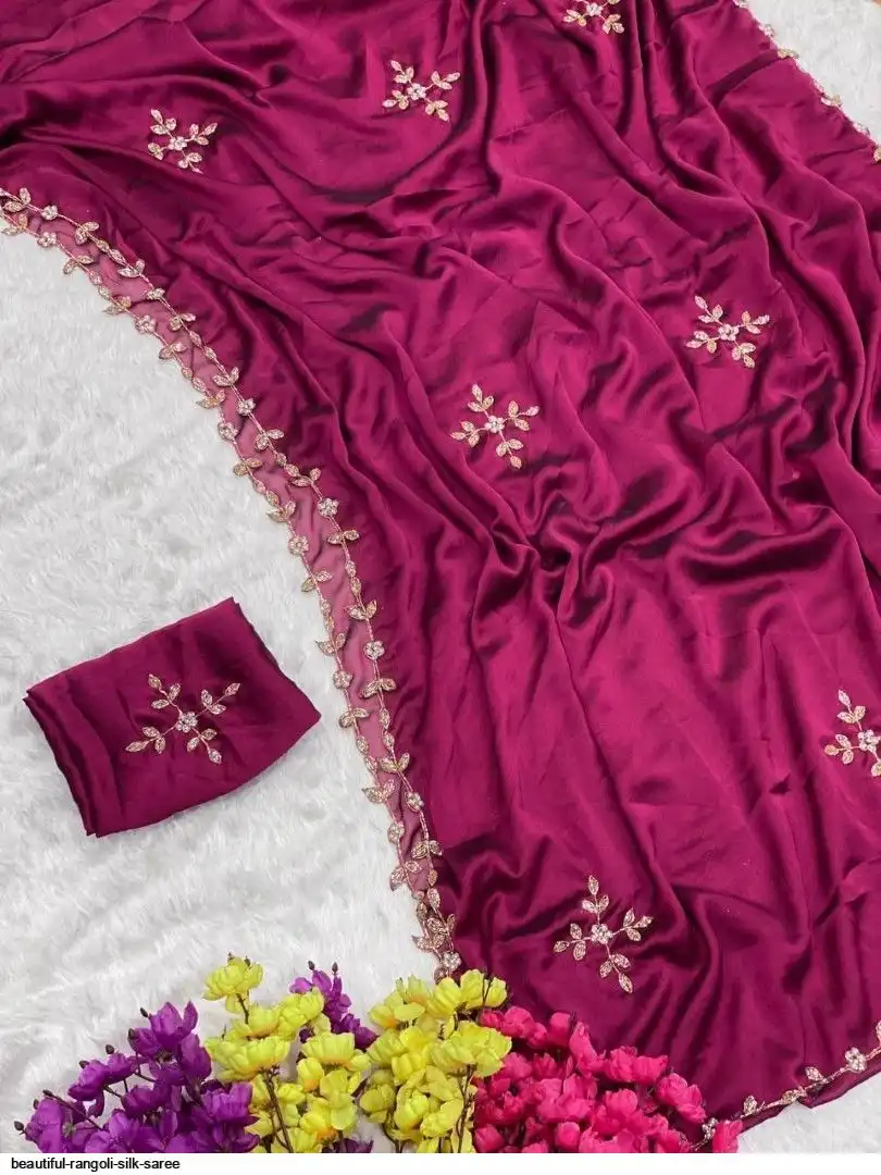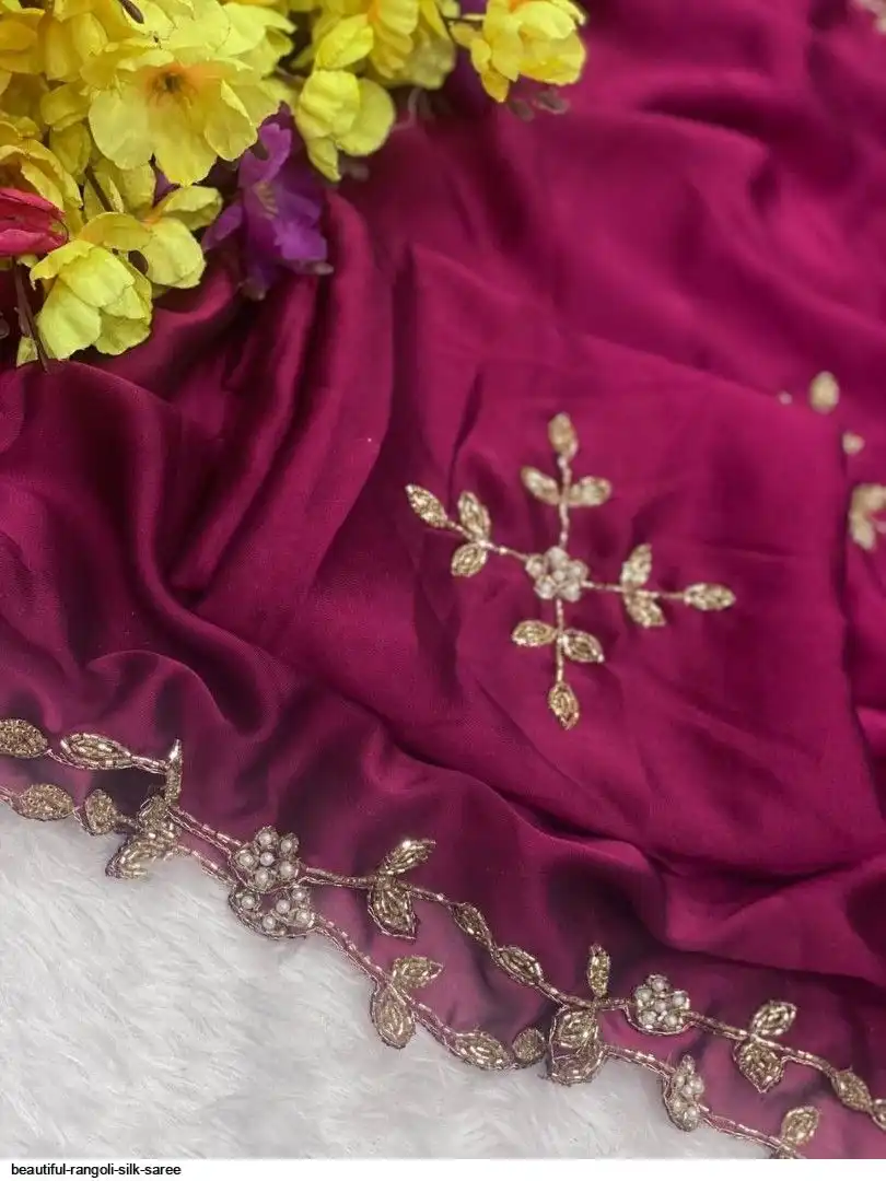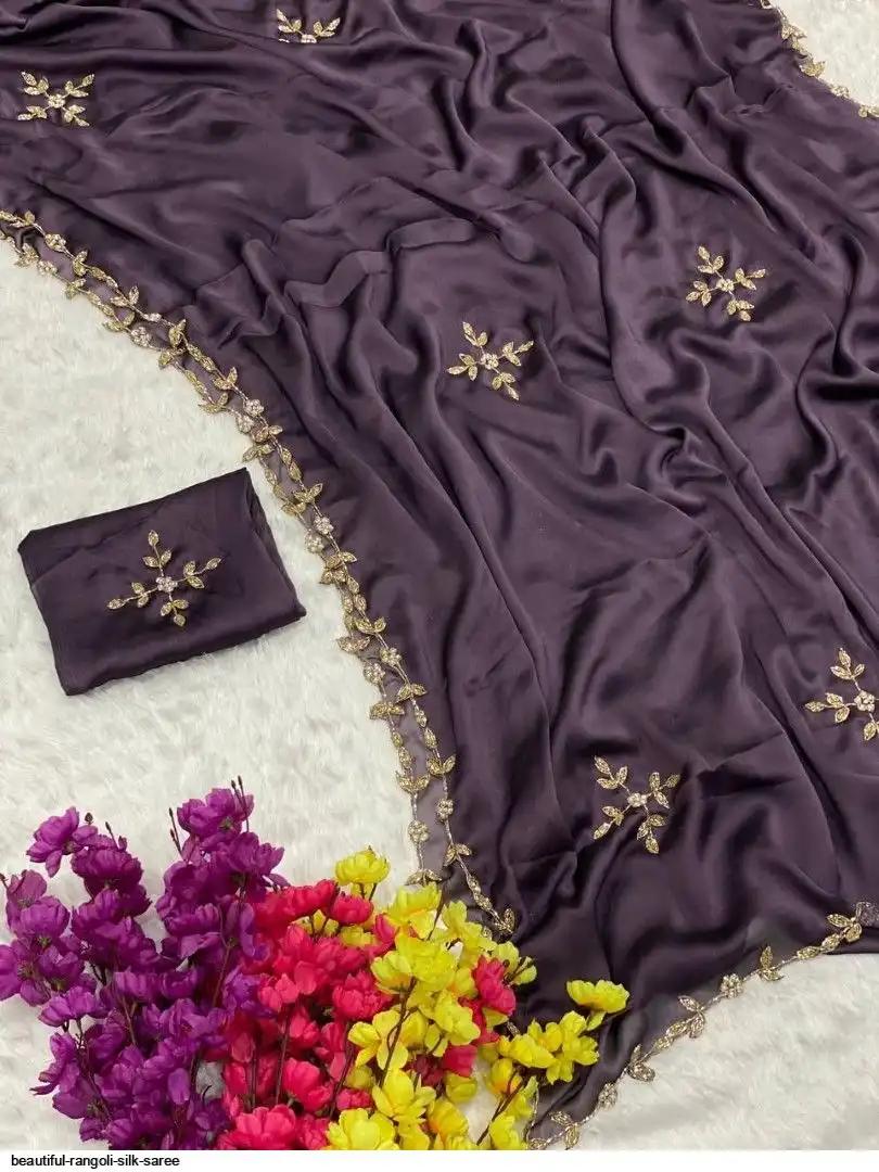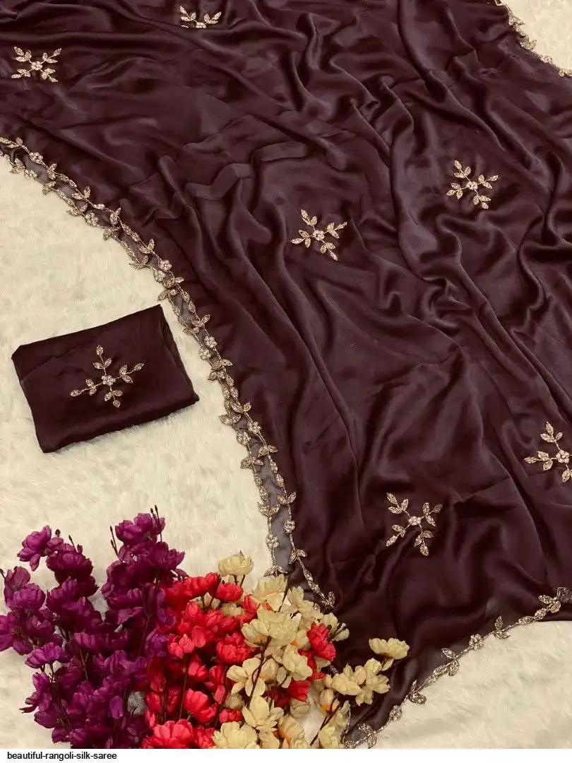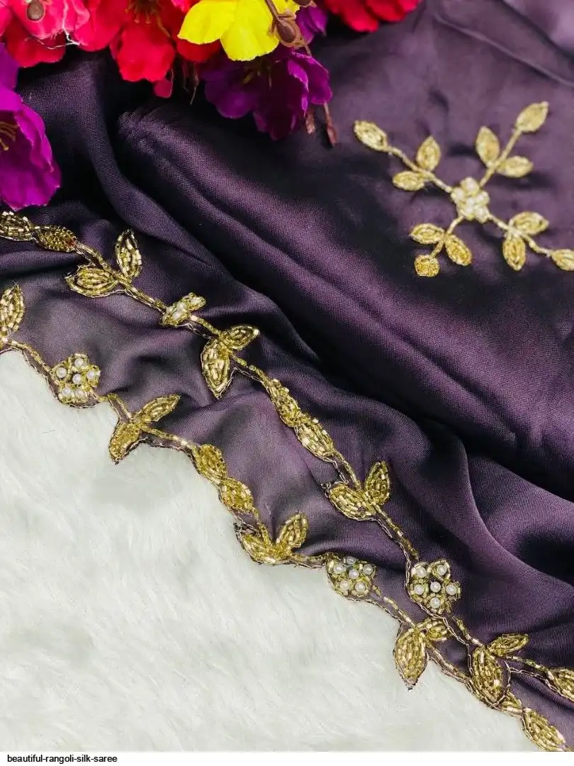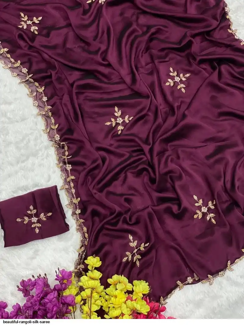 Beautiful handcrafted work butta all over rangoli silk with handcrafted border all over saree and rangoli silk blouse with handwork