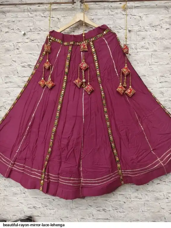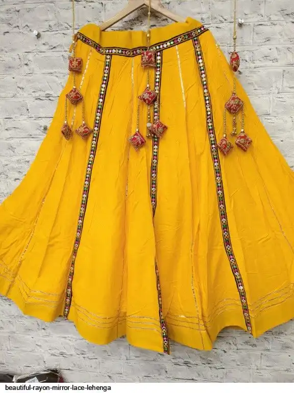 Rayon cotton with mirror lace chaniya