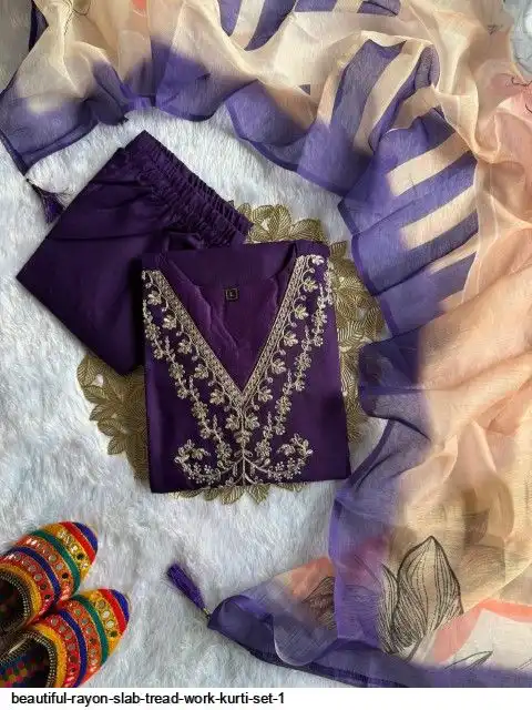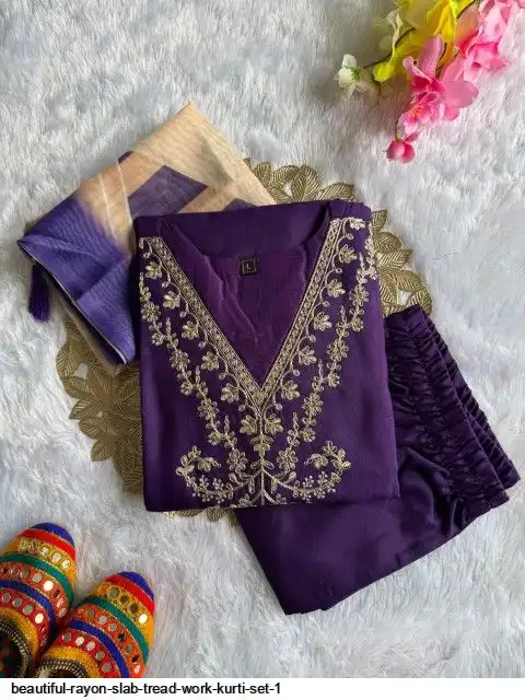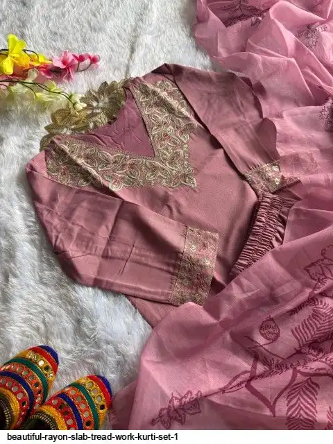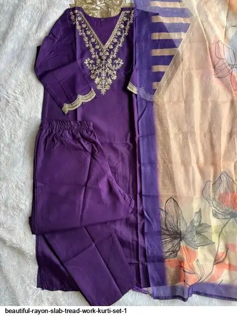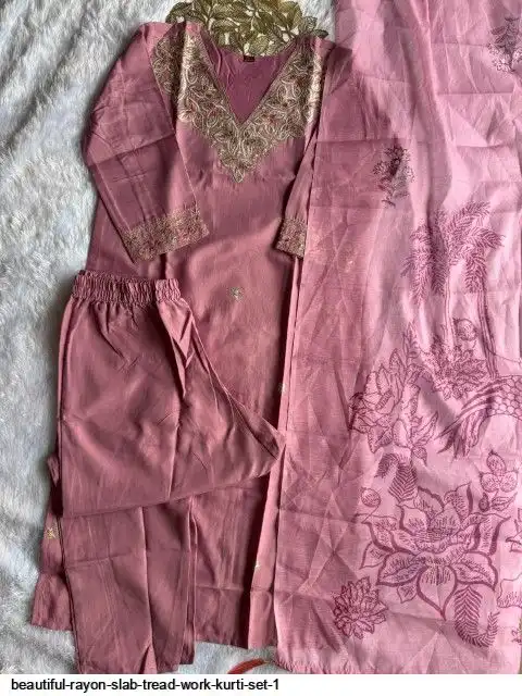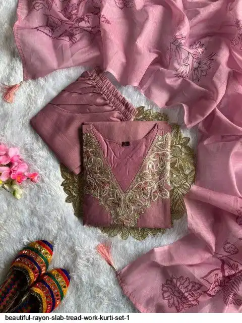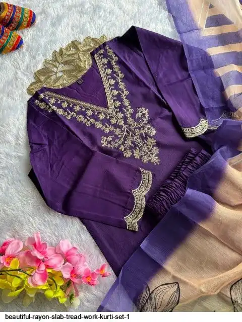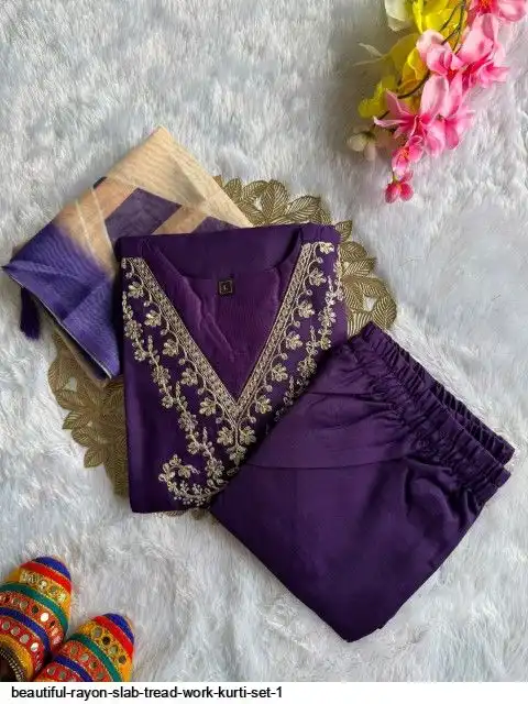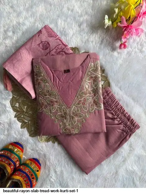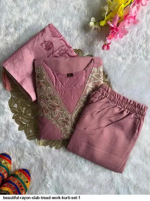 Kurti :- Reyon slub with Beautiful Embroidery With cotton tread Work