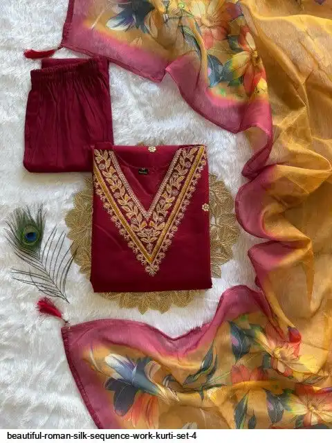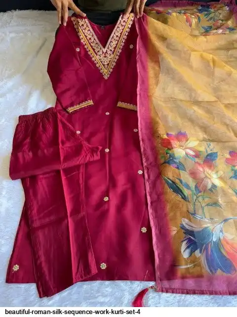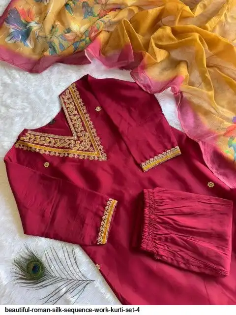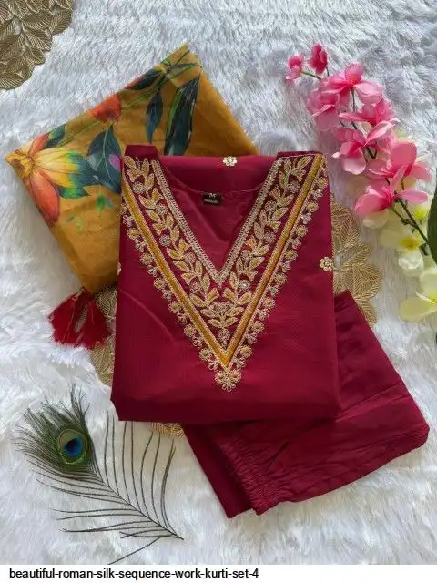 Kurti :- Roman Silk with Beautiful Embroidery With Sequence Work