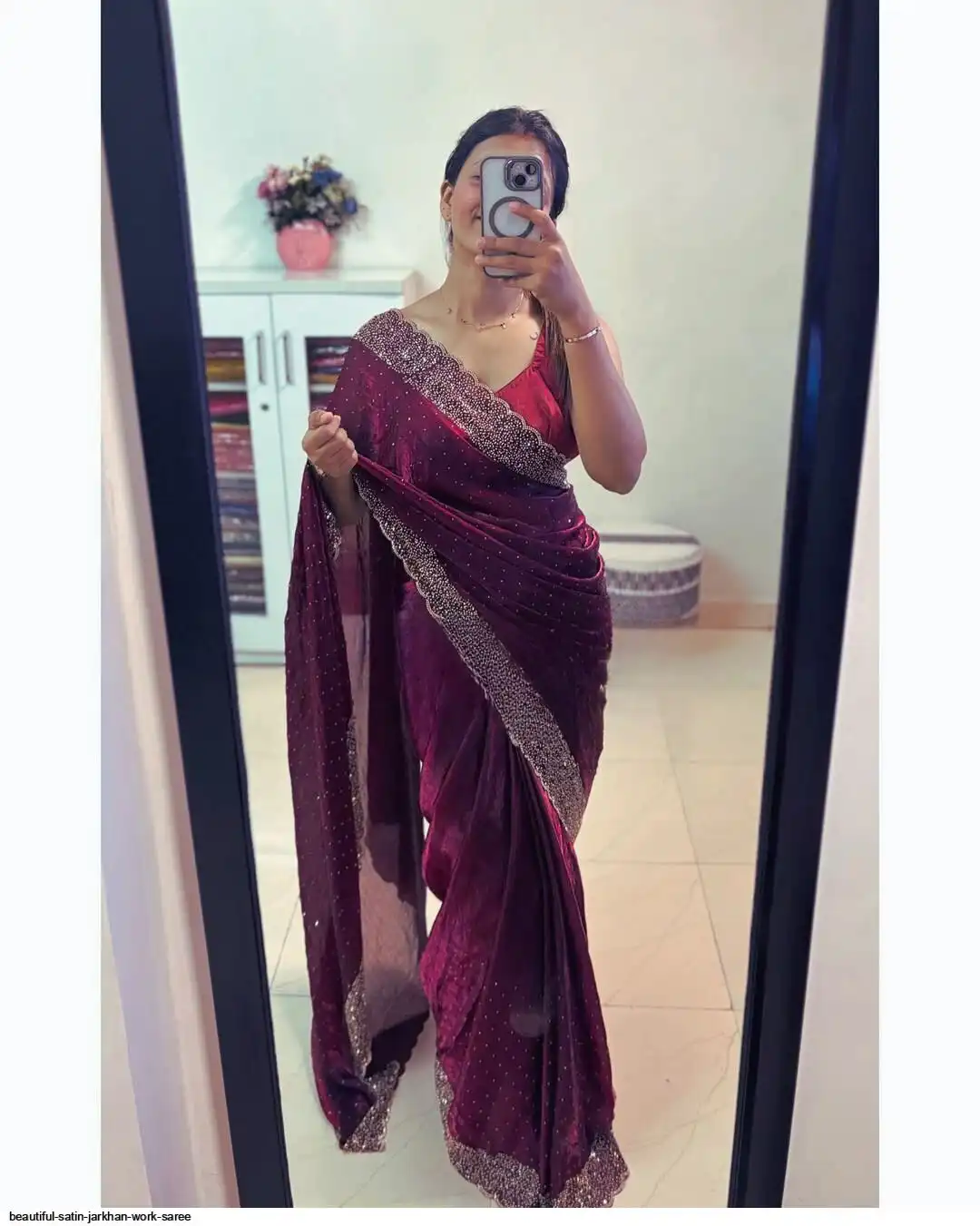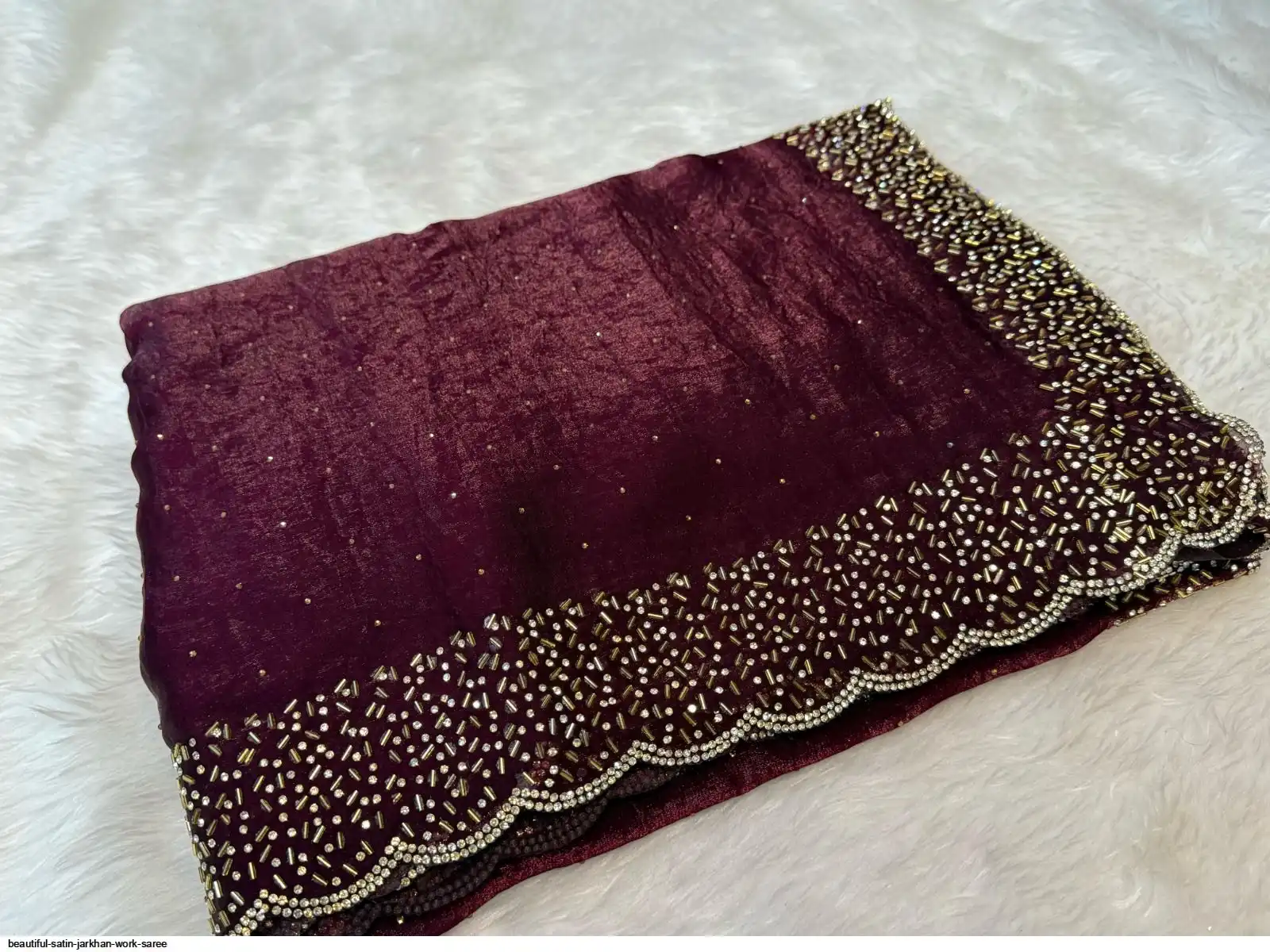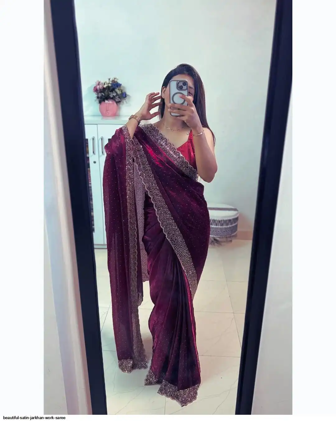 Timeless Elegance – Zarkan Work Satin Saree by Shakuntala Saree